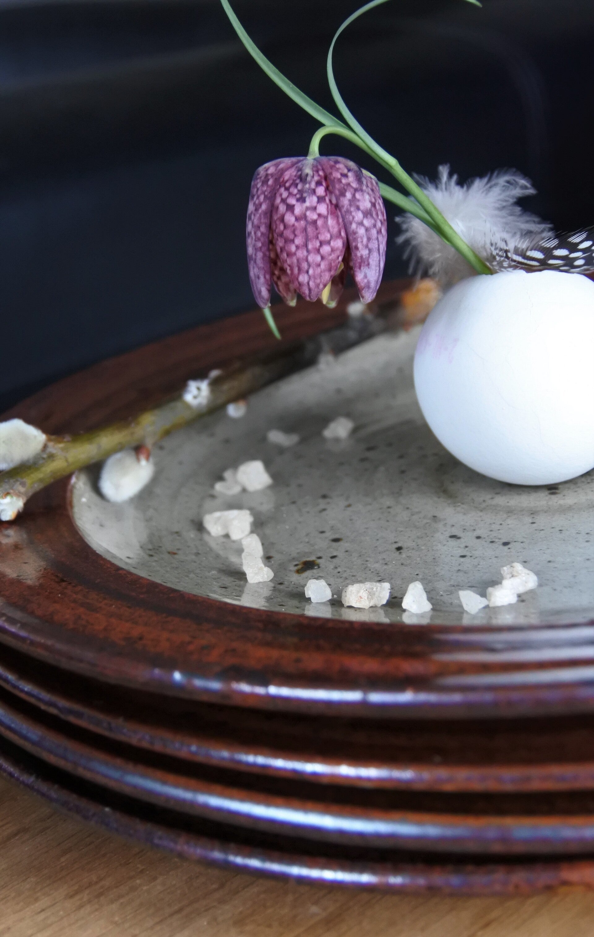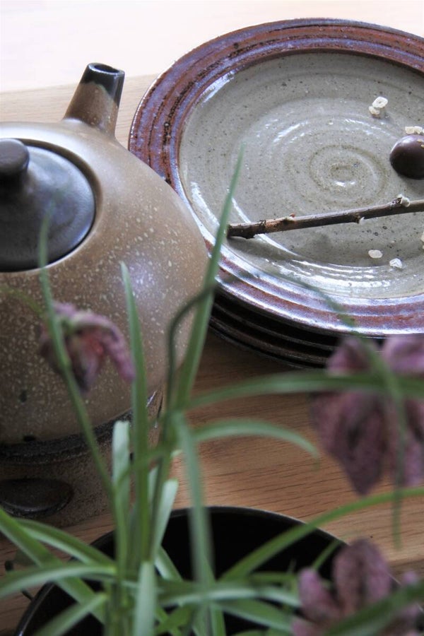 Deze prachtige vintage steengoed borden zijn van Helle Allpass Denmark.