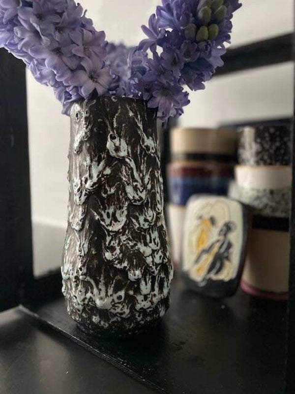 Prachtige vintage vaas van Scheurich West Germany. Dit model heeft een robuuste dripglaze in blauw over een ondergrond. Misschien wel een van de meest stoere designs van Scheurich als je het ons vraagt
