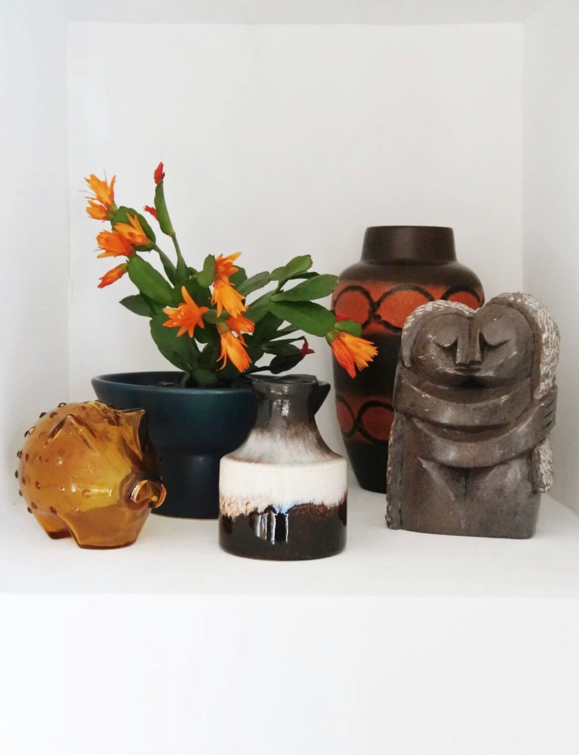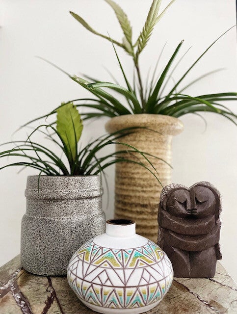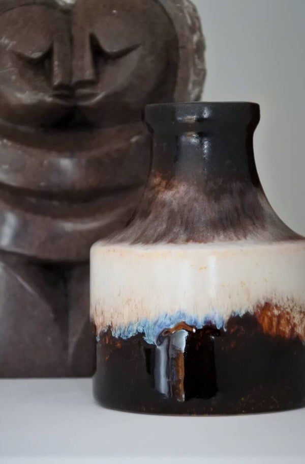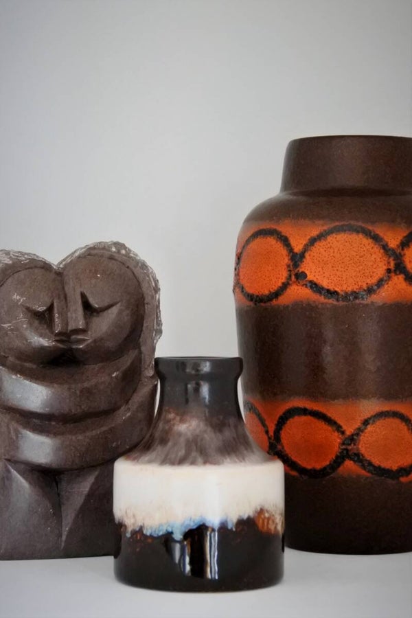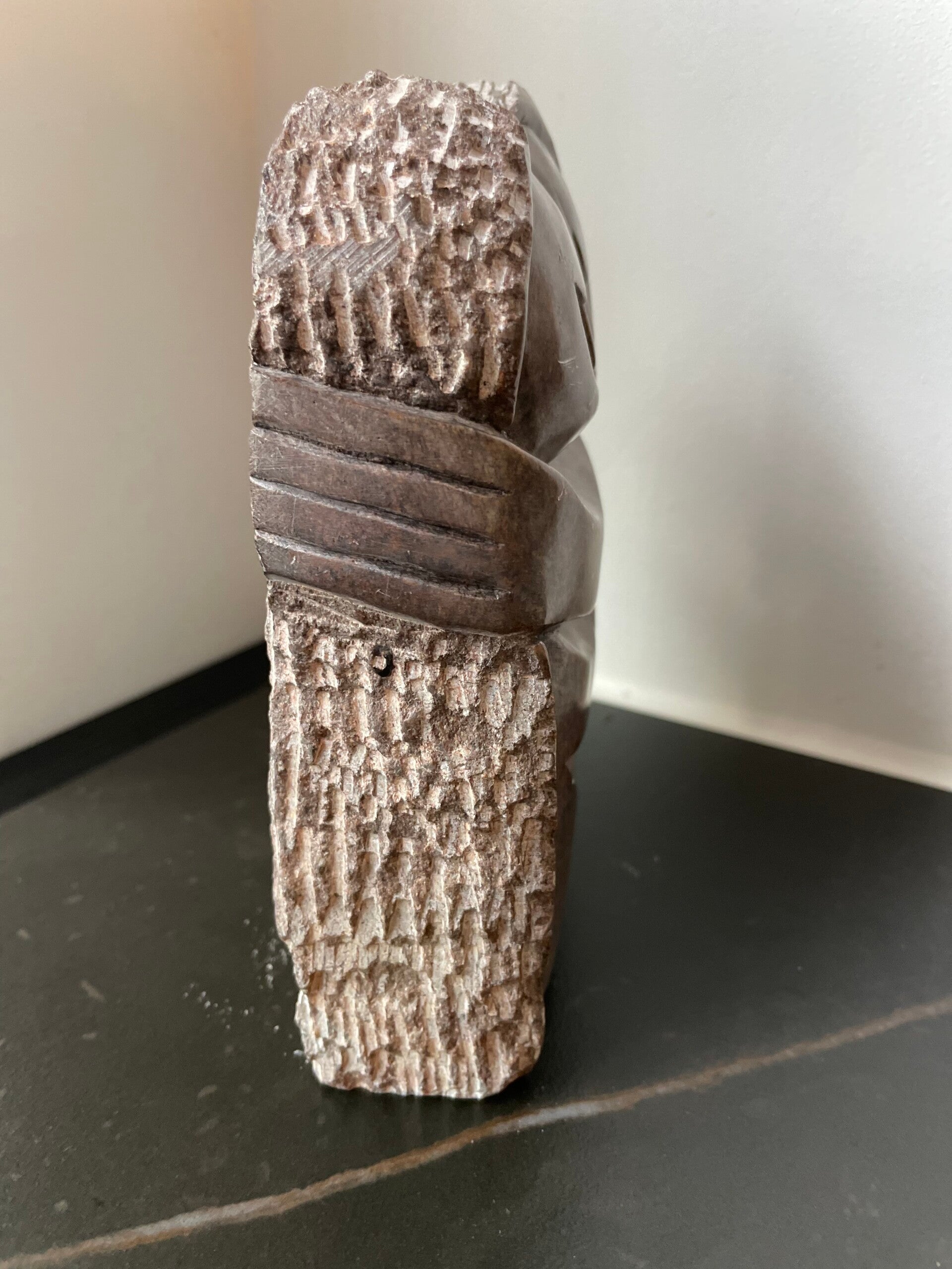 Prachtig beeld vervaardigd uit 1 stuk natuursteen in taupe-grijze kleur en wit. Wij hebben dit beeldje liefkozend kusje genoemd omdat het gewoon een moppie van een beeld is, ze elkaar een kusje geven en omdat we zelf zin krijgen in een kusje als we hier te lang naar kijken. Als dat geen liefde voor een vintage item is..