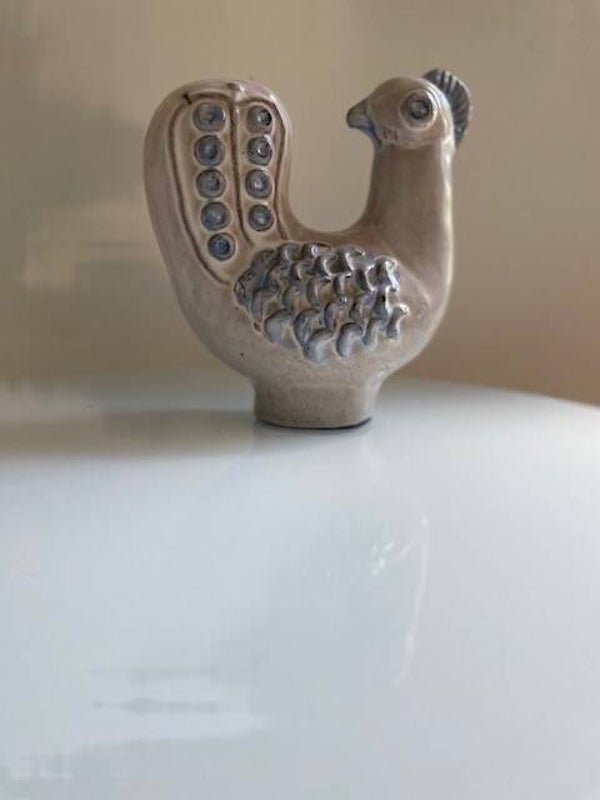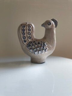 Prachtig vintage vogeltje van keramiek. Volgens een bron op internet is dit ontwerp toegeschreven aan de Deense designer J. Quistgaard. Helemaal zeker weten doen we het niet maar wat we wel zeker weten.. het is een tijdloze schone dit mooie beeldje!