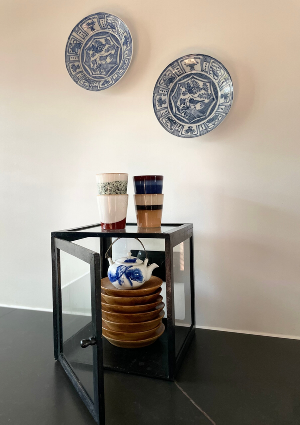 Vintage Wan Li wandborden set van prachtig blauw beschilderd porselein