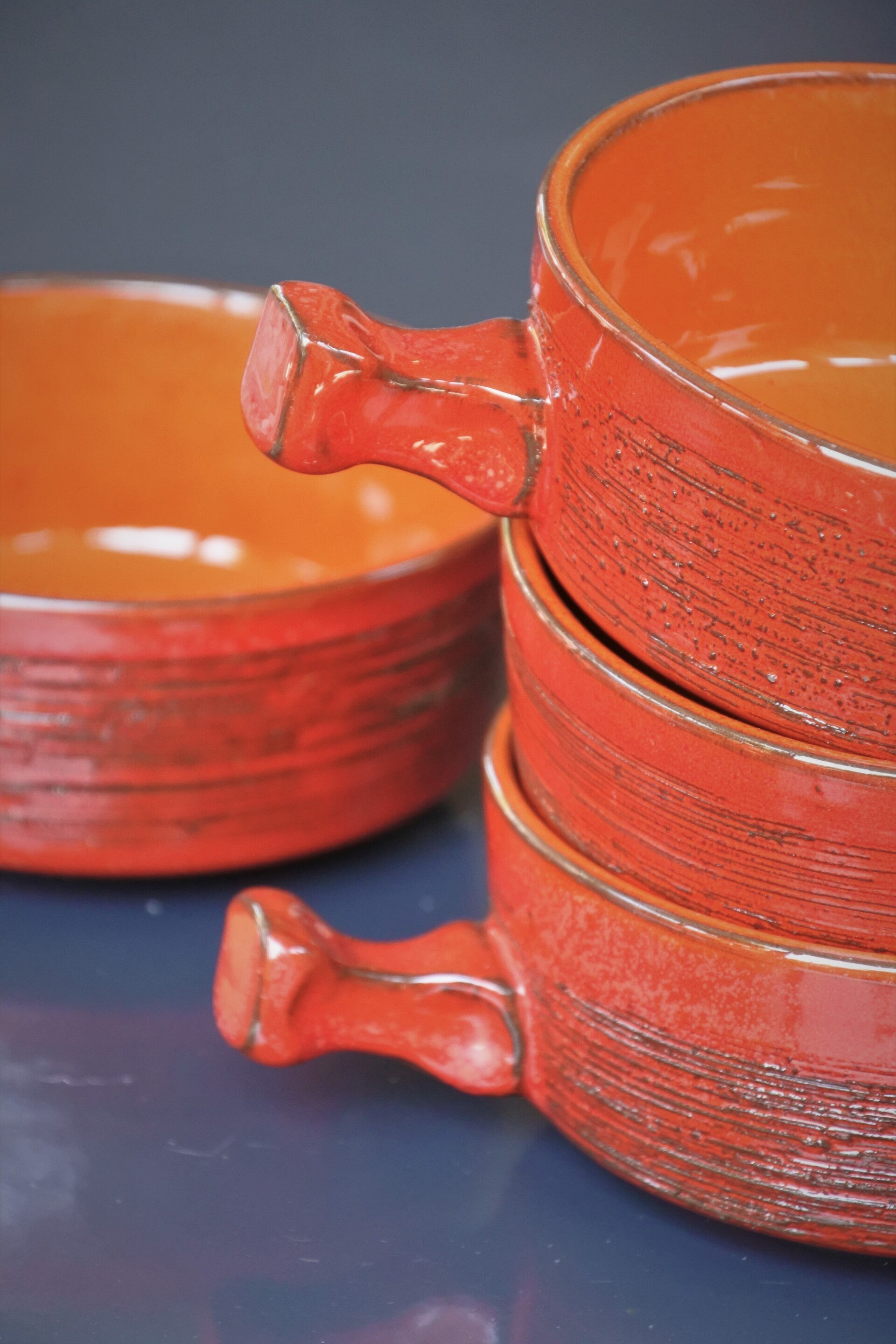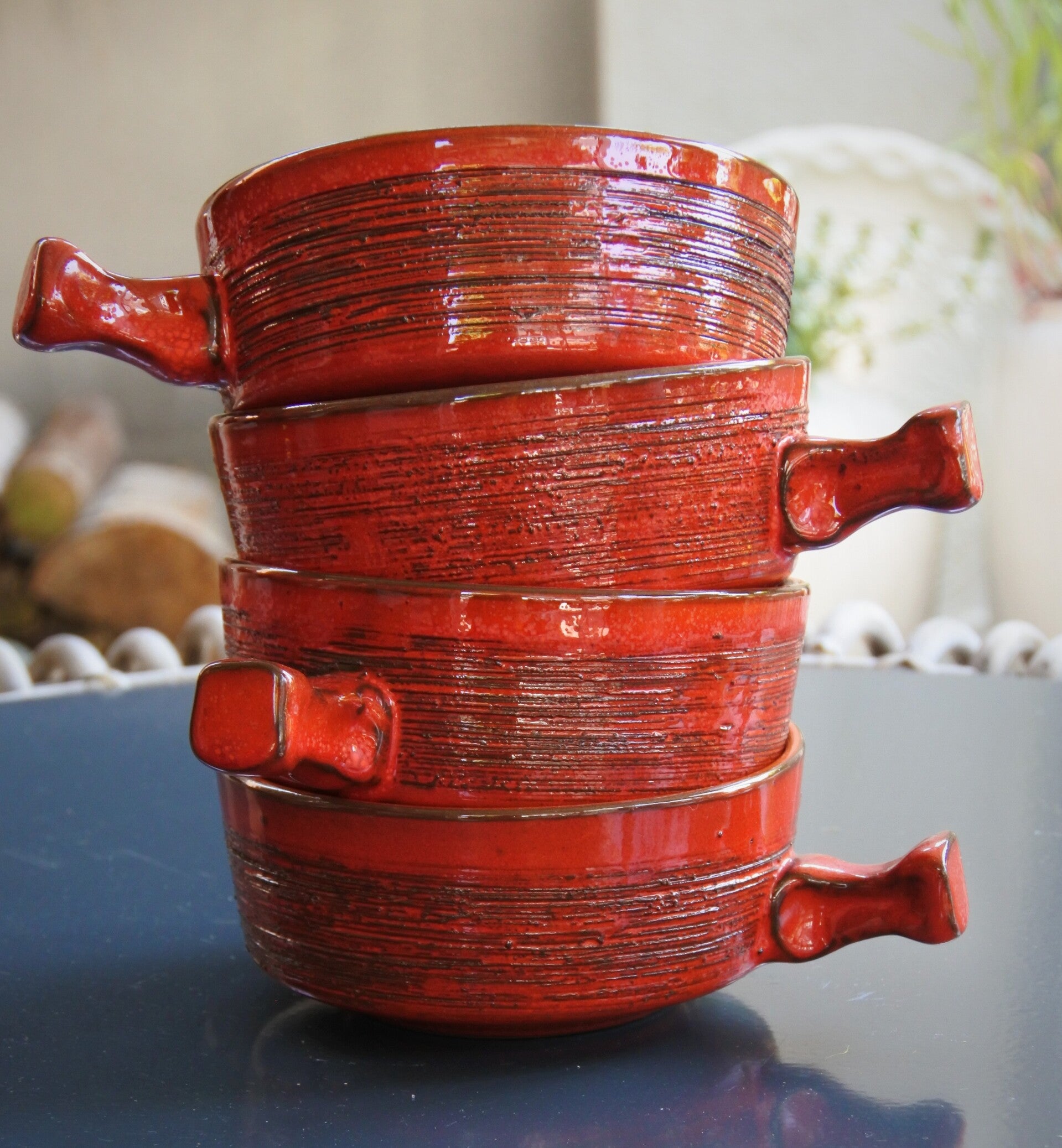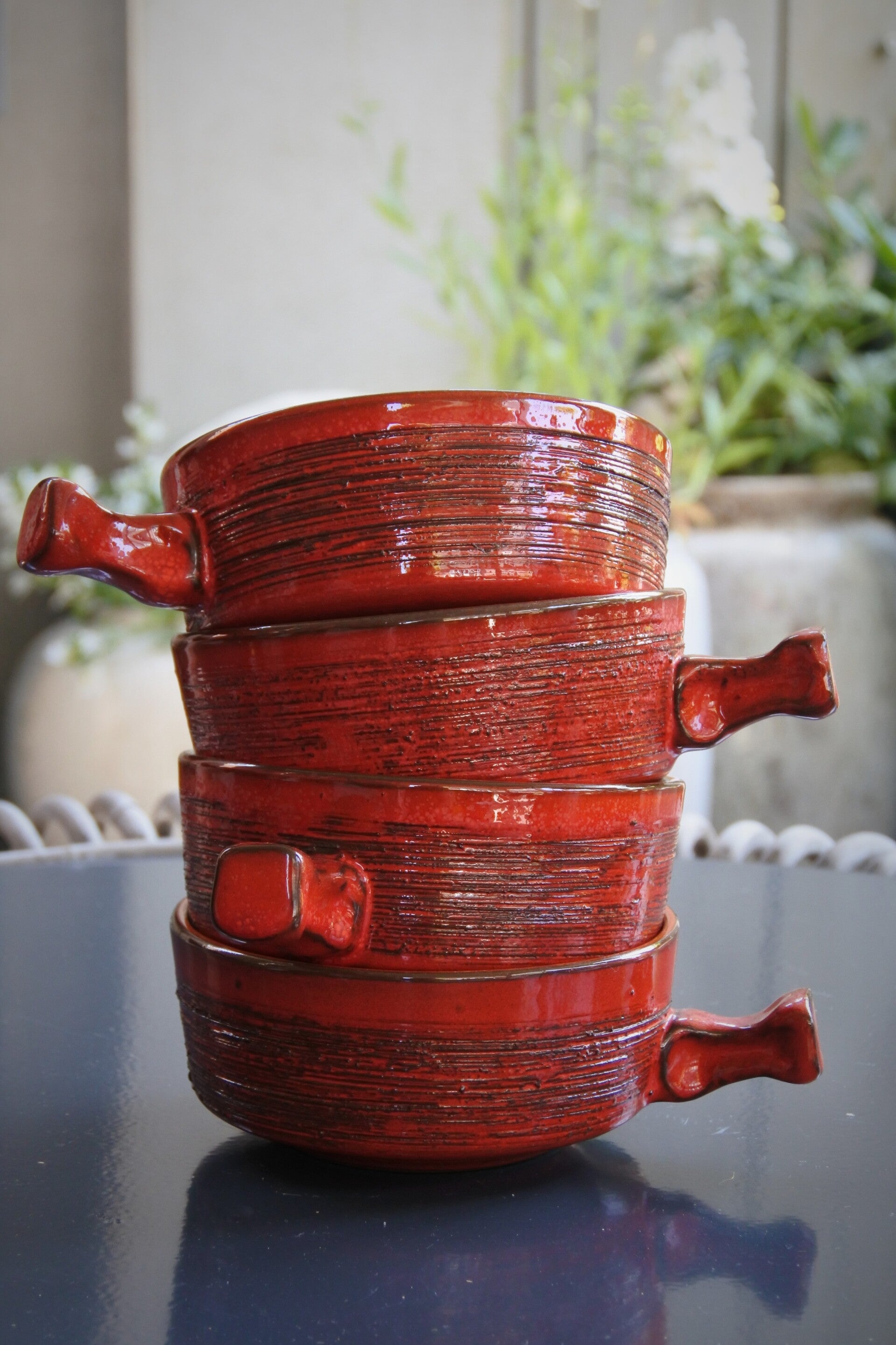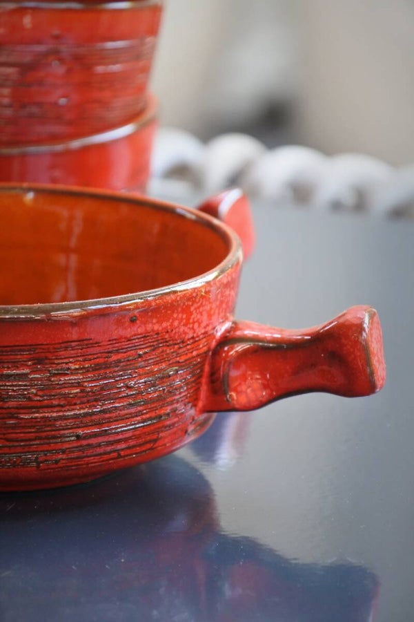 Vintage set van 4 prachtige soepkommen van rood aardewerk