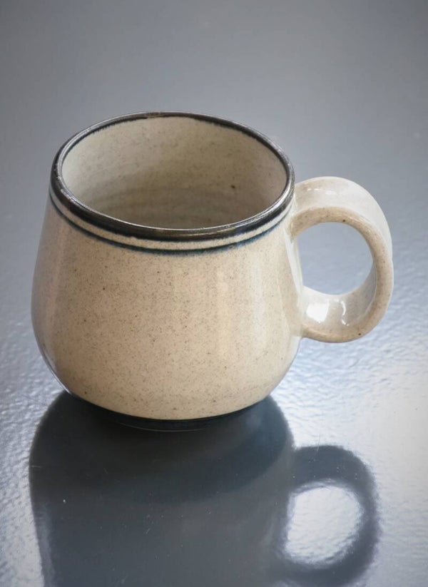 Vintage set van 4 koppen in Scandinavische stijl grijs met toffe zwarte details