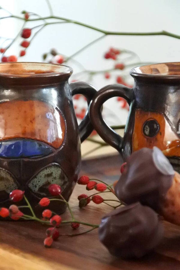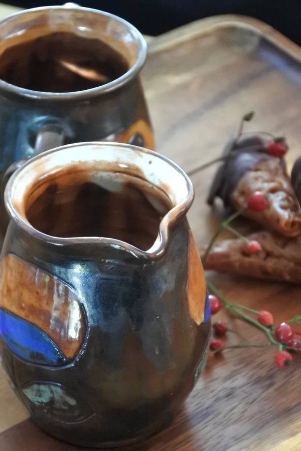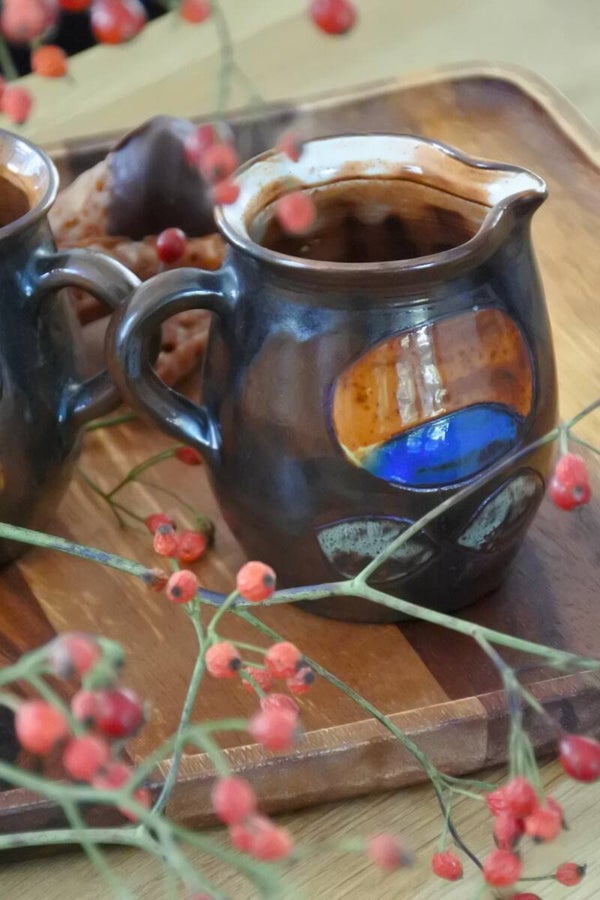 Deze prachtige handgemaakte 2-delige set is van Nederlands design trots Henk Potters van Pottenbakkerij Potters uit Oisterwijk. Het setje bestaat uit een schenkkan en een suikerpot met 2 oren.