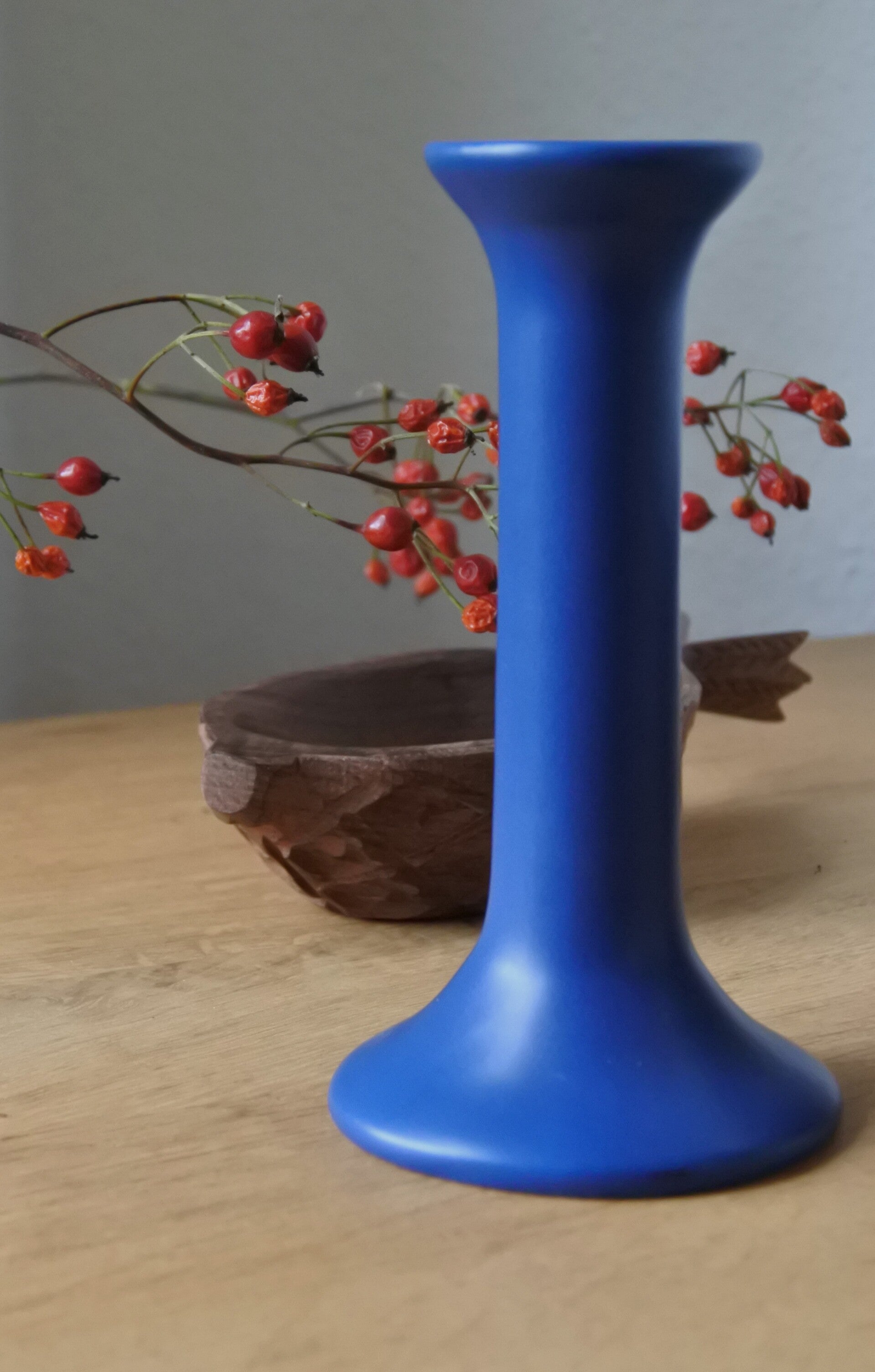 Prachtige kandelaar van keramiek in koningsblauwe kleur met tijdloos design. Nog met originele sticker!