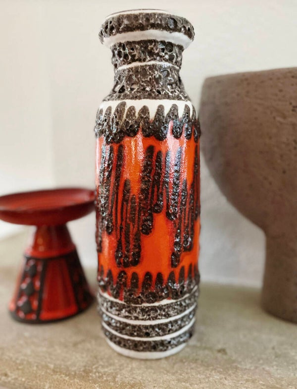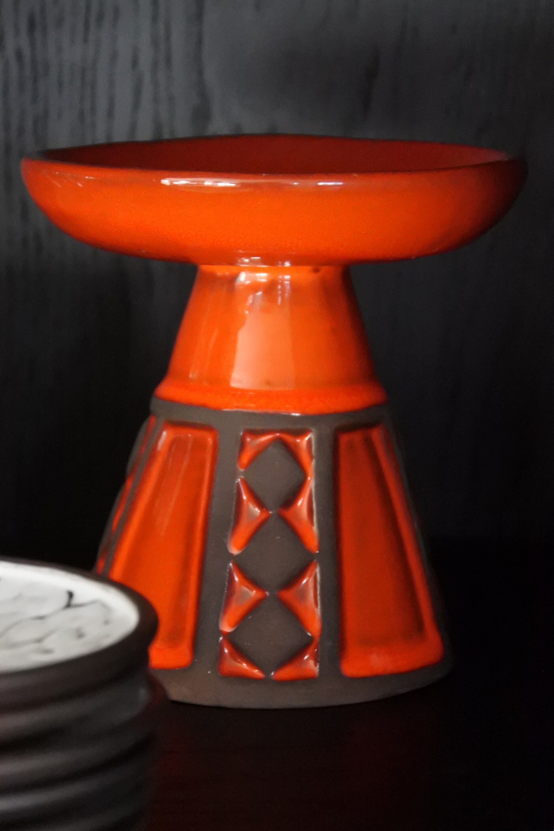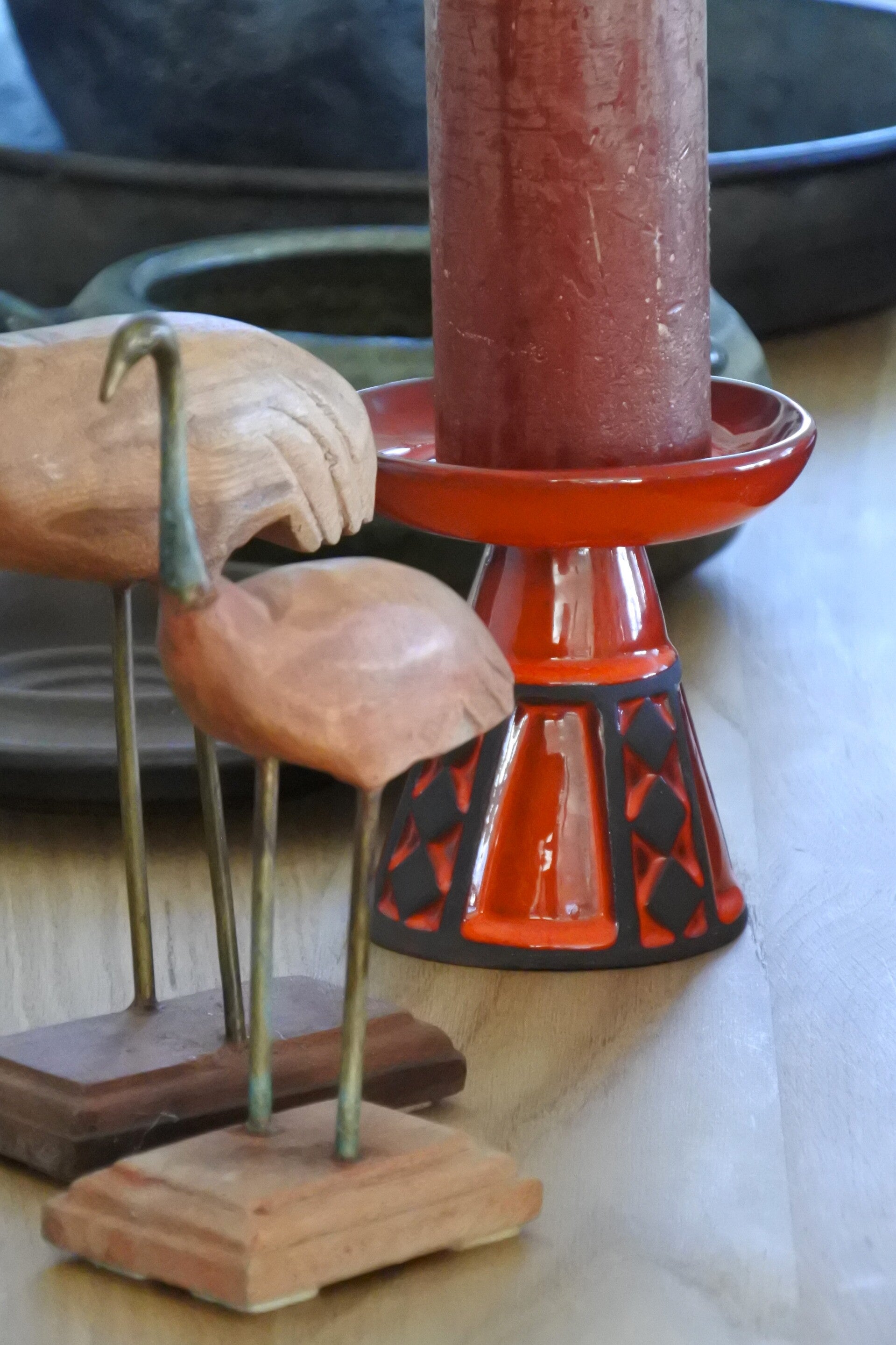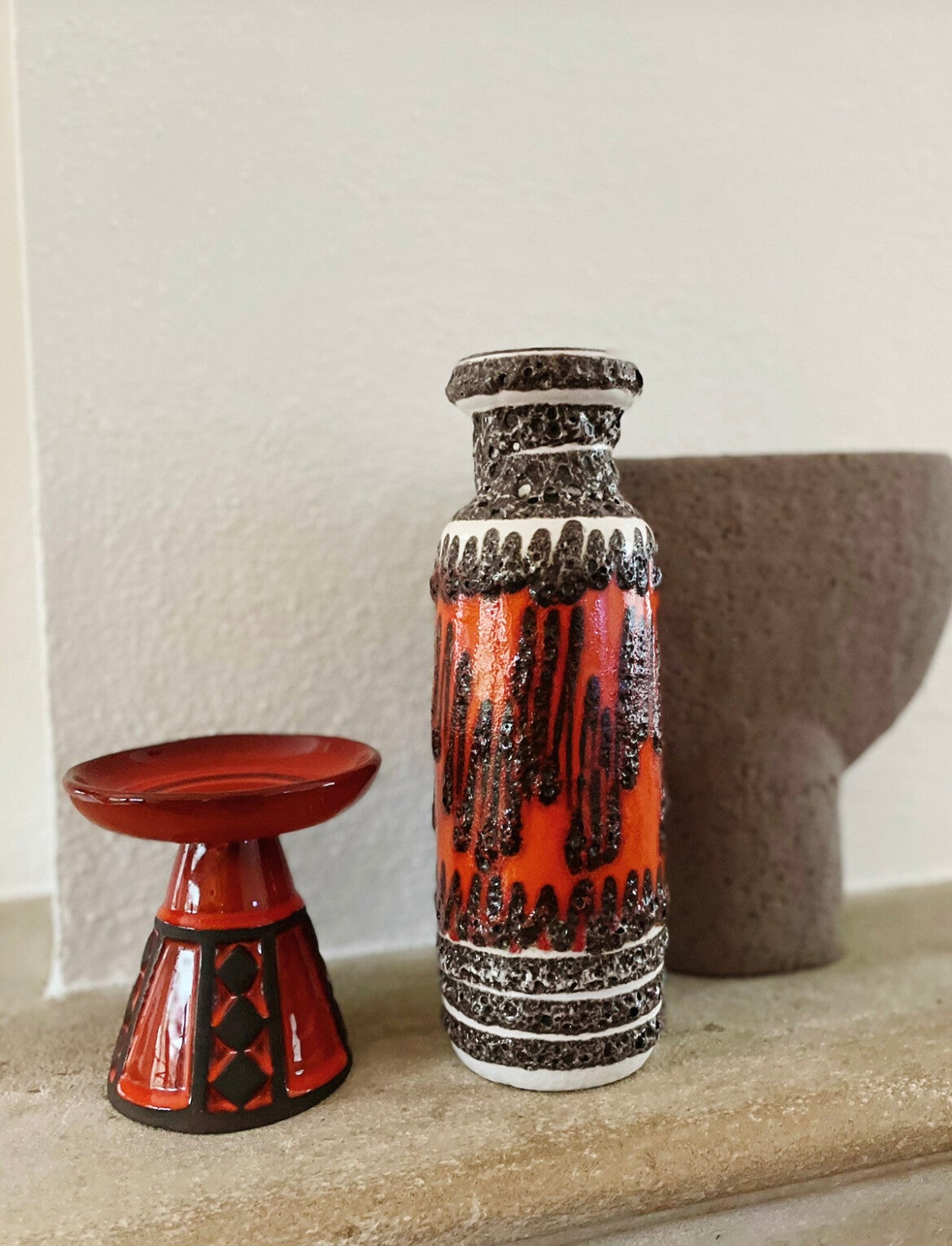 Vintage Frank Keramik Denmark kandelaar oranje -rode tint