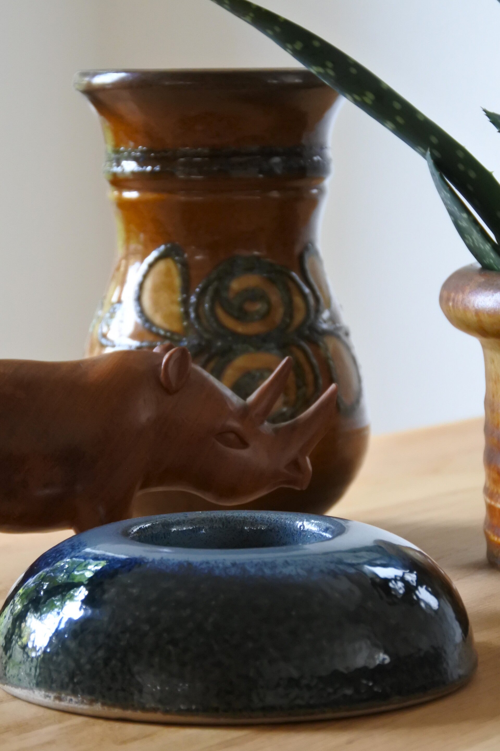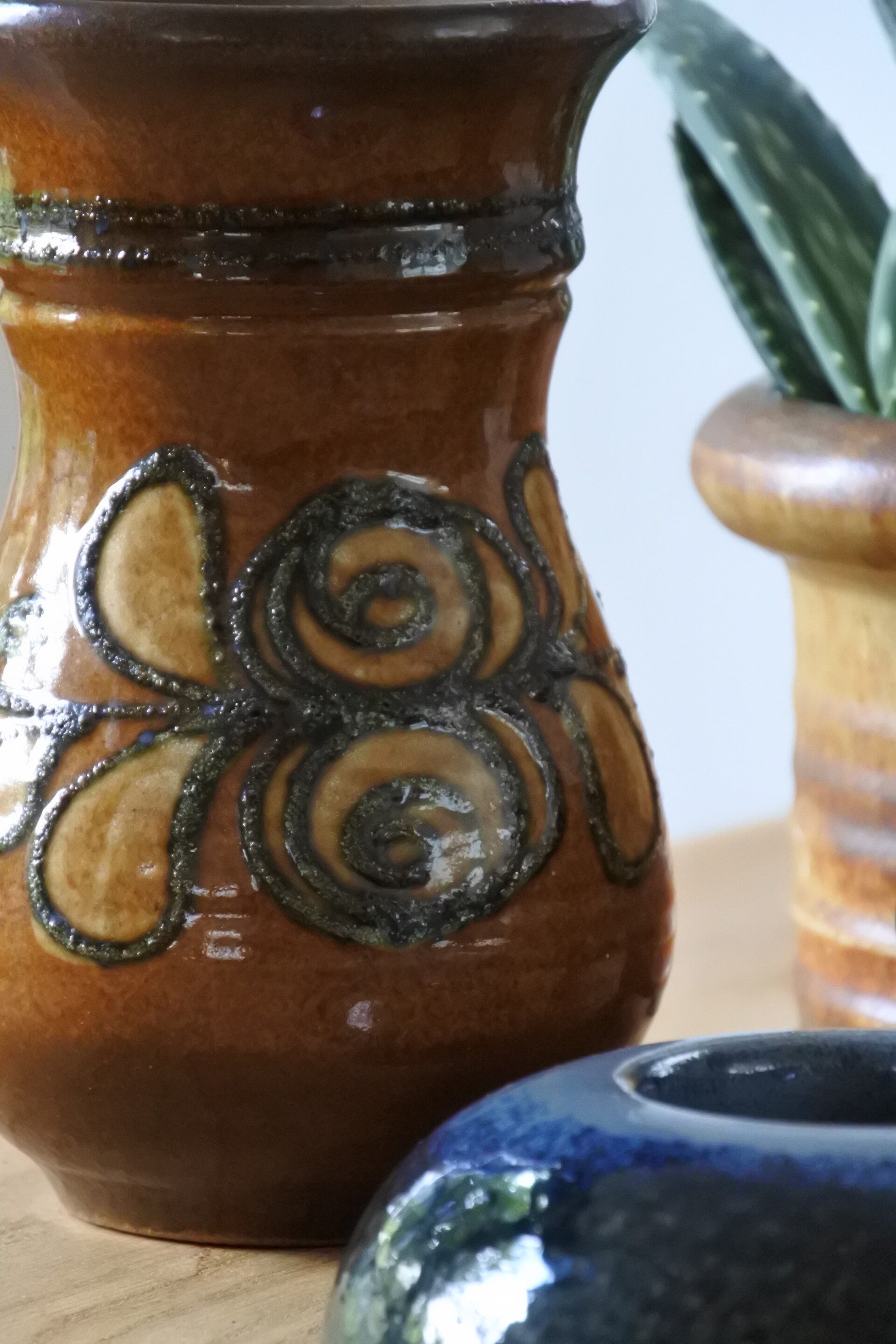 Vintage bruisglazuur vaas Strehla Keramik 1159