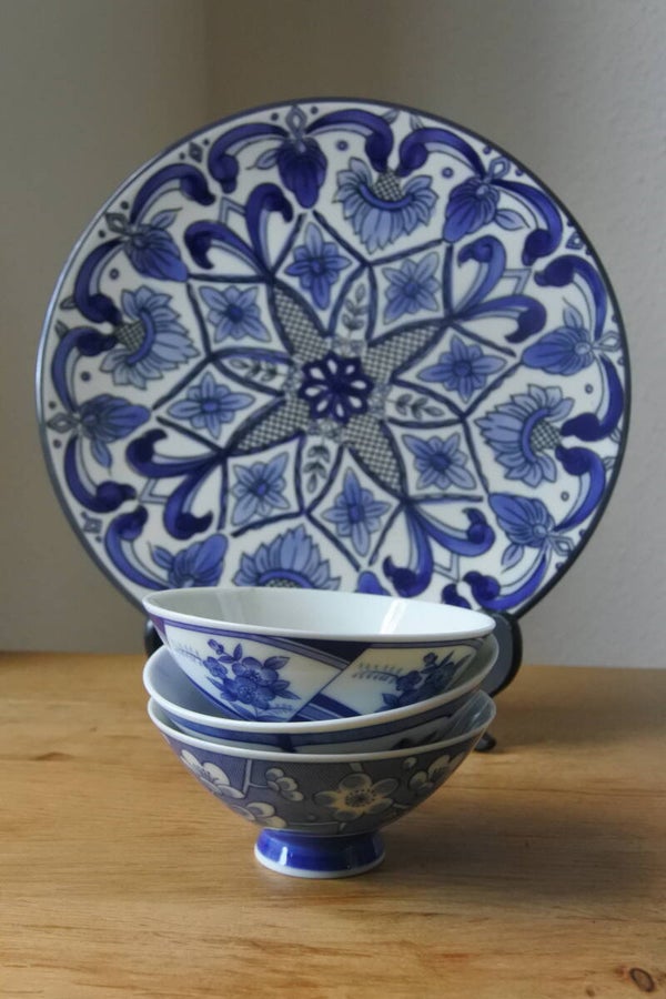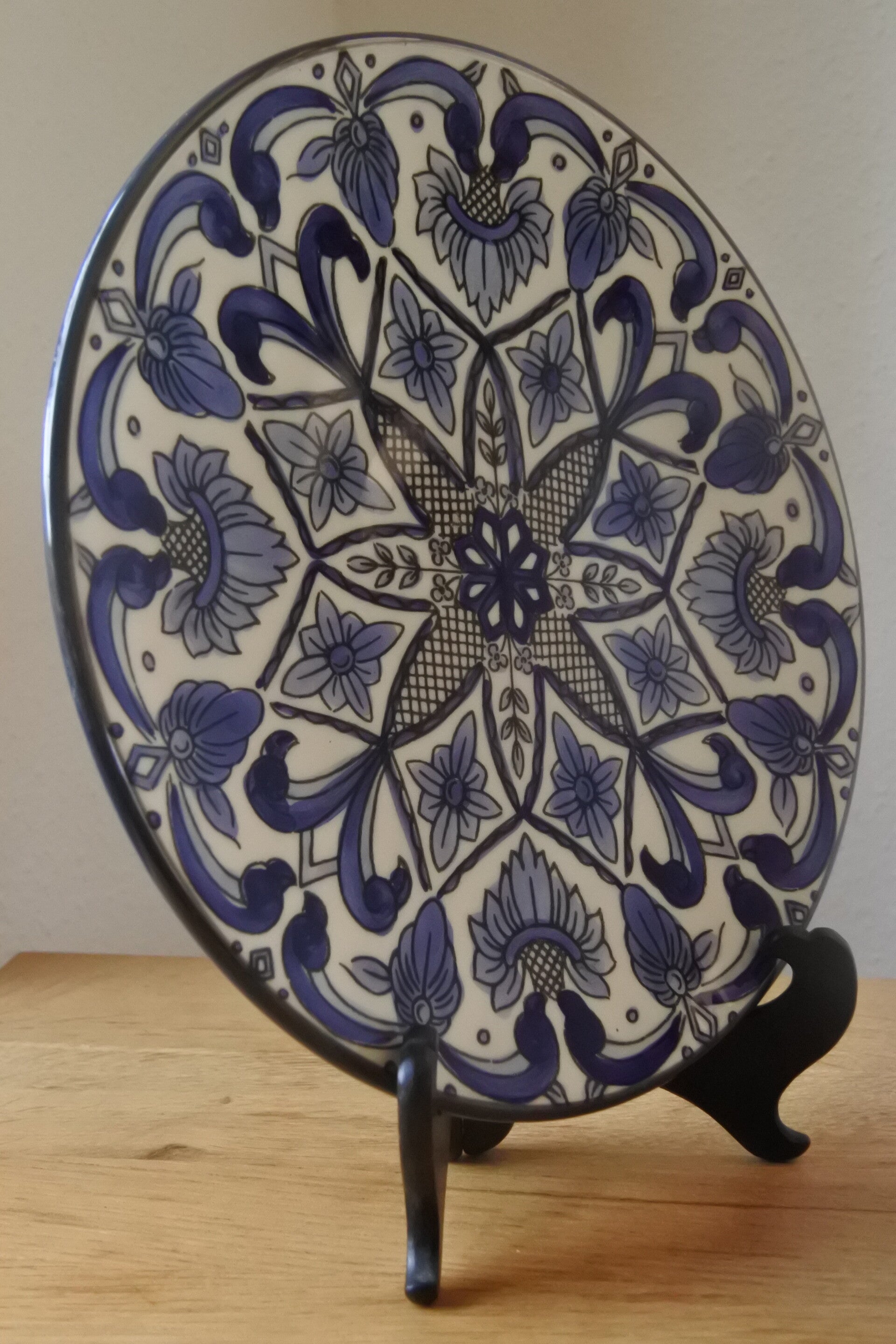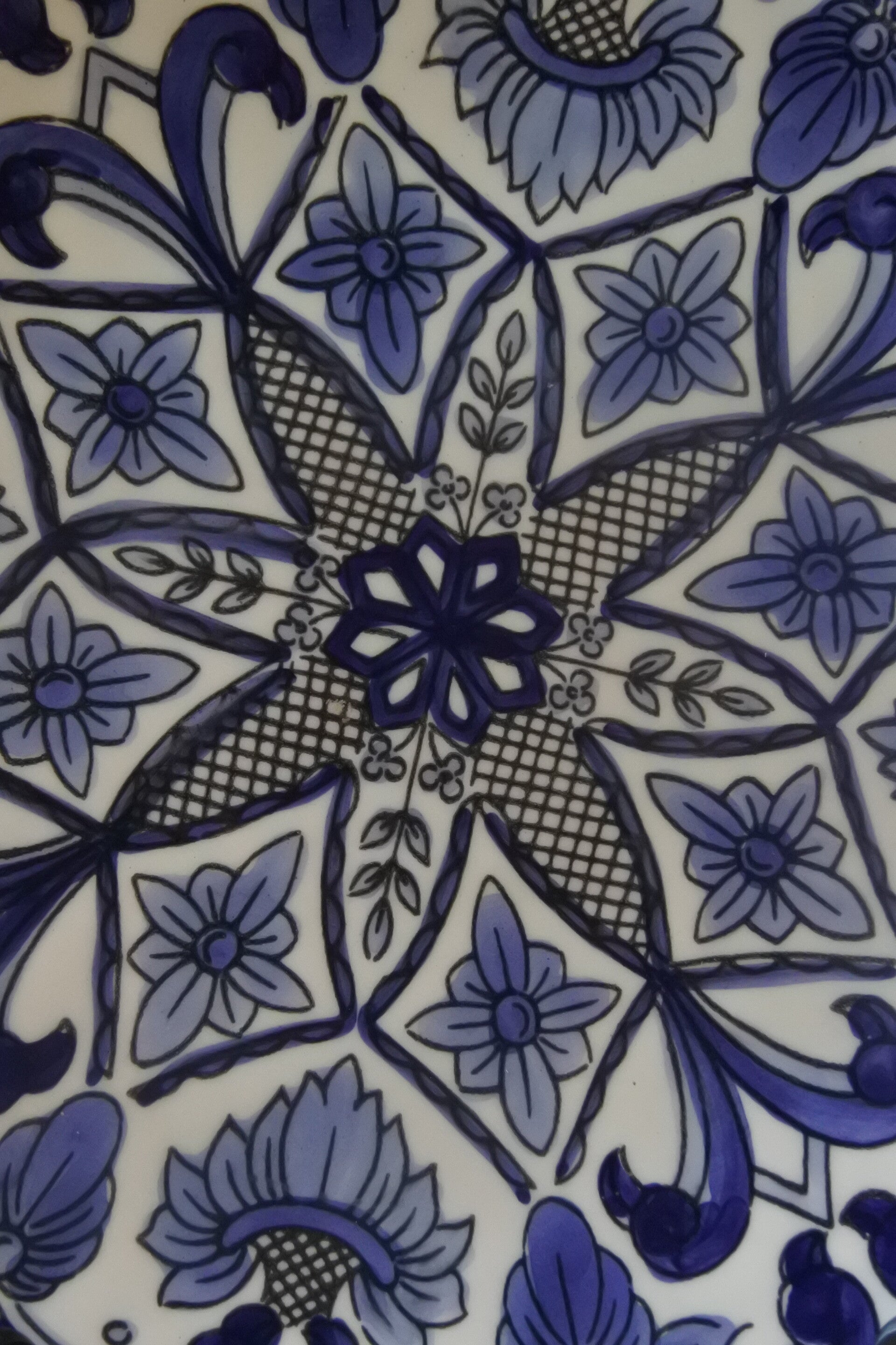 Vintage wandbord van Ceramar Spainin wit en blauw met prachtig mediterraans mandala look (bloemen)patroon.