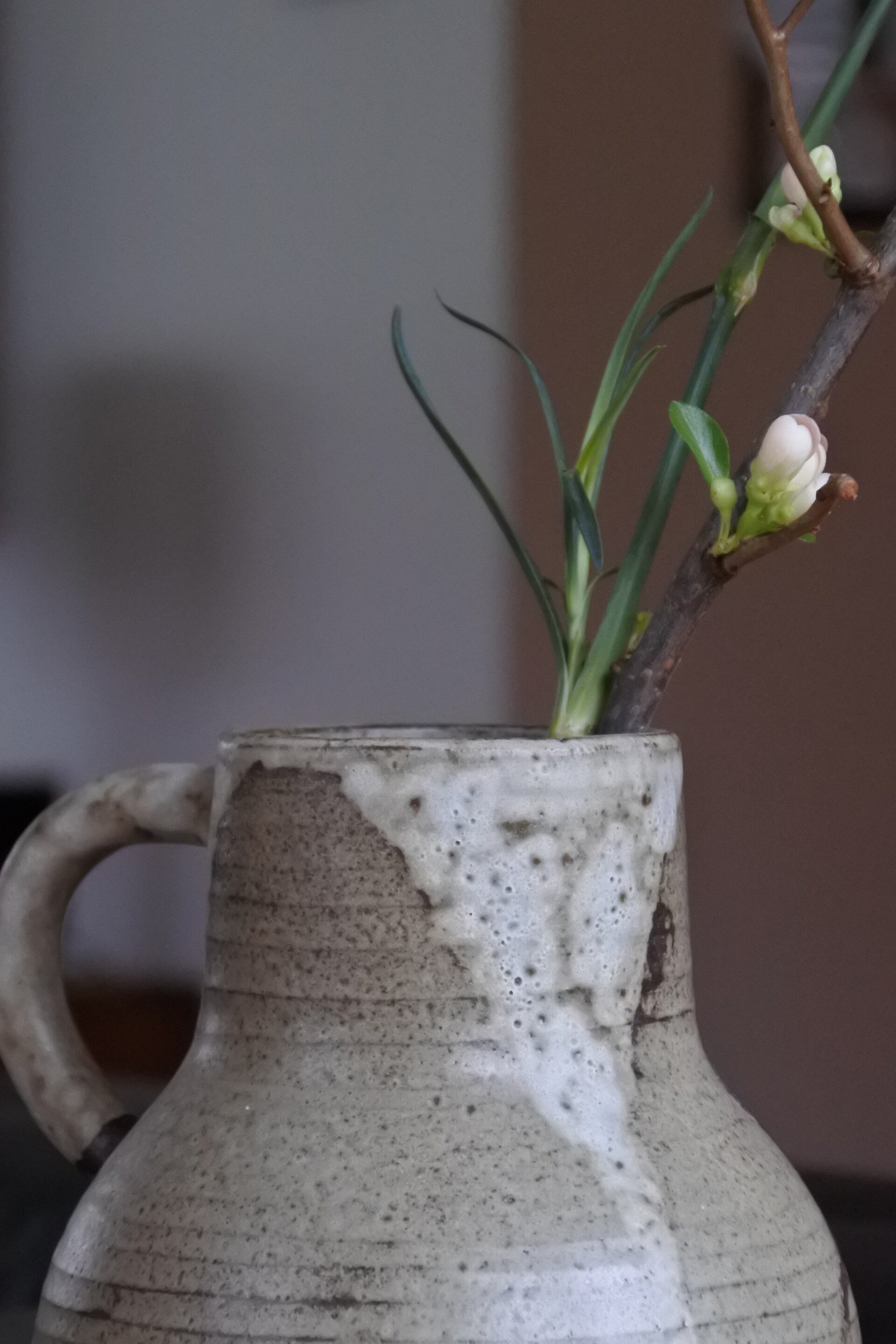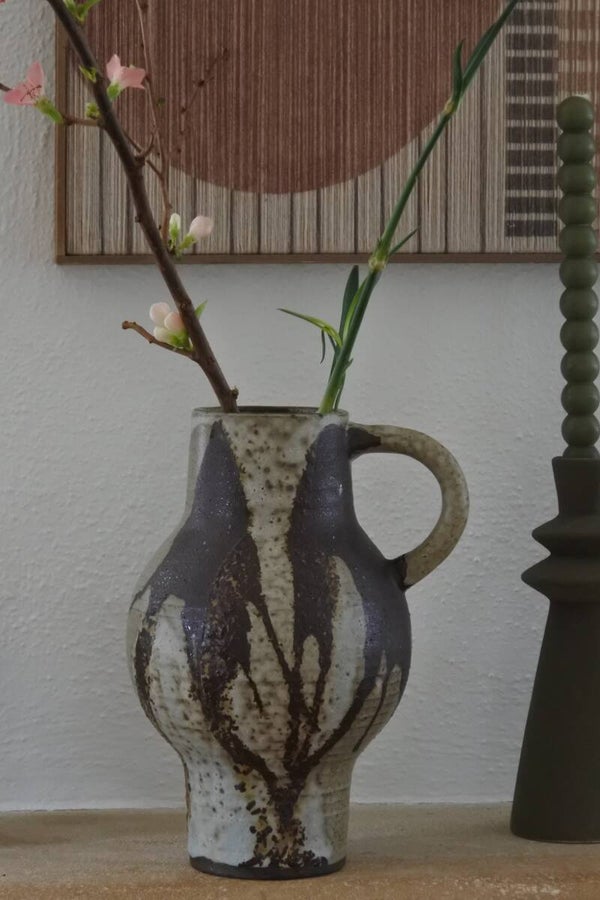Een zeldzaam mooie unica van 'ons' Nederlands keramiek trots Hannie Mein in prachtig taupe met bruingekleurd lava effect.