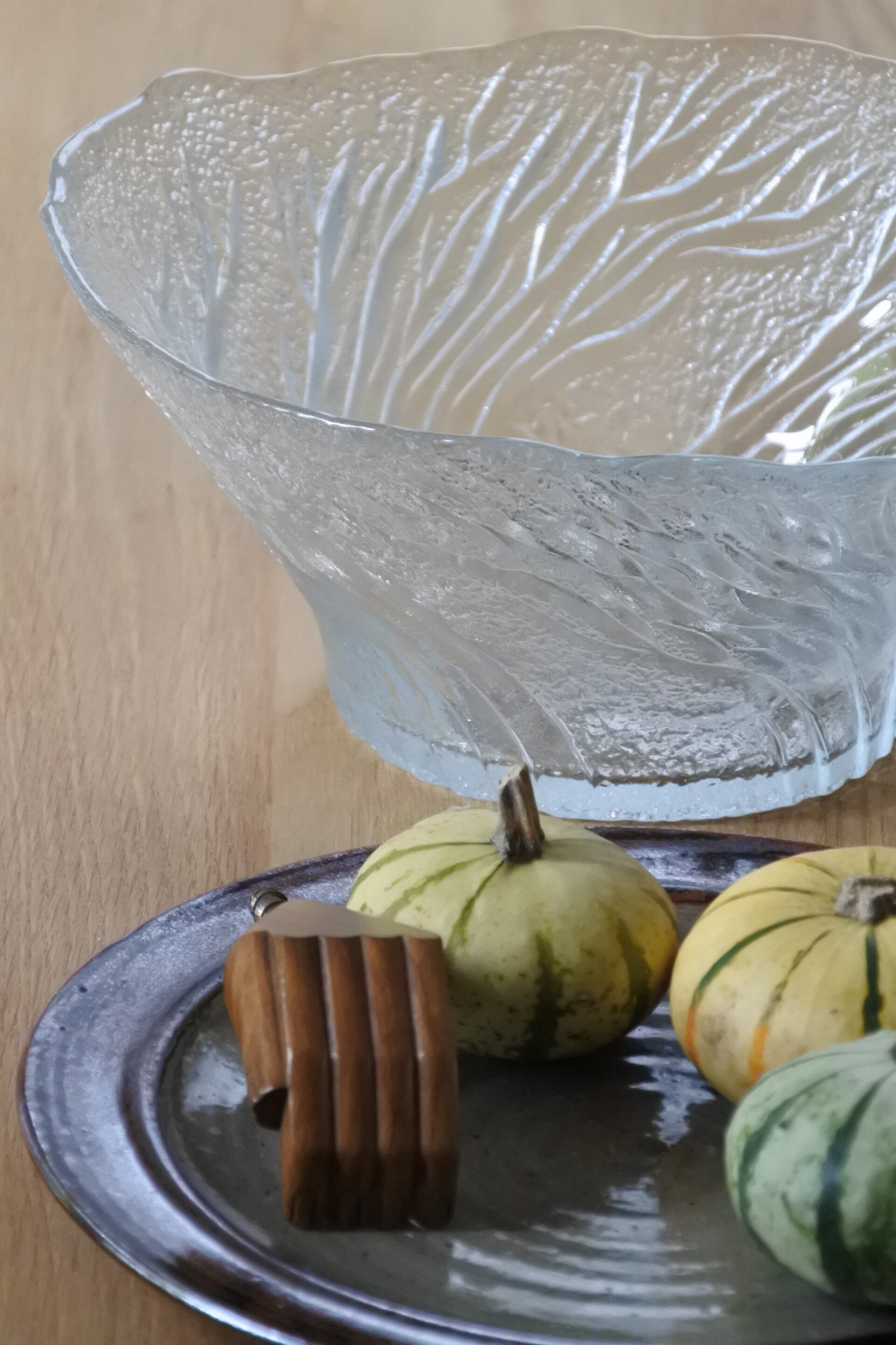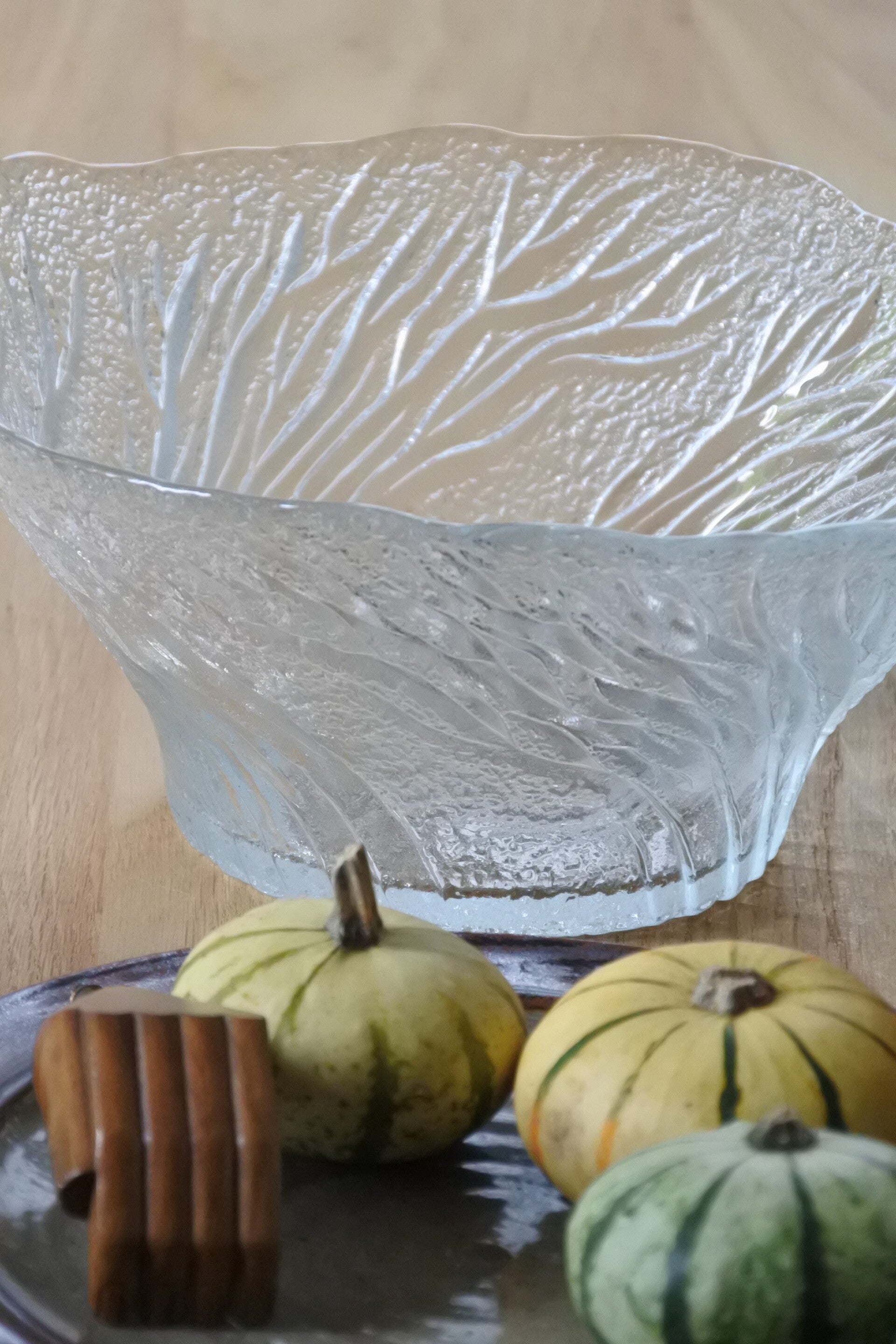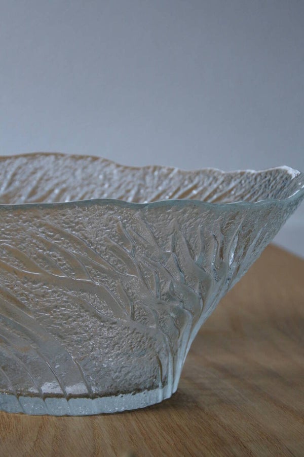 Vintage glazen serveerschaal Pertti Kallioinen - Lasisepät Mäntsälä design. Model : Metsa (betekent bos) "Forrest".
