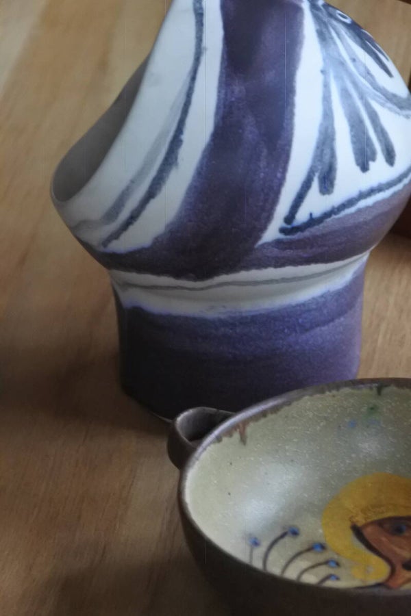 Vintage 70's Aviemore Pottery Scotland waxinelichthouder - potje of eigenlijk een salt pig. Een wat? een salt pig! dit item kan je namelijk ook gebruiken als keukenhulpje voor zout. Of het praktisch is? daar twijfelen we aan maar waar geen twijfel over mogelijk is.. dat het weer zo'n stuk is waarvan we bijna hopen dat het nooit verkocht wordt zodat we deze mooierd zelf kunnen toe-eigenen!