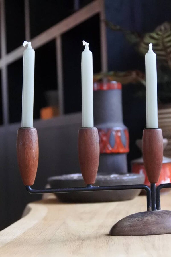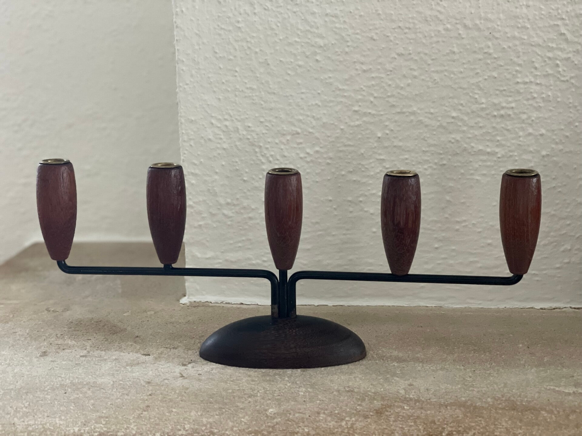 Vintage Lüthje Denmark 60's kandelaar van teakhout
