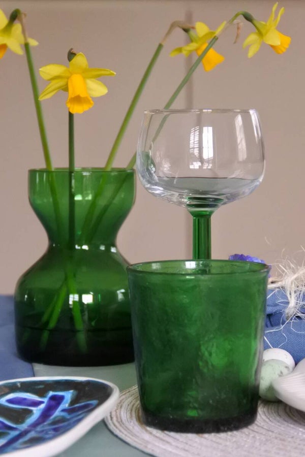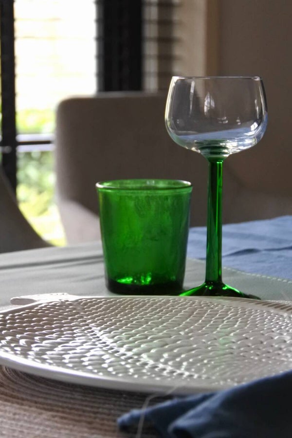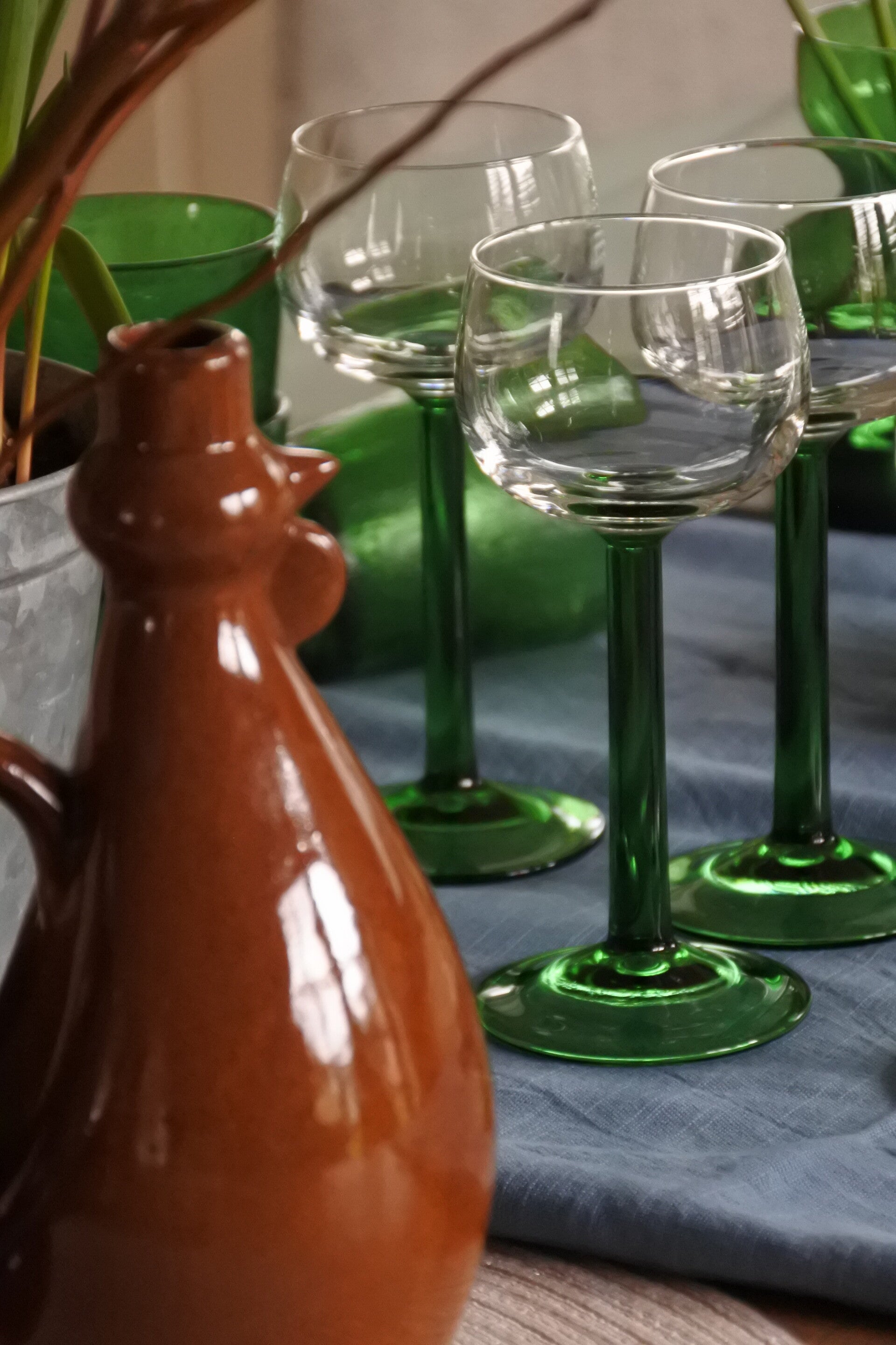 Deze mooie wijnglazen zijn hebben een hip gras groen voetje en geven elke tafel een frisse look!
