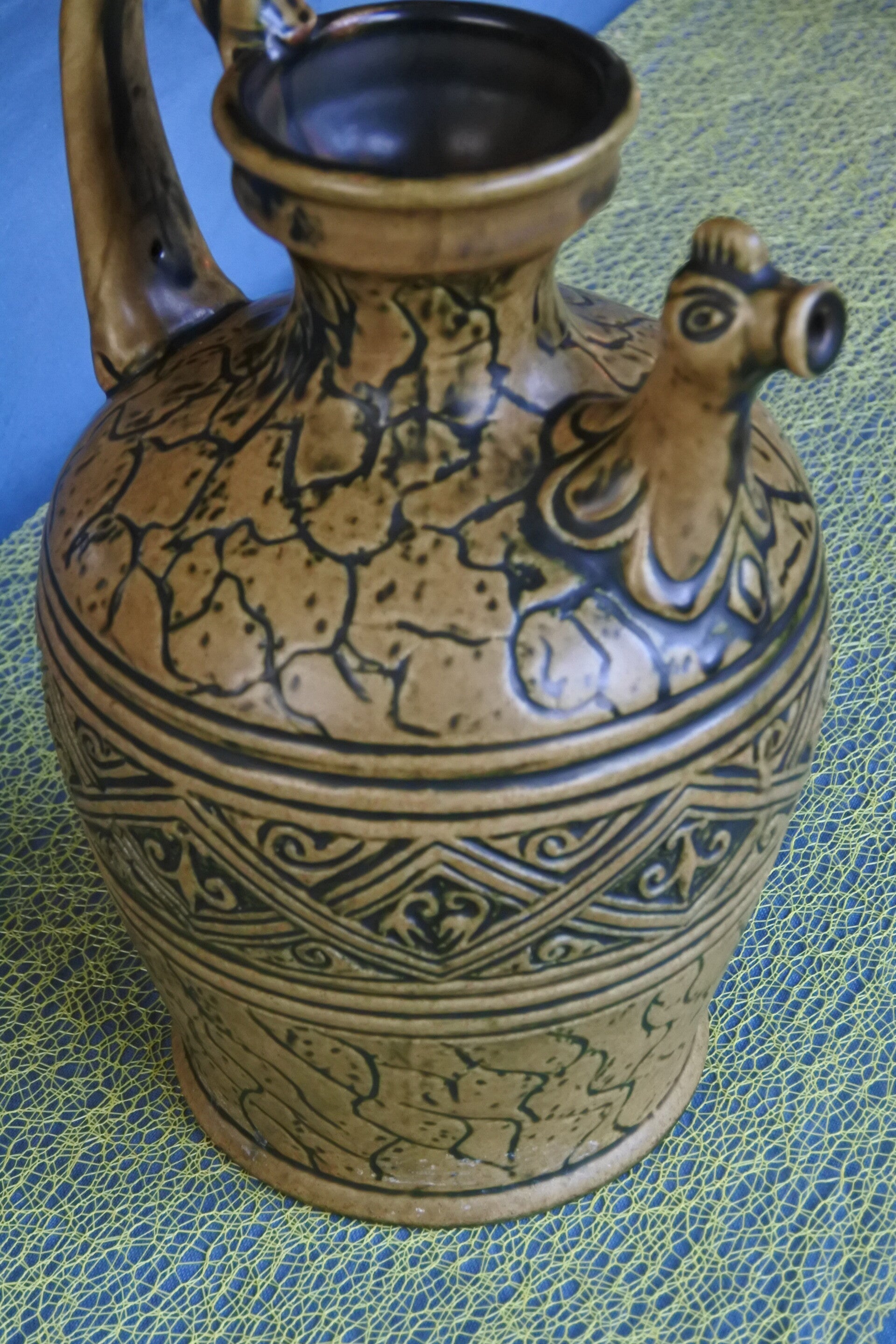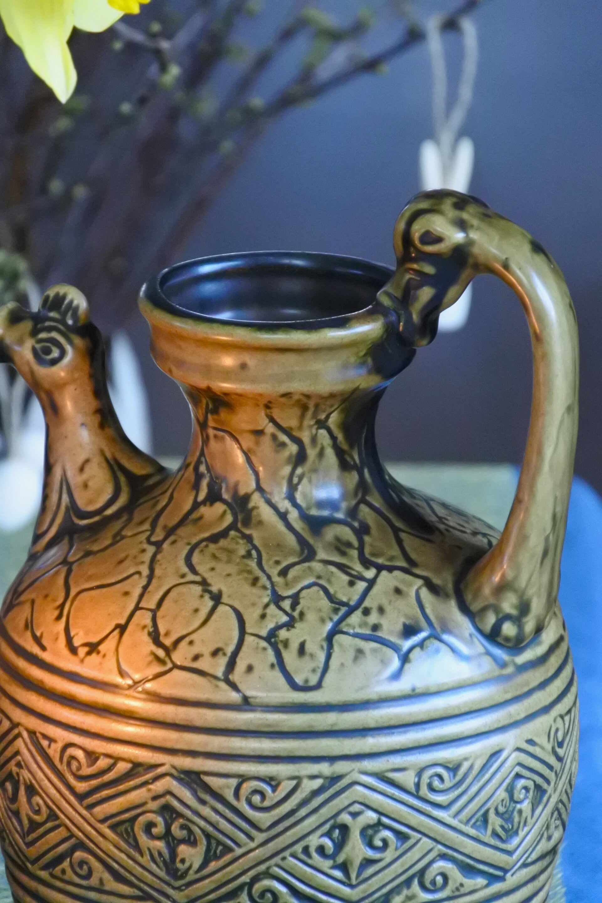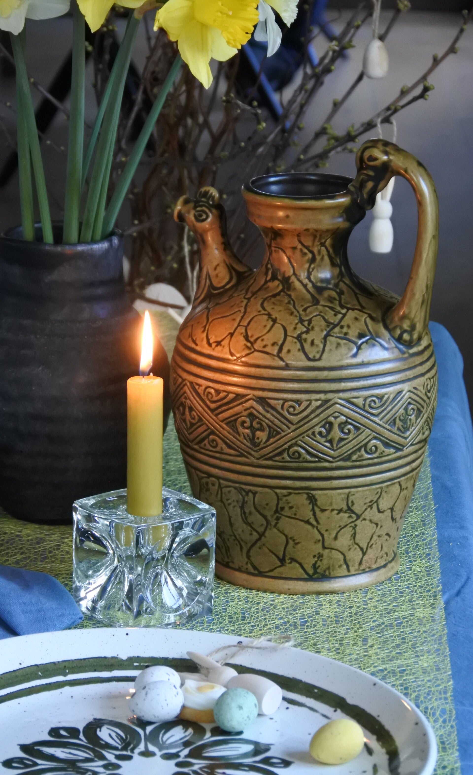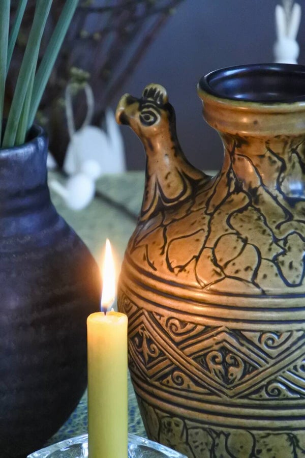 Vintage Jasba West Germany vaas in mooie olijf groene kleur met prachtige details.