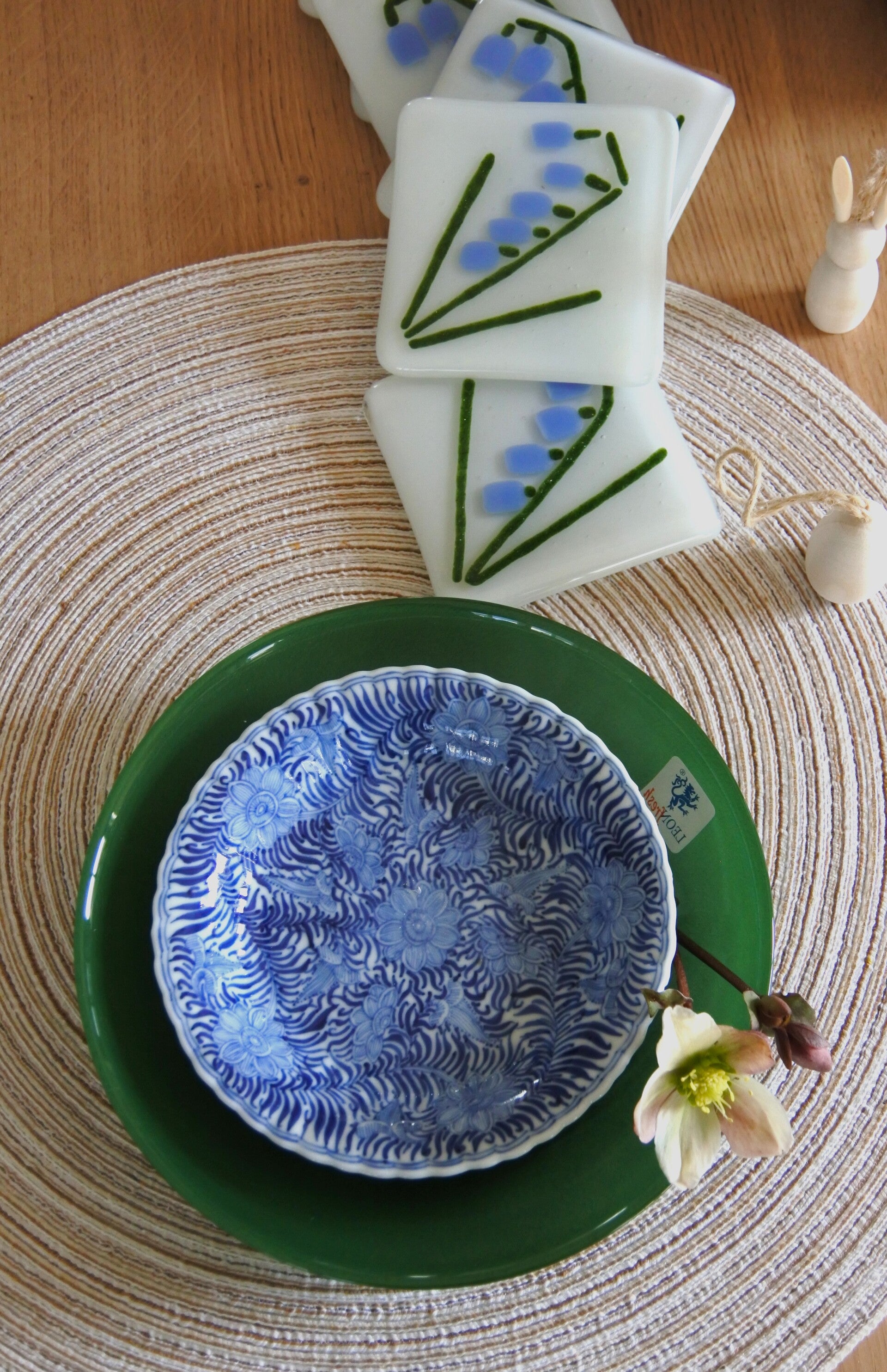Vintage 4-delige set Leonfresh groen glazen bordjes