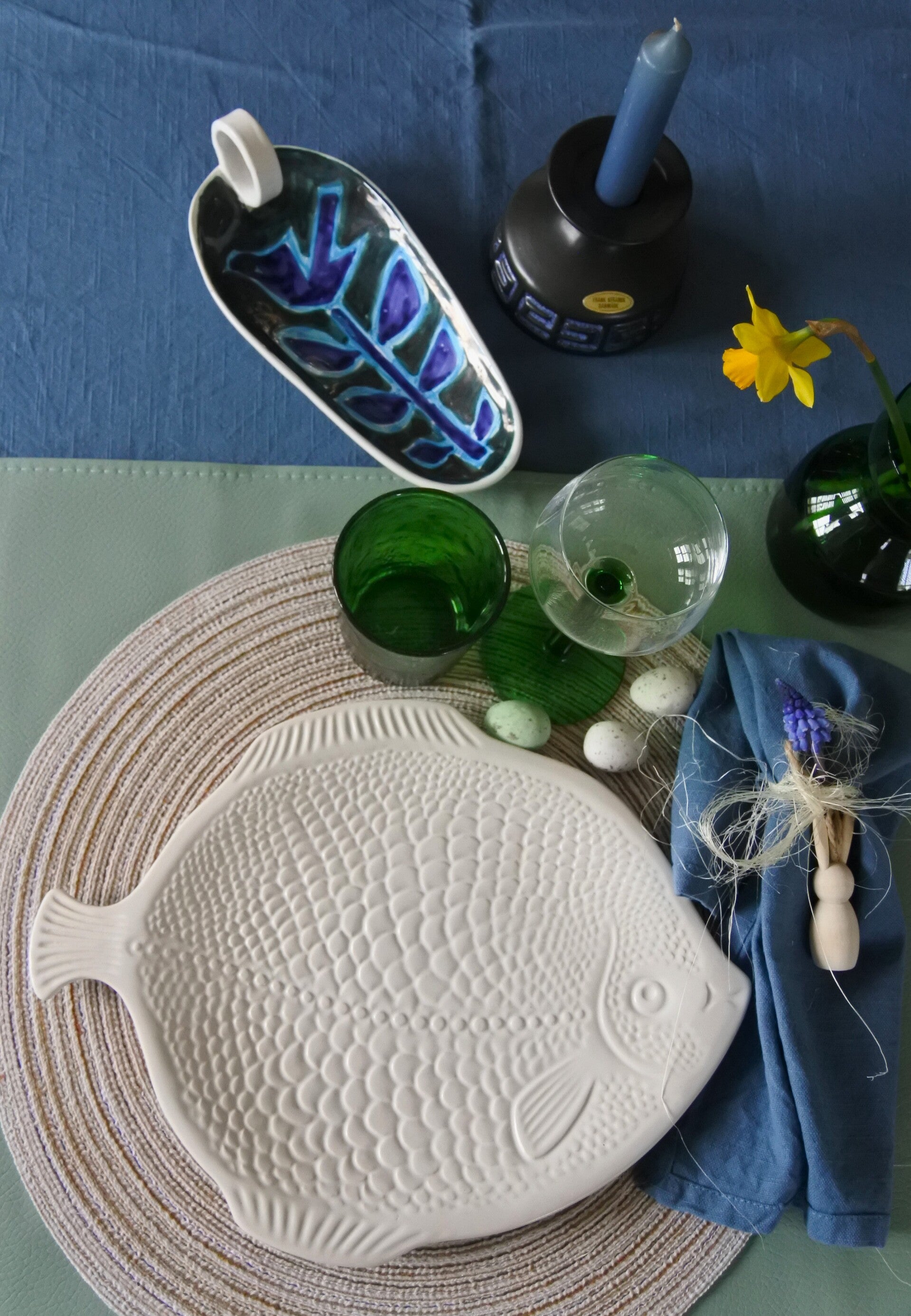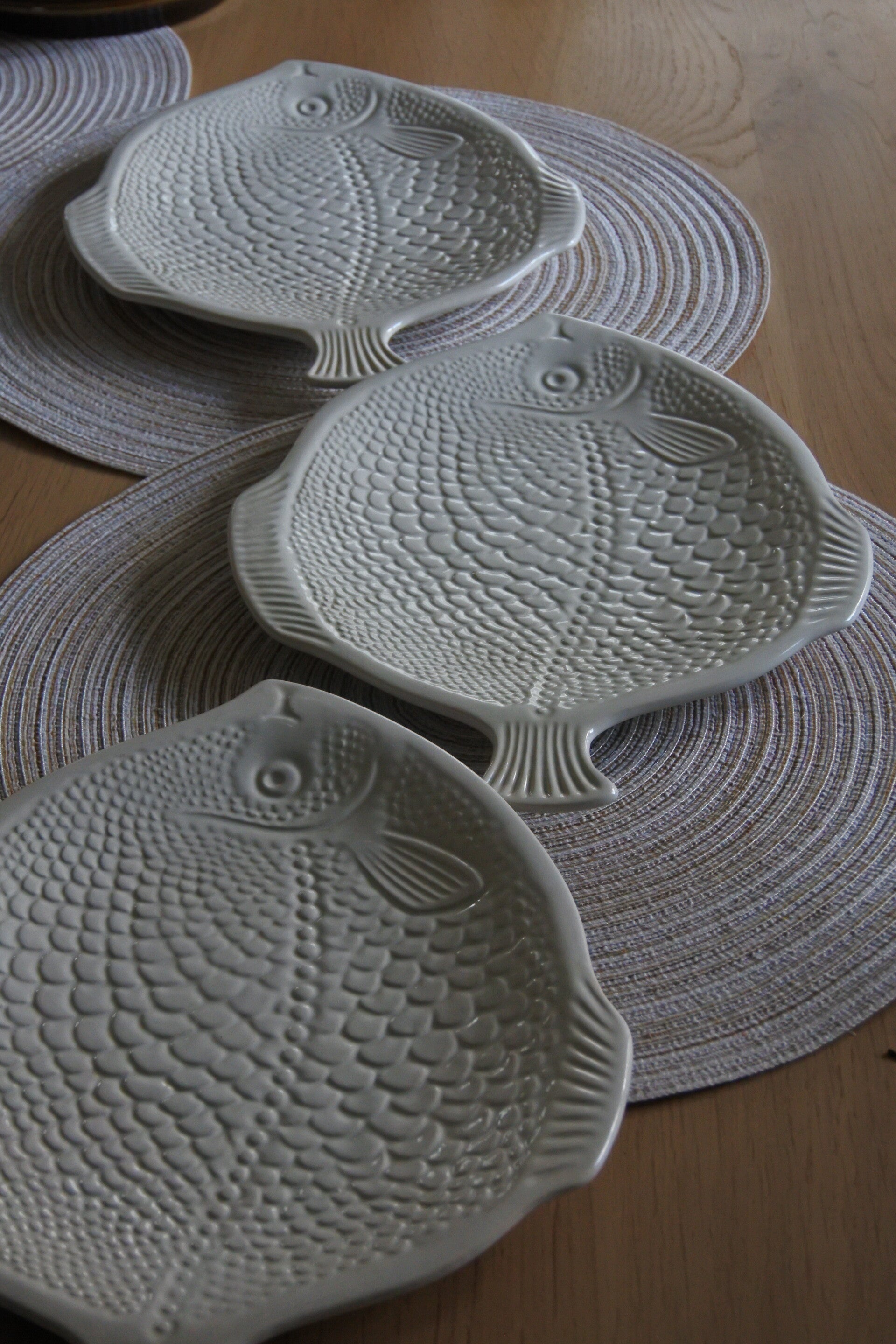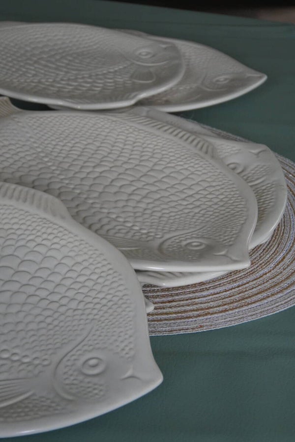 Vintage set vissen bordjes wit keramiek 6-delig