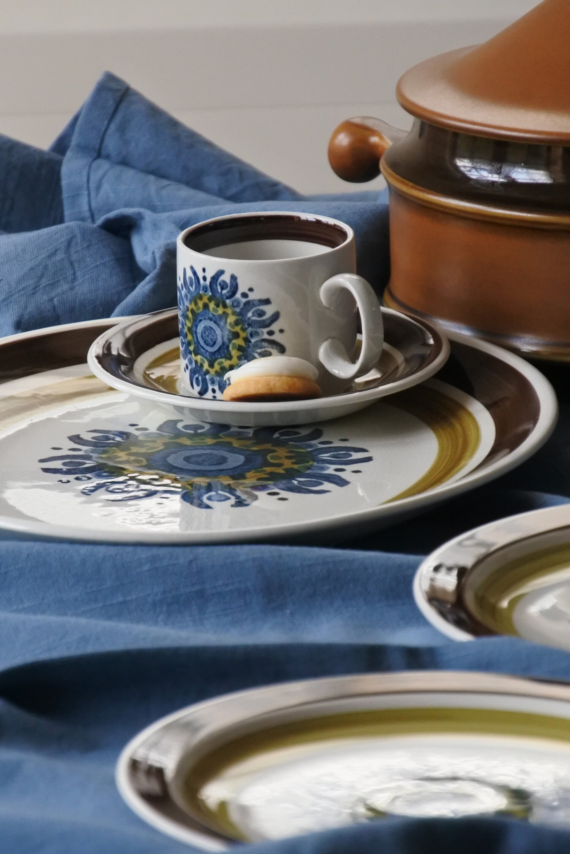 Mooie vintage schaal Burleigh Castile in wit met zacht groene, bruine en blauwe details.