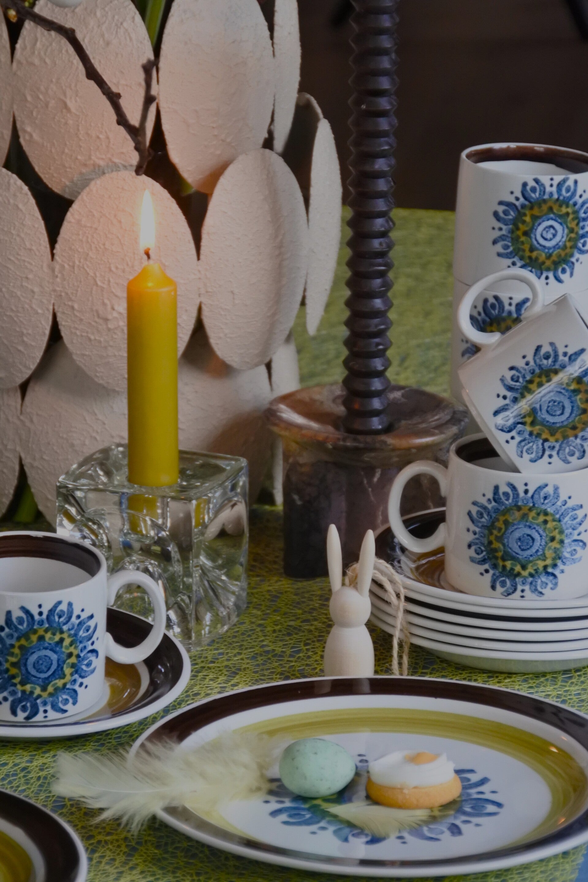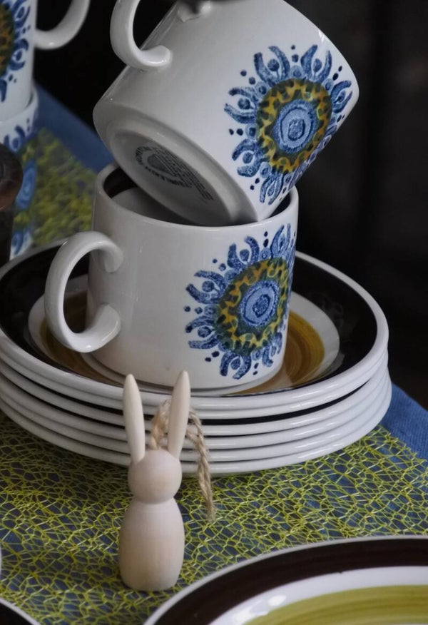 Mooie vintage 6-delige kop en schotelset van Burleigh Castile in wit met zacht groene, bruine en blauwe details.