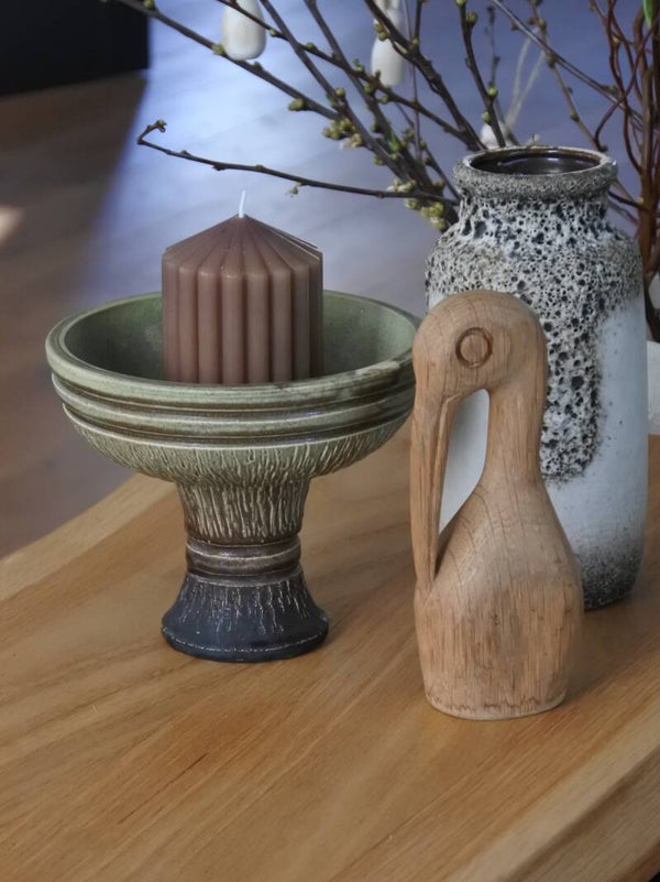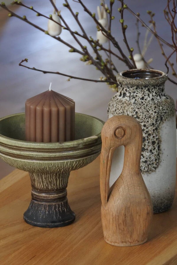 Vintage Scandi houten beeldje in de vorm van een mooie vogel gesneden uit 1 stuk.