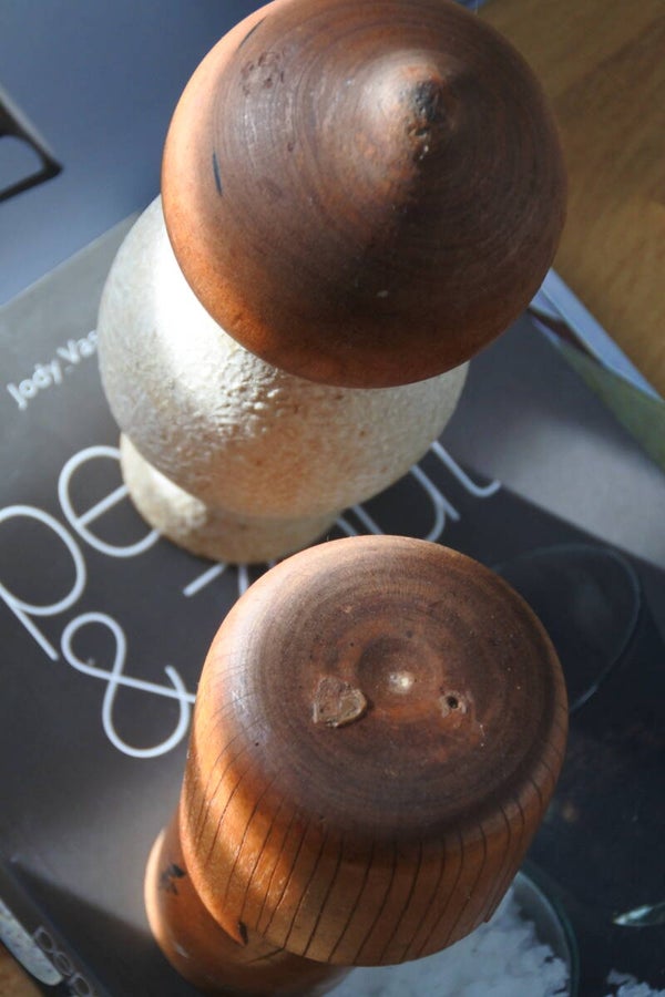 Dit specifieke ontwerp is zeer goed gemaakt, vooral de draaibank aan de onderkant. Dit is een vintage pop, dus je zult wat deuken en krassen zien, waaronder wat verfschilfers. Dit toont de vintage kwaliteit en leeftijd van de pop.