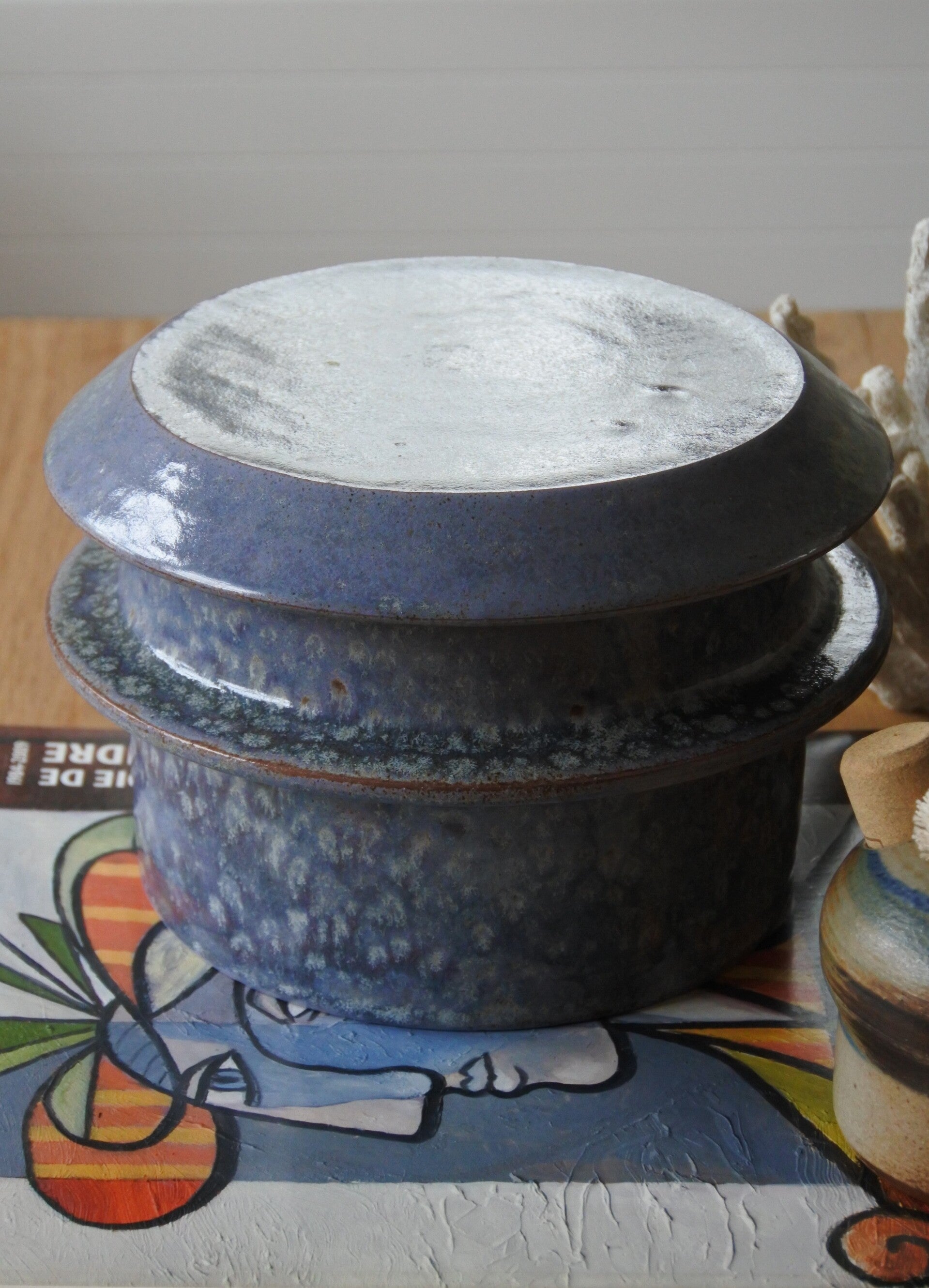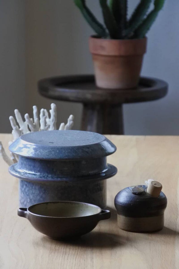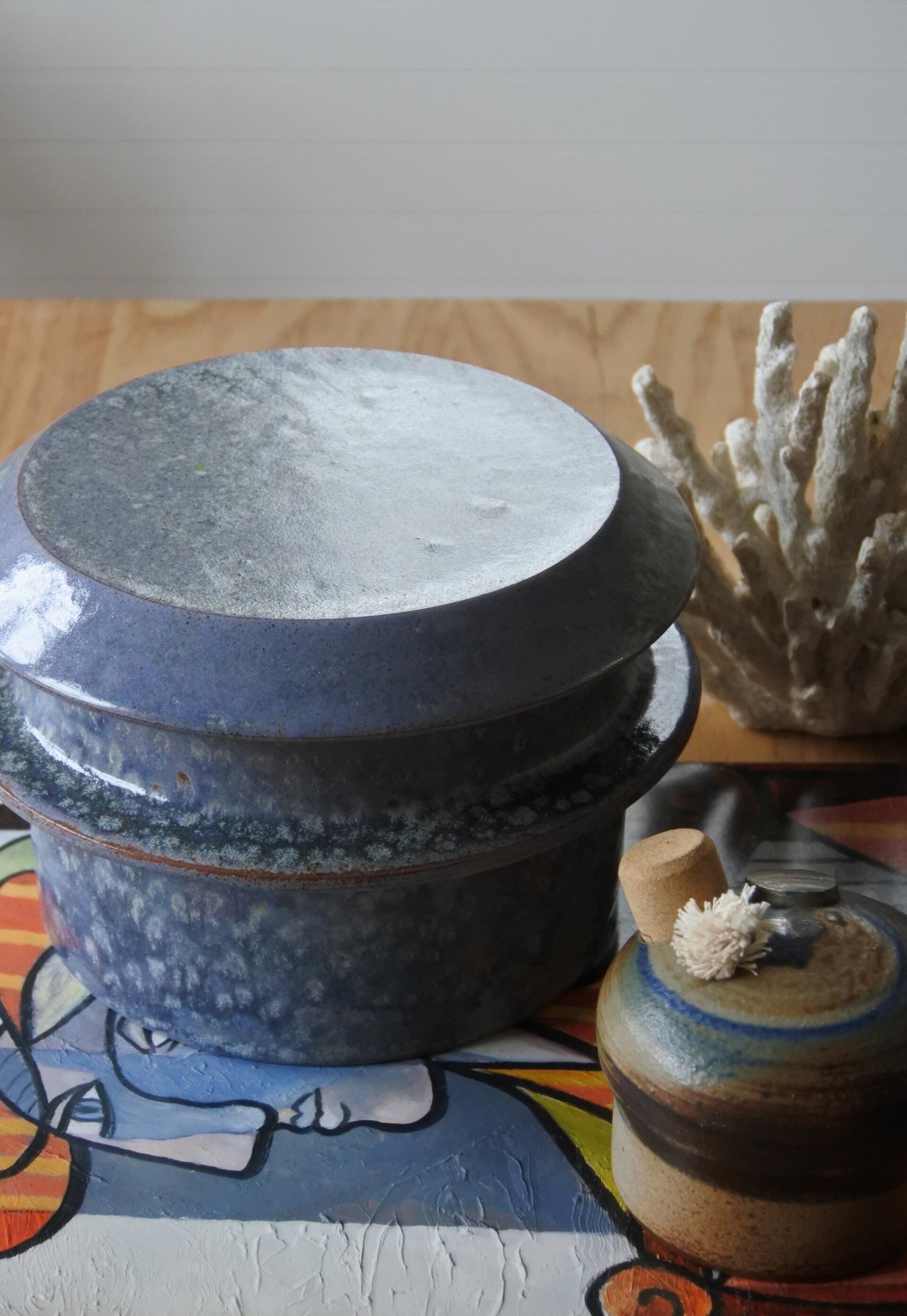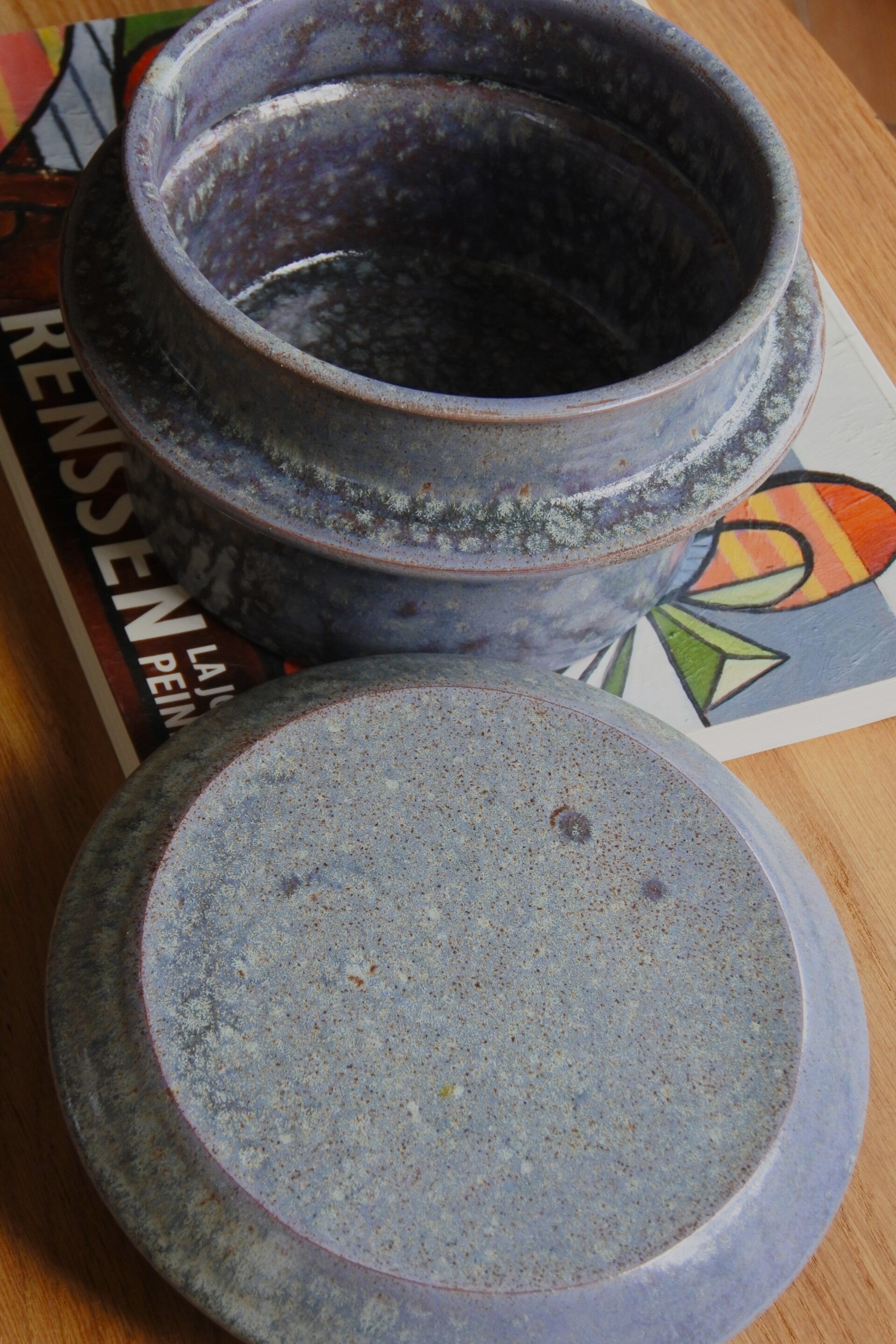 Vintage studio pottery dekselschaal van keramiek