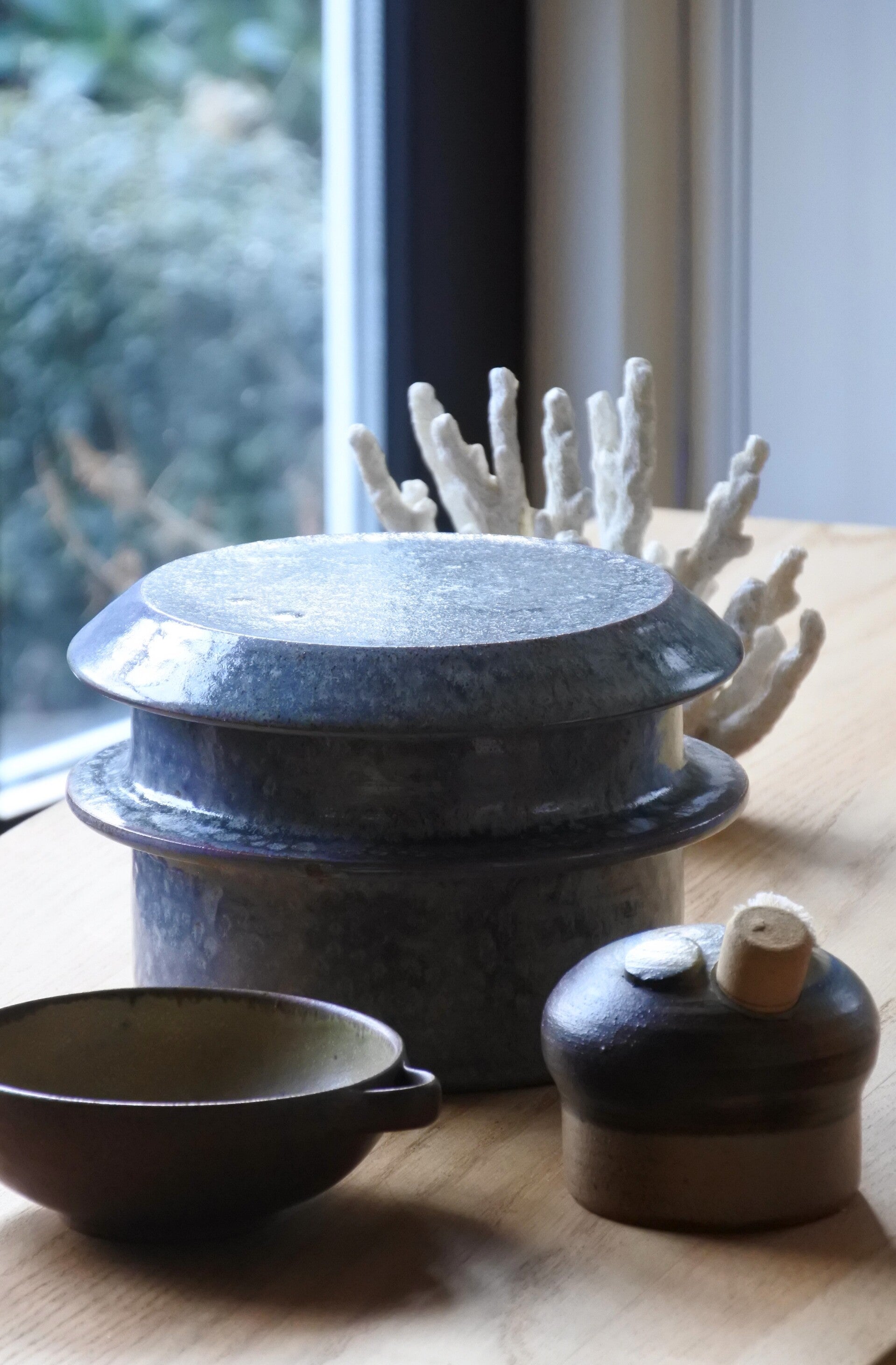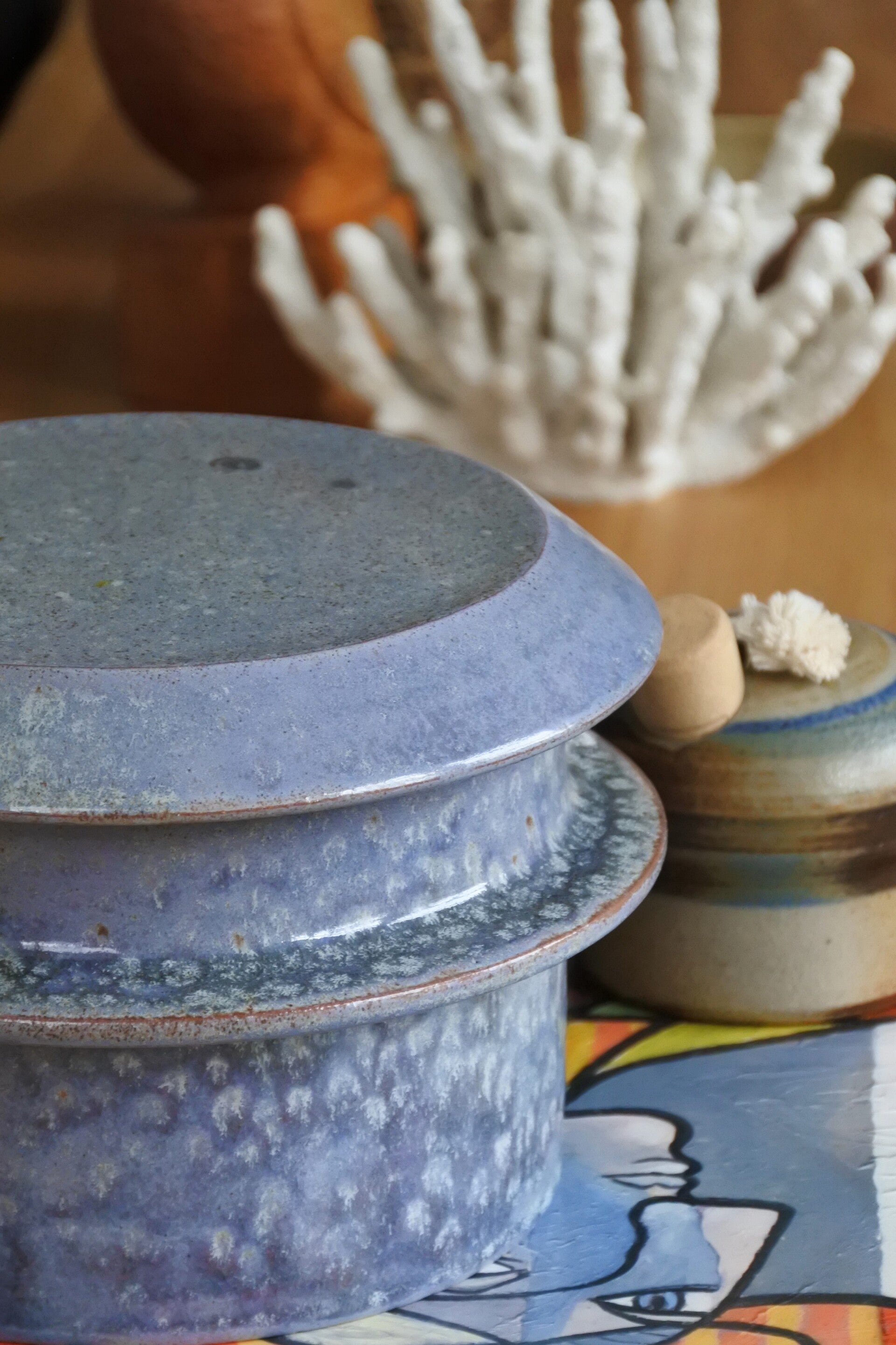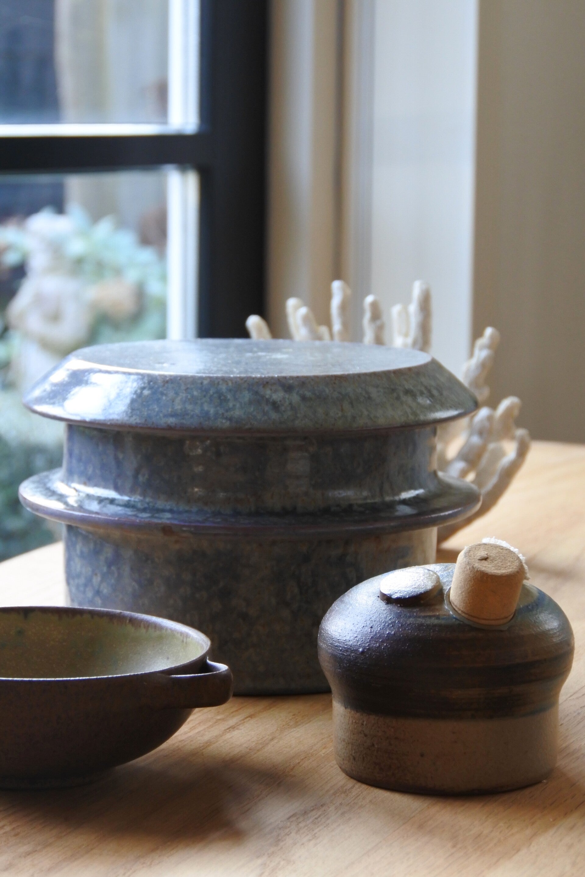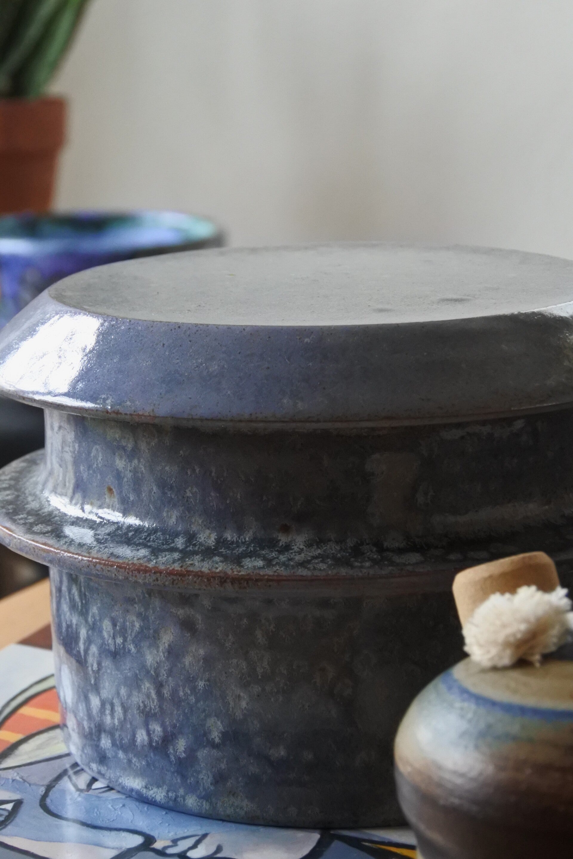 Vintage studio pottery dekselschaal van keramiek