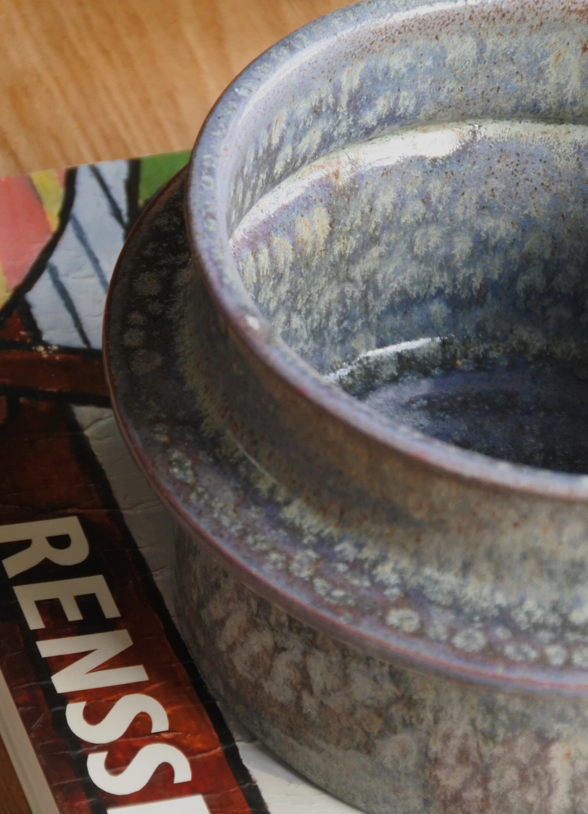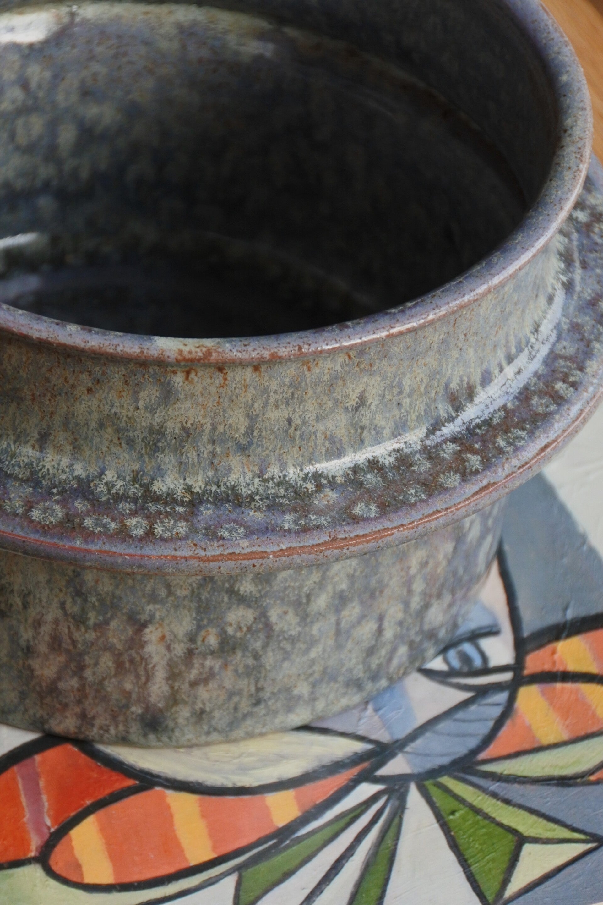 Heel mooi vormgegeven dekselschaal van.. tsja wisten we het maar! gek-ma-kend is het soms! deze ontzettend mooi vervaardigde schaal is namelijk van binnen en buiten echt prachtig en heeft een kleurenmelange van paars met bruin, een vleugje groen en blauw. Deze beauty heeft alles in huis dus!