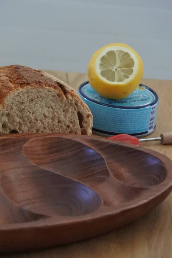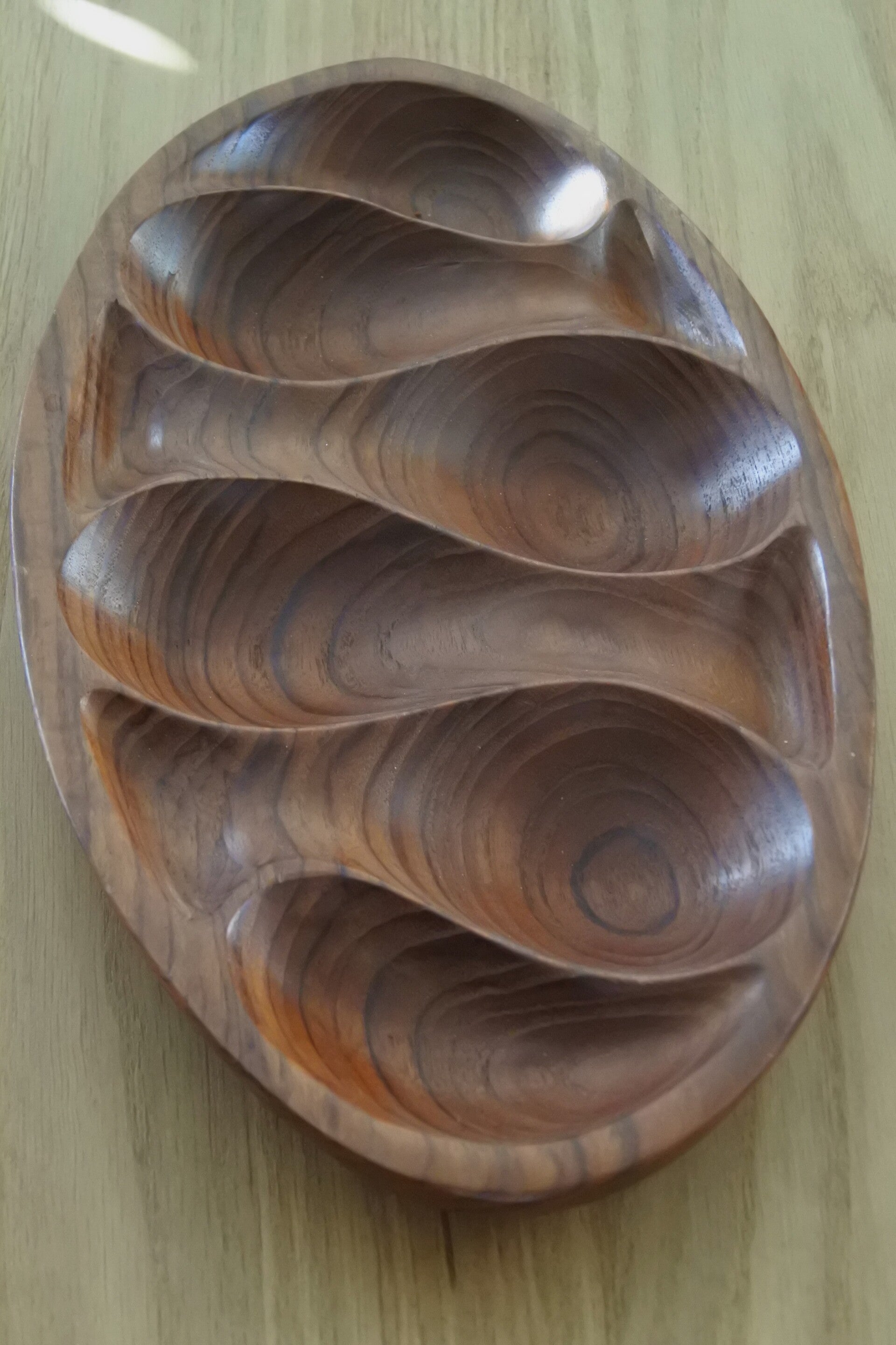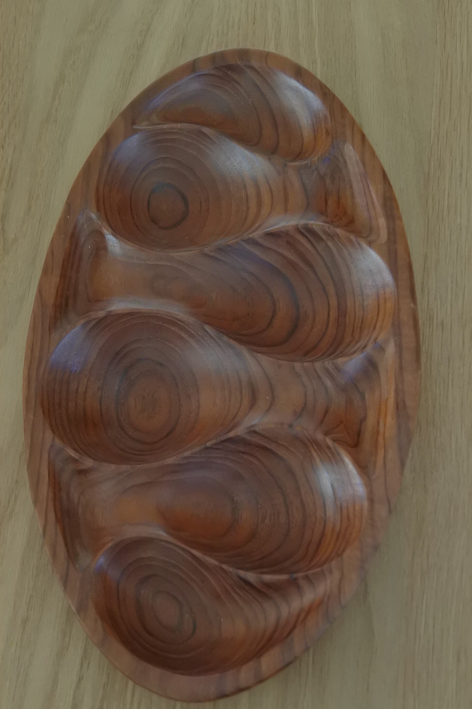 Vintage Deense hapjes schaal van teak uit de jaren 60. Design Laur Jensen.