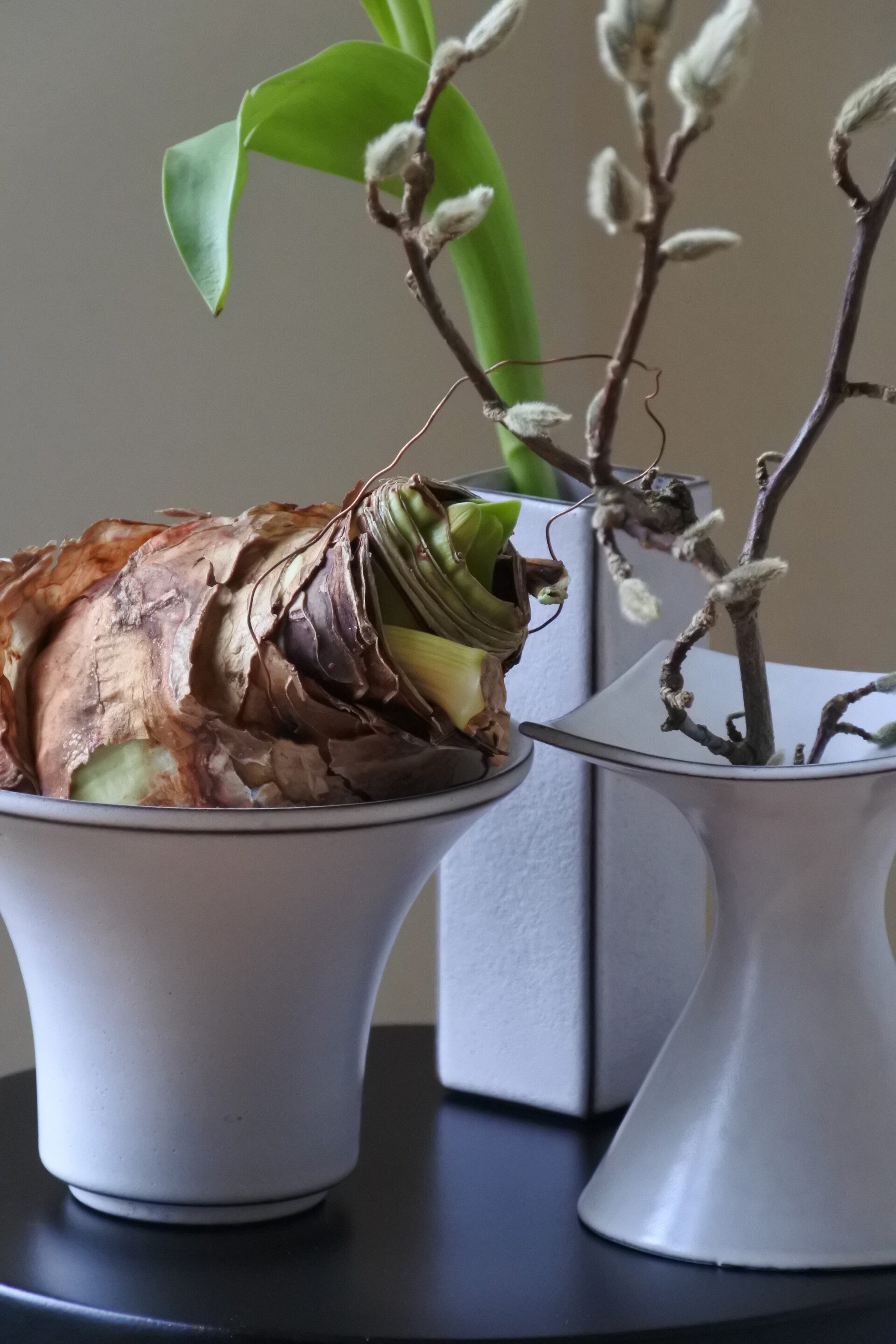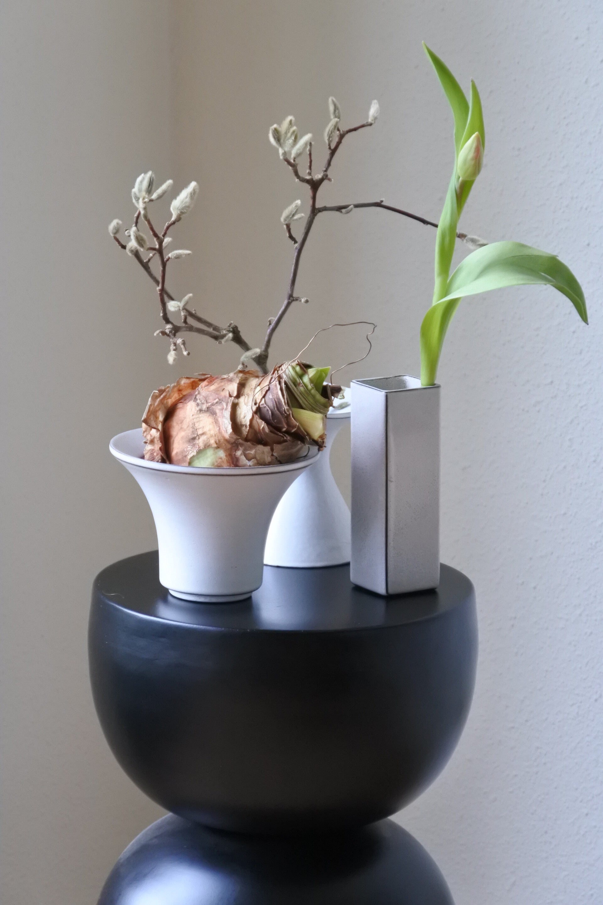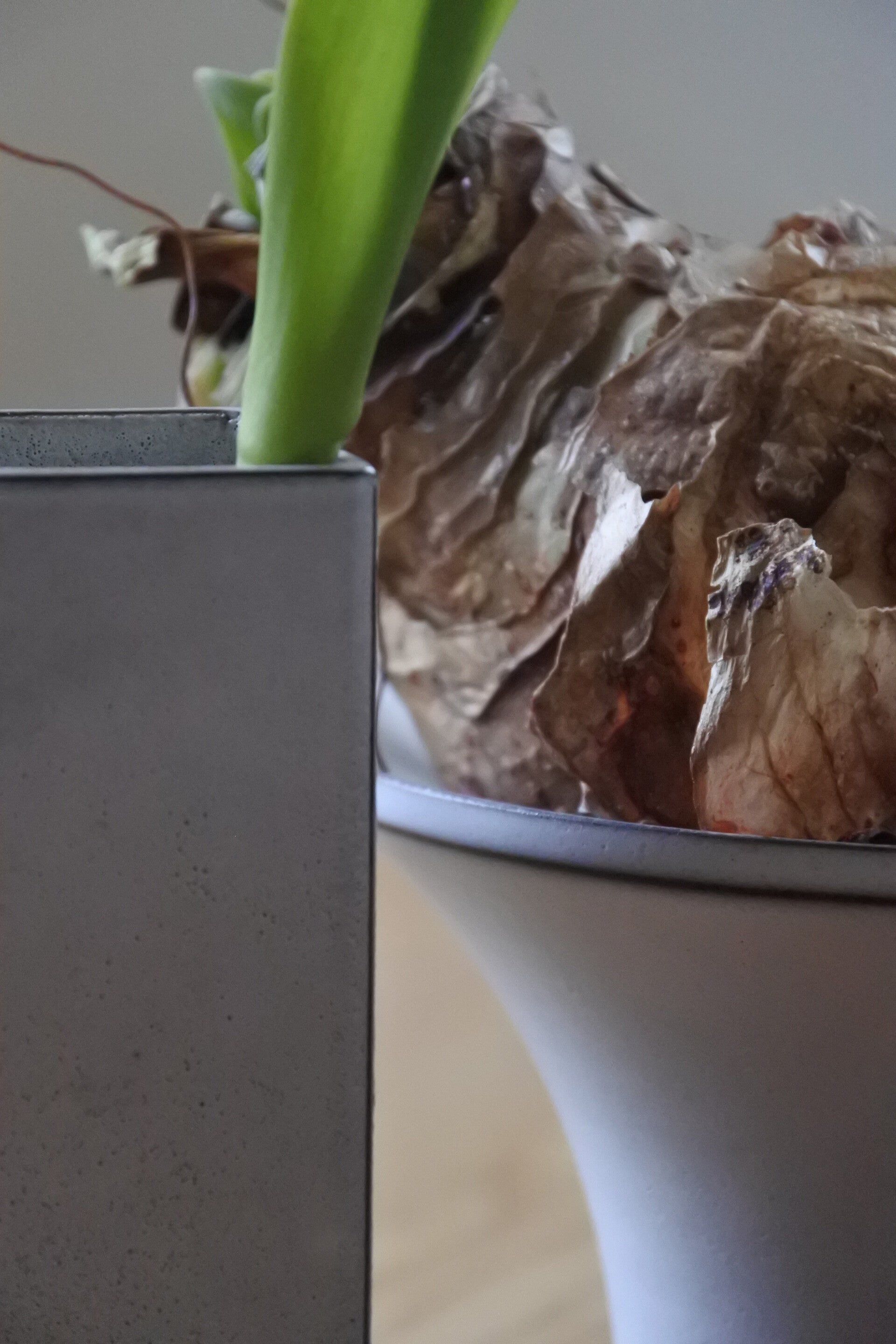 Prachtig bloempotje-vaasje in de stijl van hollandse design meester Cor Unum in een mooie zachte creme-witte kleur met espressokleurige details.