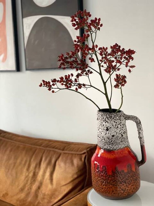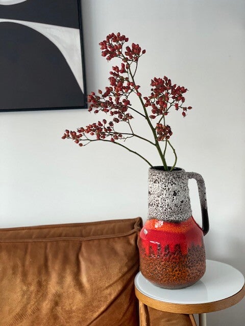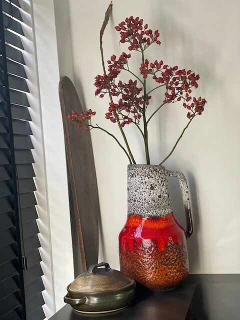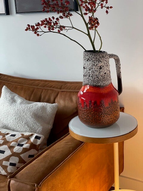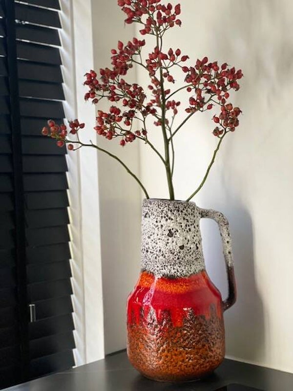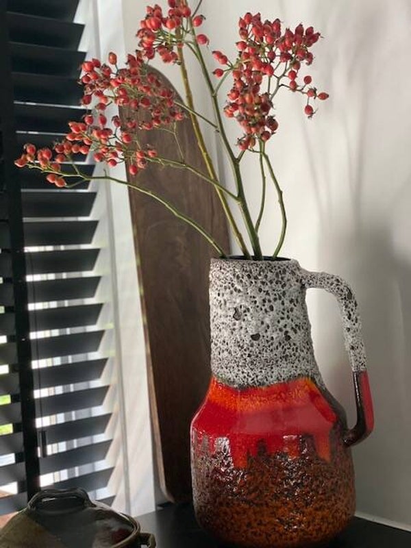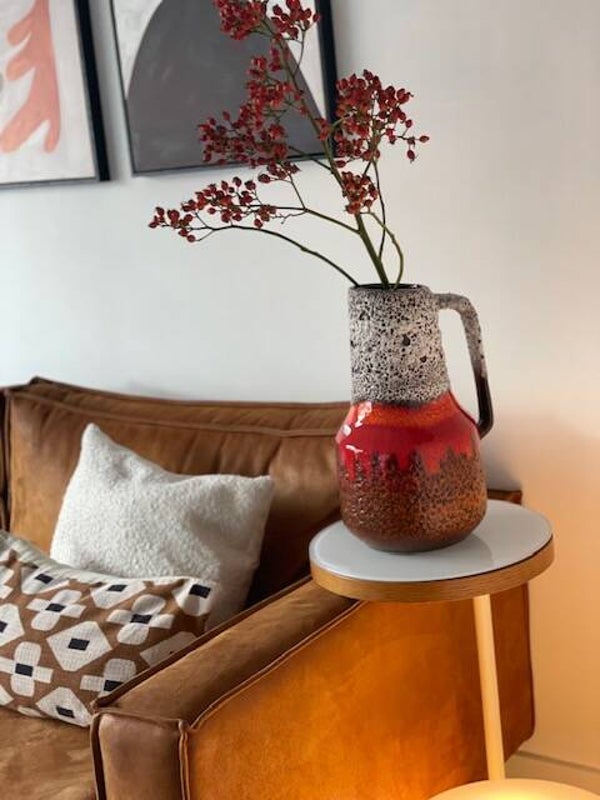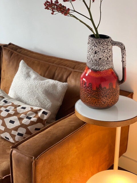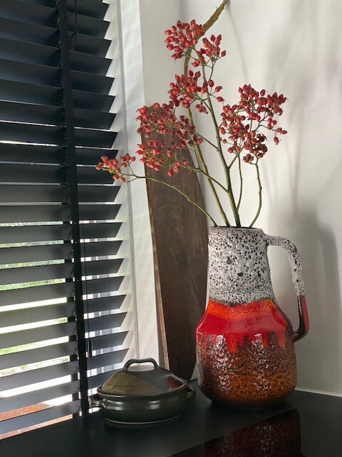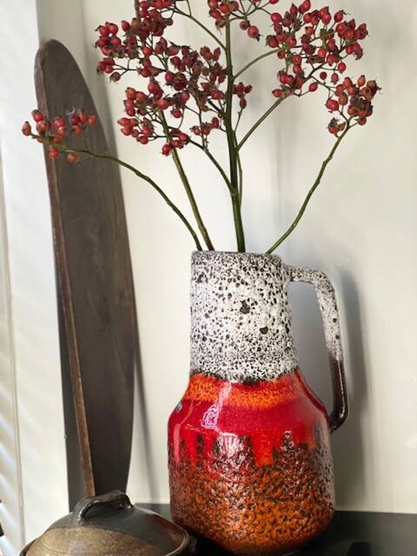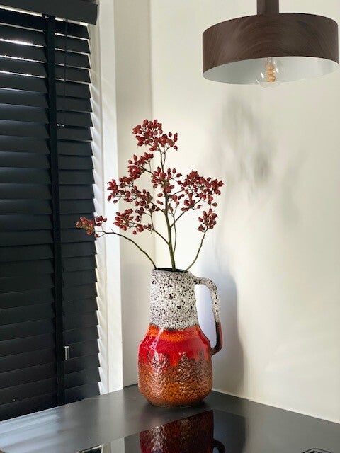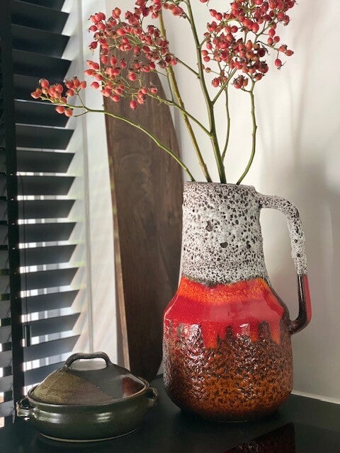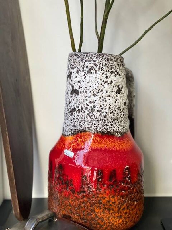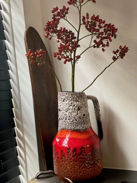 Deze vintage jaren 60 Scheurich vaas is een echte koningin onder de West Germany's als je het ons vraagt want deze opvallende vaas met prachtig bruisglazuur en funky maar toch frisse kleurencombo is een echte parel als je van vintage vazen houd! en stiekem ook als je niet eens van vintage houd ;)
