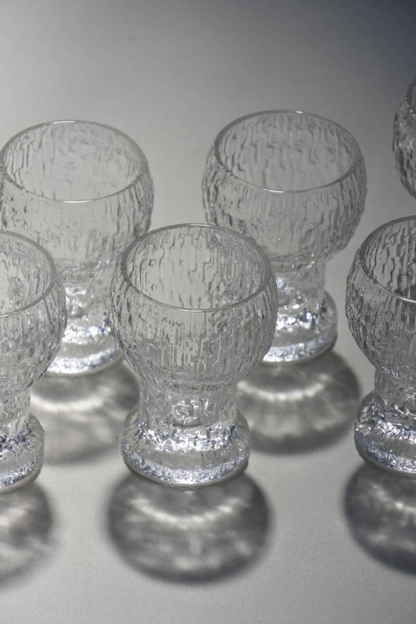 Vintage Iittala Finland shotborrel glaasjes met ijs kristal look ontworpen door Timo Sarpaneva - model Kekkerit Naukku.