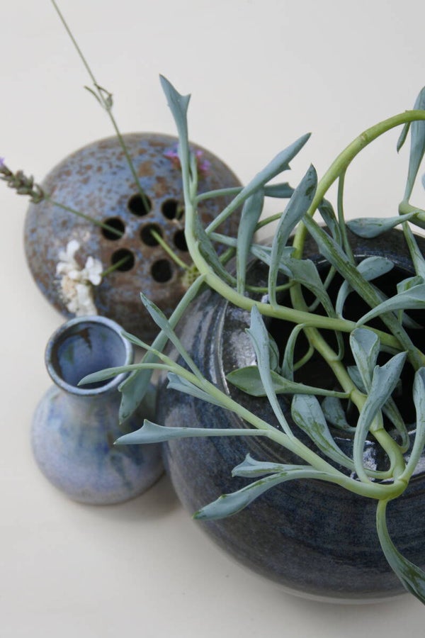 Vintage pottenbakkers vaasje lichtblauw