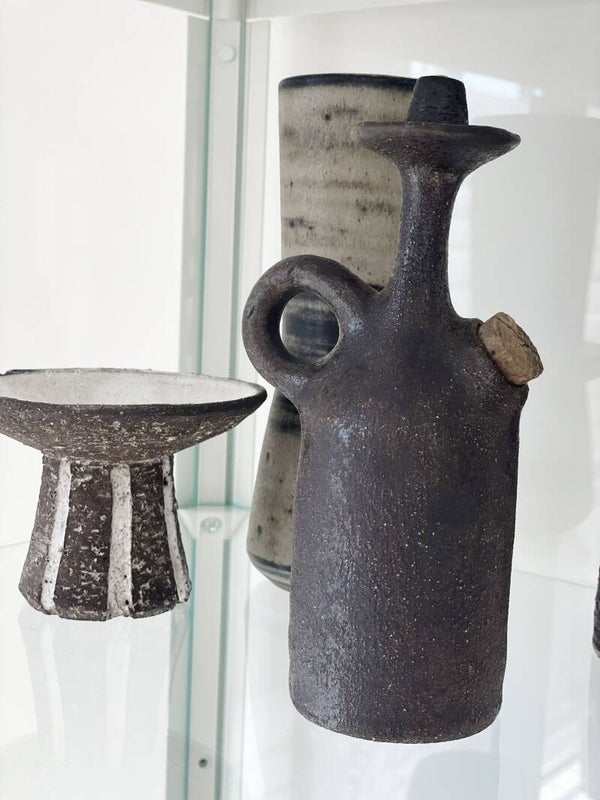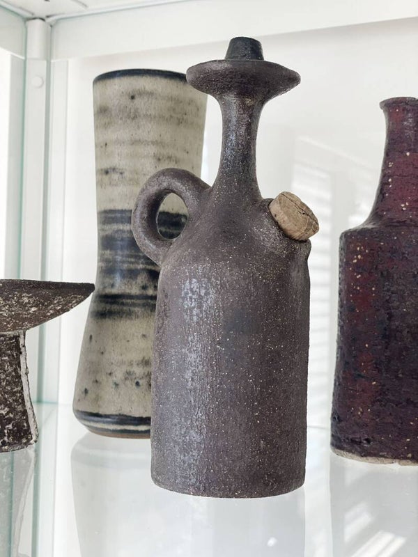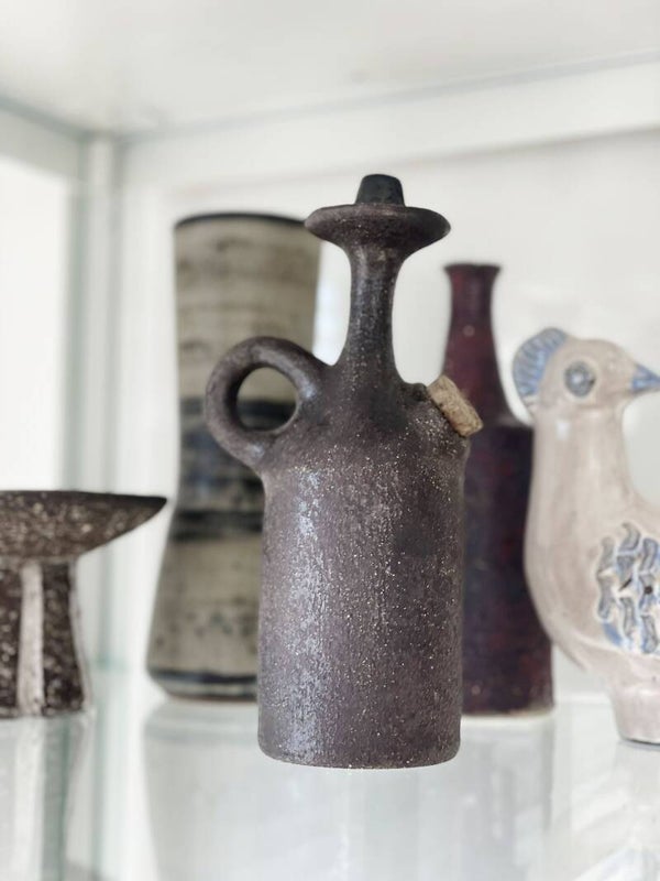 Mooi mid century modern olielampje van steengoed in mooie bruine mokkakleur. Tsja, en dan die maker. Die hebben we helaas nog niet achterhaald maar boy o boy pottenbakker kan deze keramist zeker!