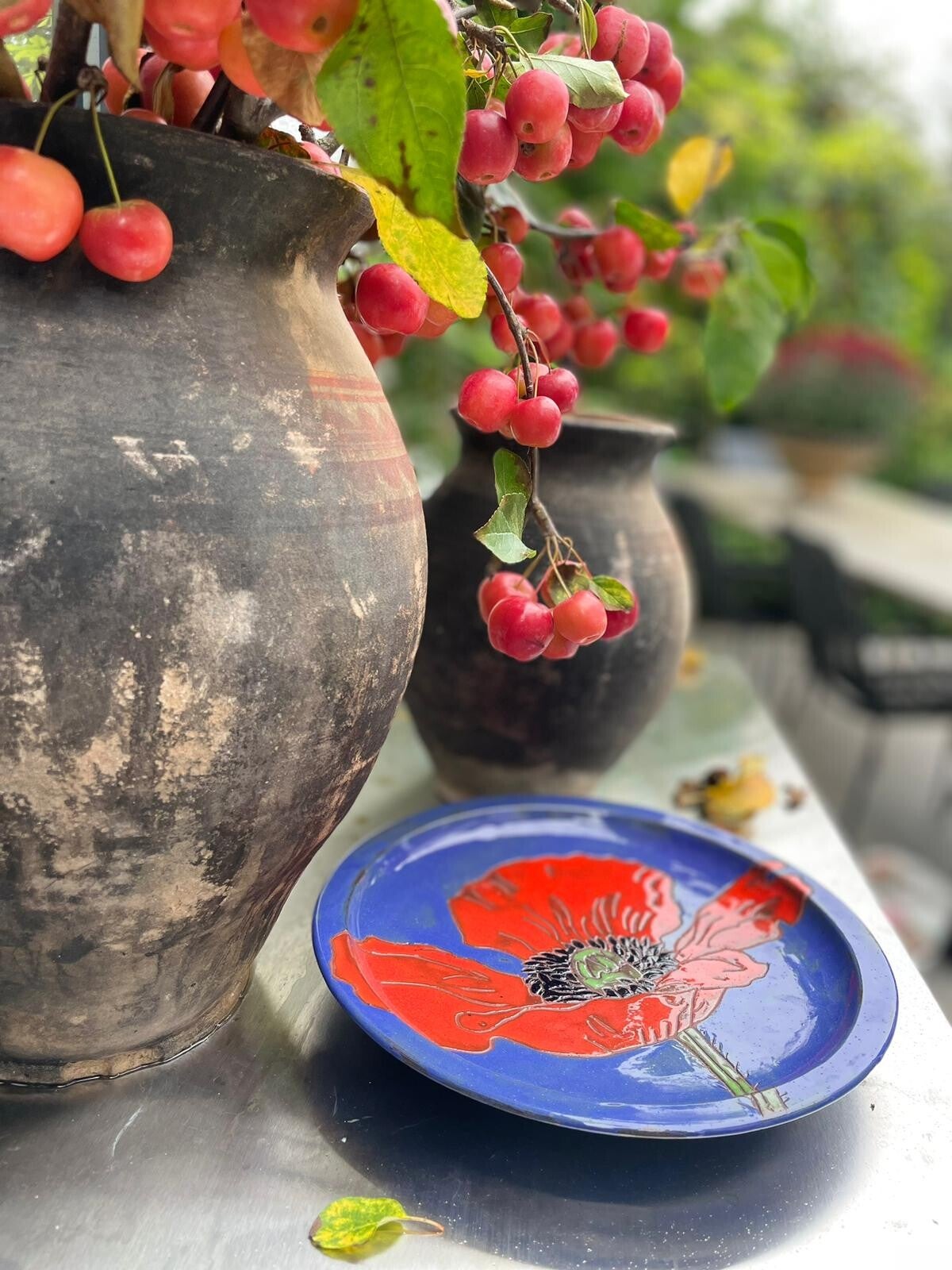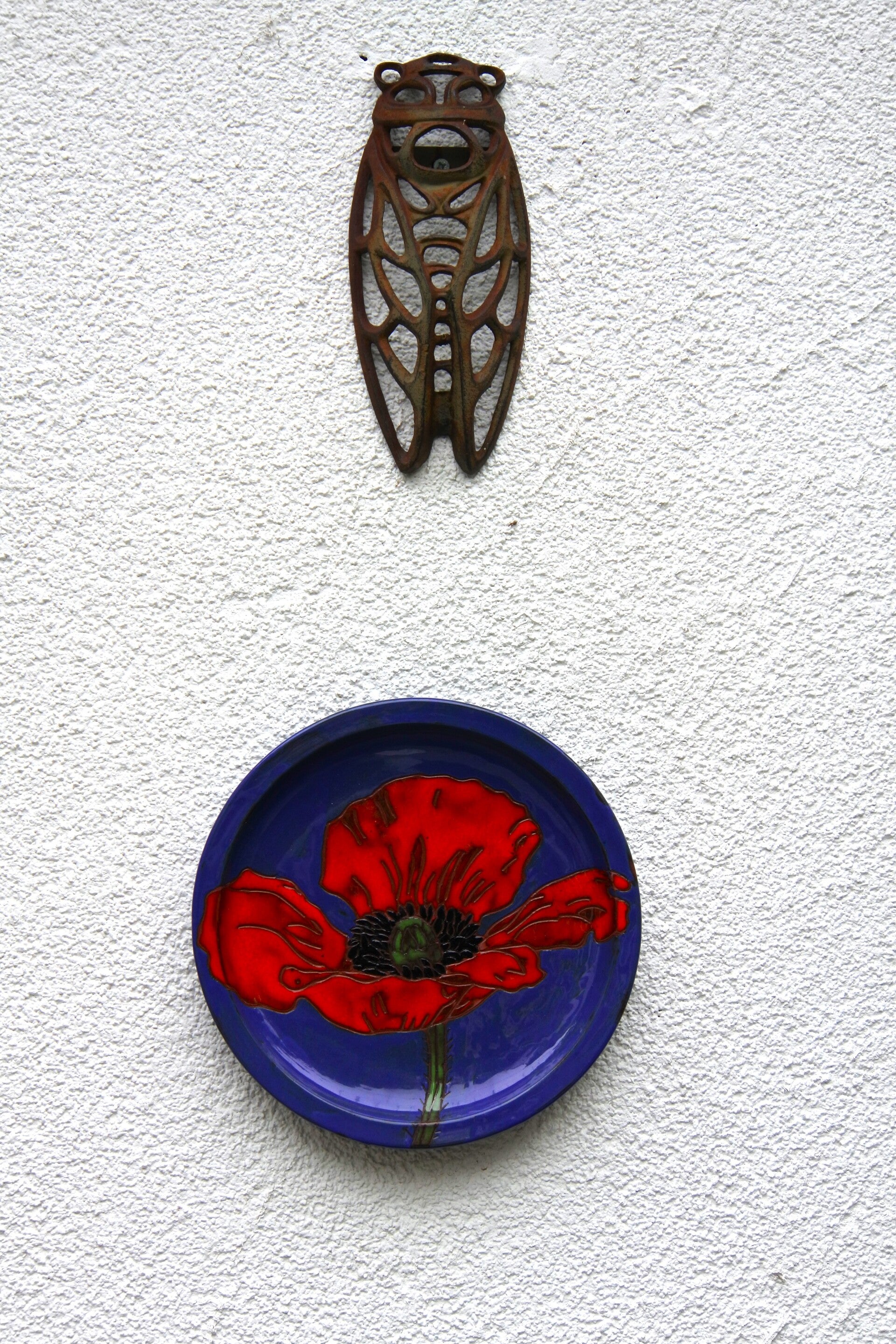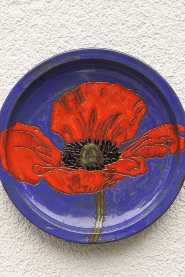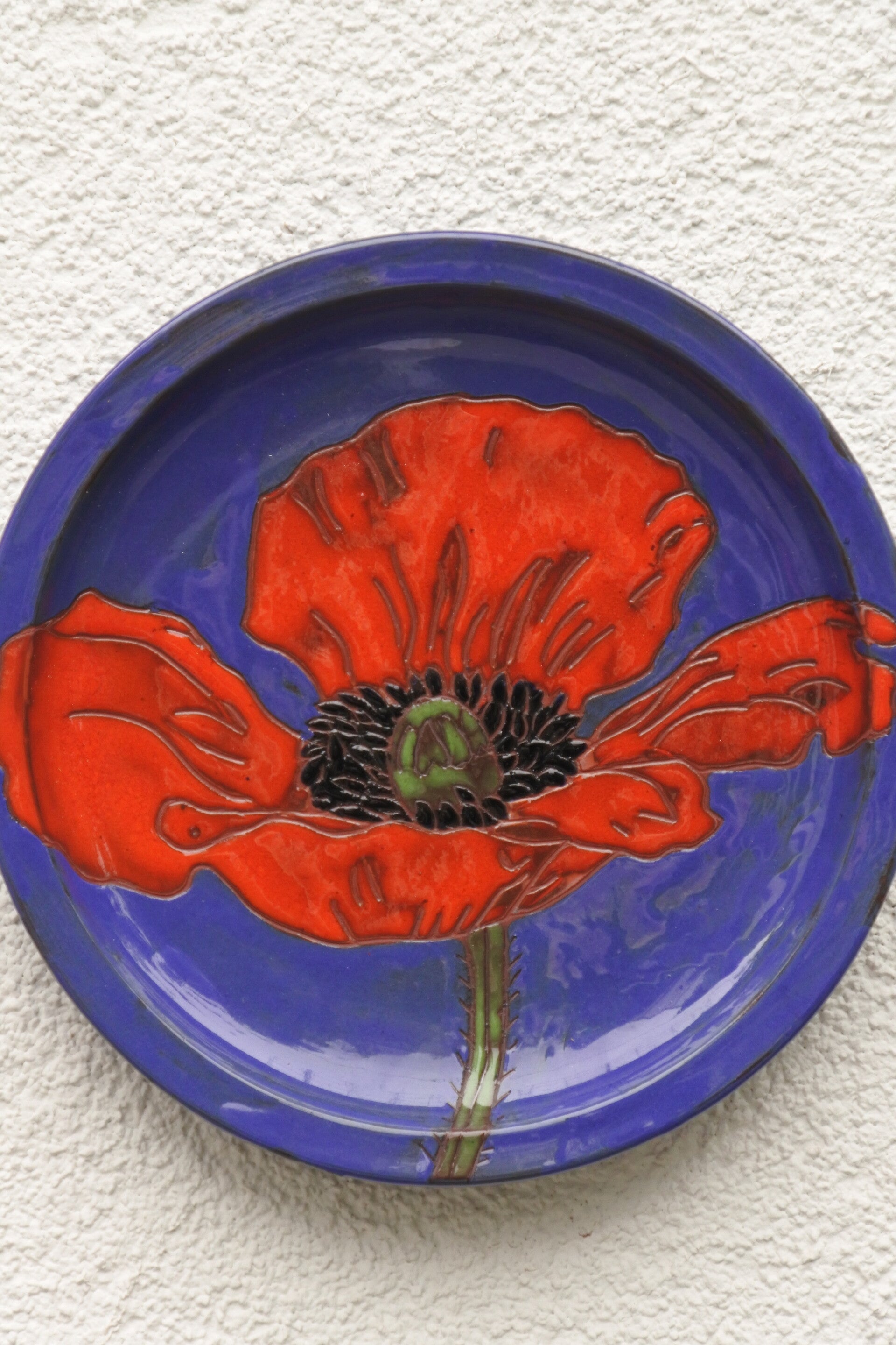 Deze prachtige handgemaakte wandschaal met beeltenis van een klaproos is van Nederlands design trots Henk Potters van Pottenbakkerij Potters uit Oisterwijk. We hebben ons GEK gezocht maar.. we hebben niet nog een dergelijk ontwerp van Henk Potters kunnen vinden wat ons doet vermoeden dat het misschien wel een unica is! heel speciaal dus..