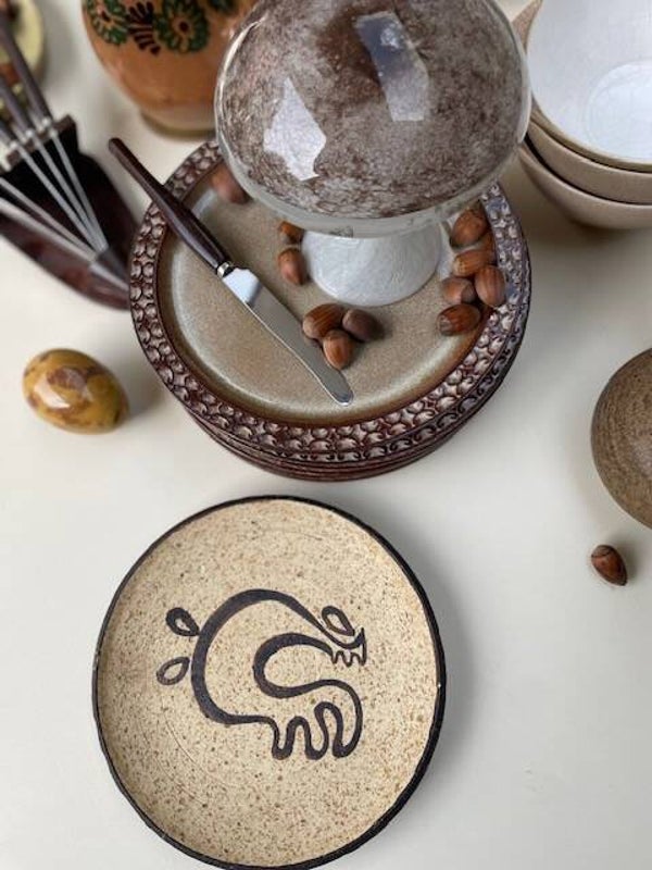 Dit tijdloos leuke steengoed wandbordje met beeltenis van een haan is gemaakt door een van de meest bekende keramisten van Nederland, "onze" Jan van Stolk. De stukken van Jan van Stolk komen soms voorbij. Als je geluk hebt hè! Want zodra er iets op de markt is vechten veel vintage verzamelaars om zijn stukken en tsja.. wij begrijpen het wel ;)