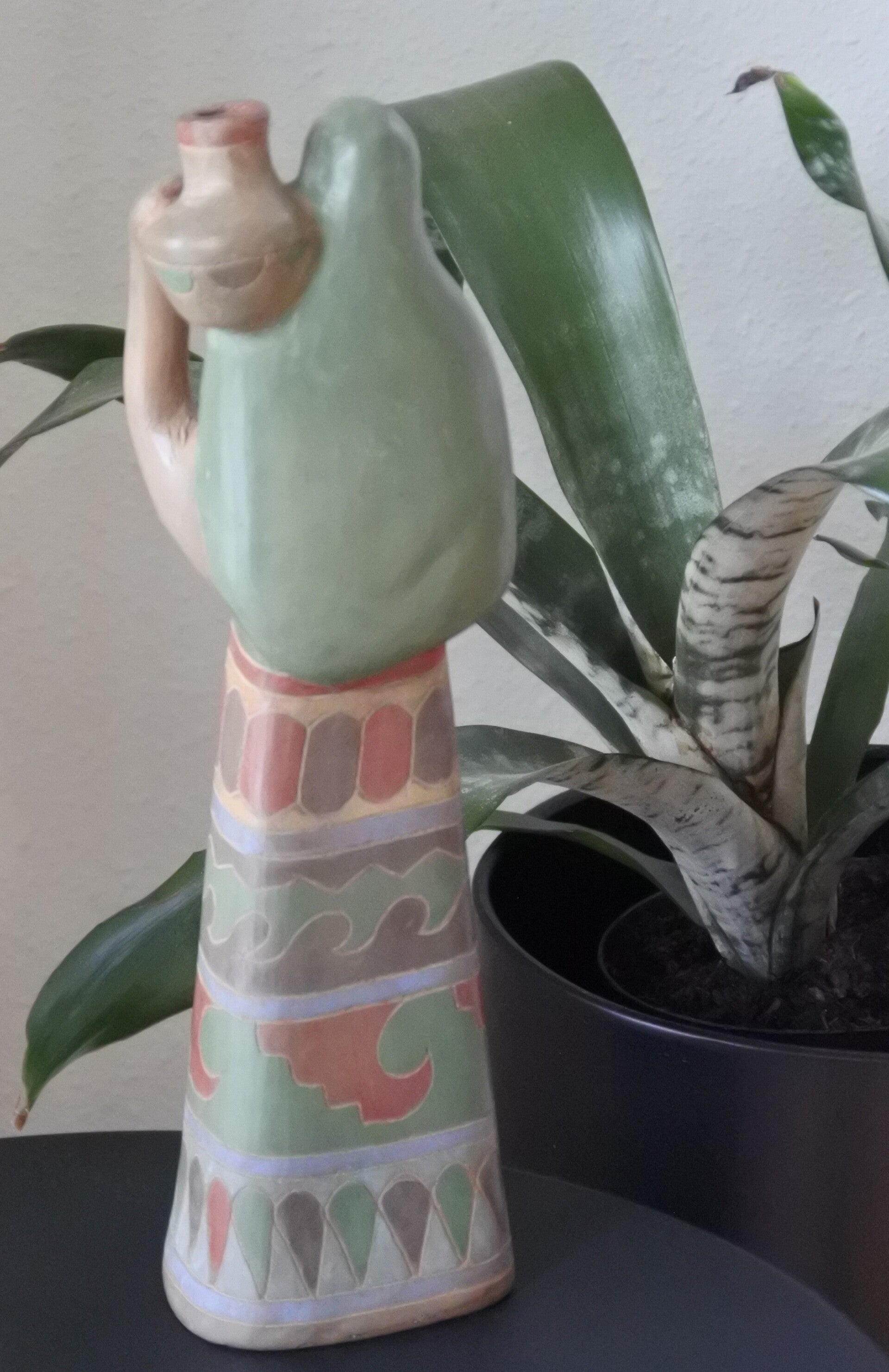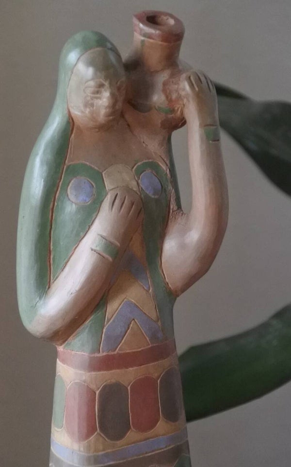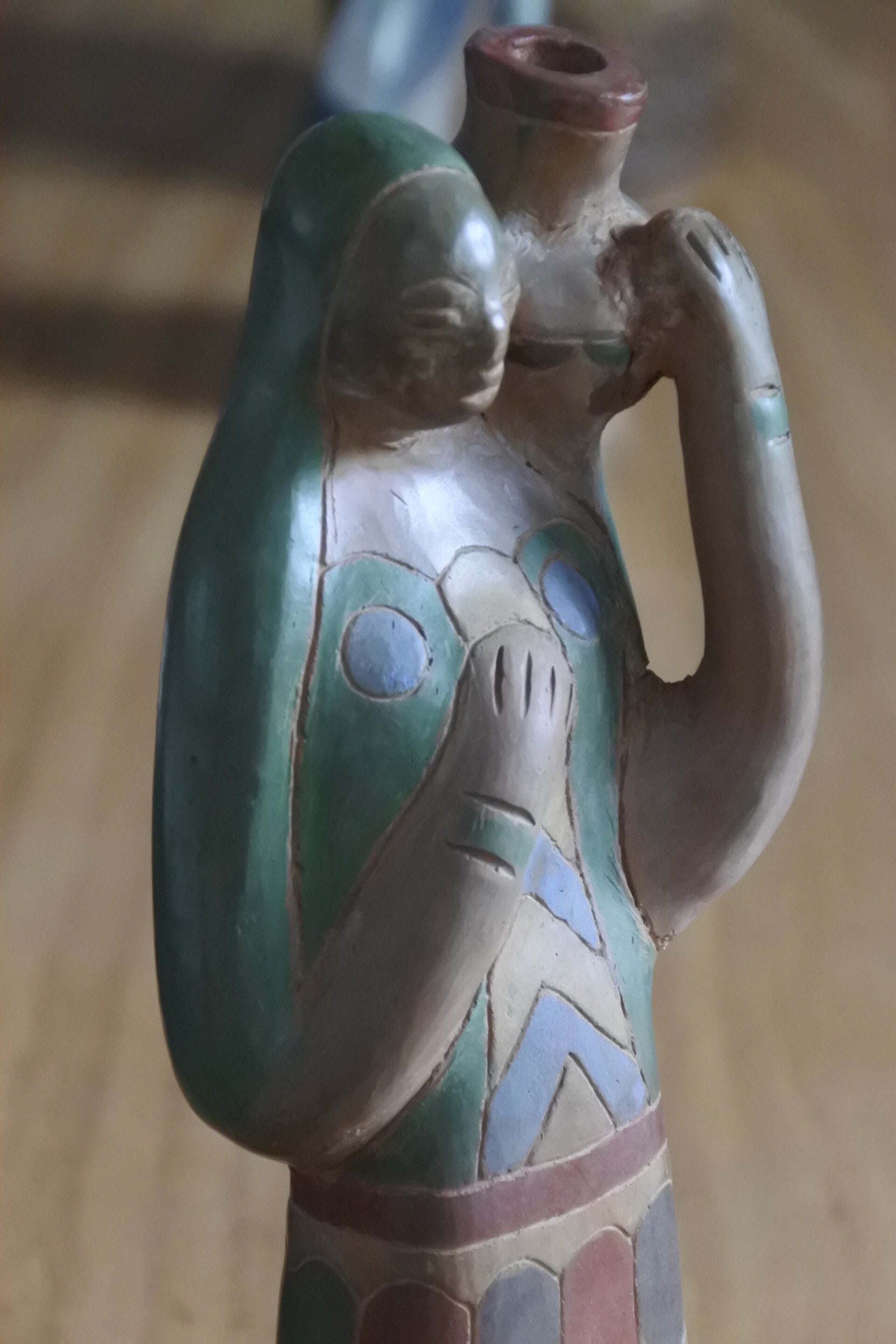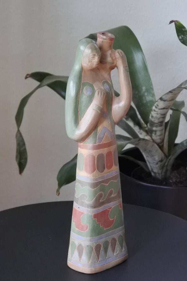 Dit mooie handgemaakte beeld met kleine uitsparing voor het branden van een kaarsje is echt een gevalletje 'van onschatbare waarde', het is namelijk gewoon niet te vinden online. Bijna gek worden we ervan waaaaaaaaant; moeten we ermee naar tussen kunst en kitsch (of nog beter! onze favoriet: van onschatbare waarde) of is het een souvenir uit Afrika? waarschijnlijk zullen wij of het nooit weten maar een tof en uniek stuk is het zeker!