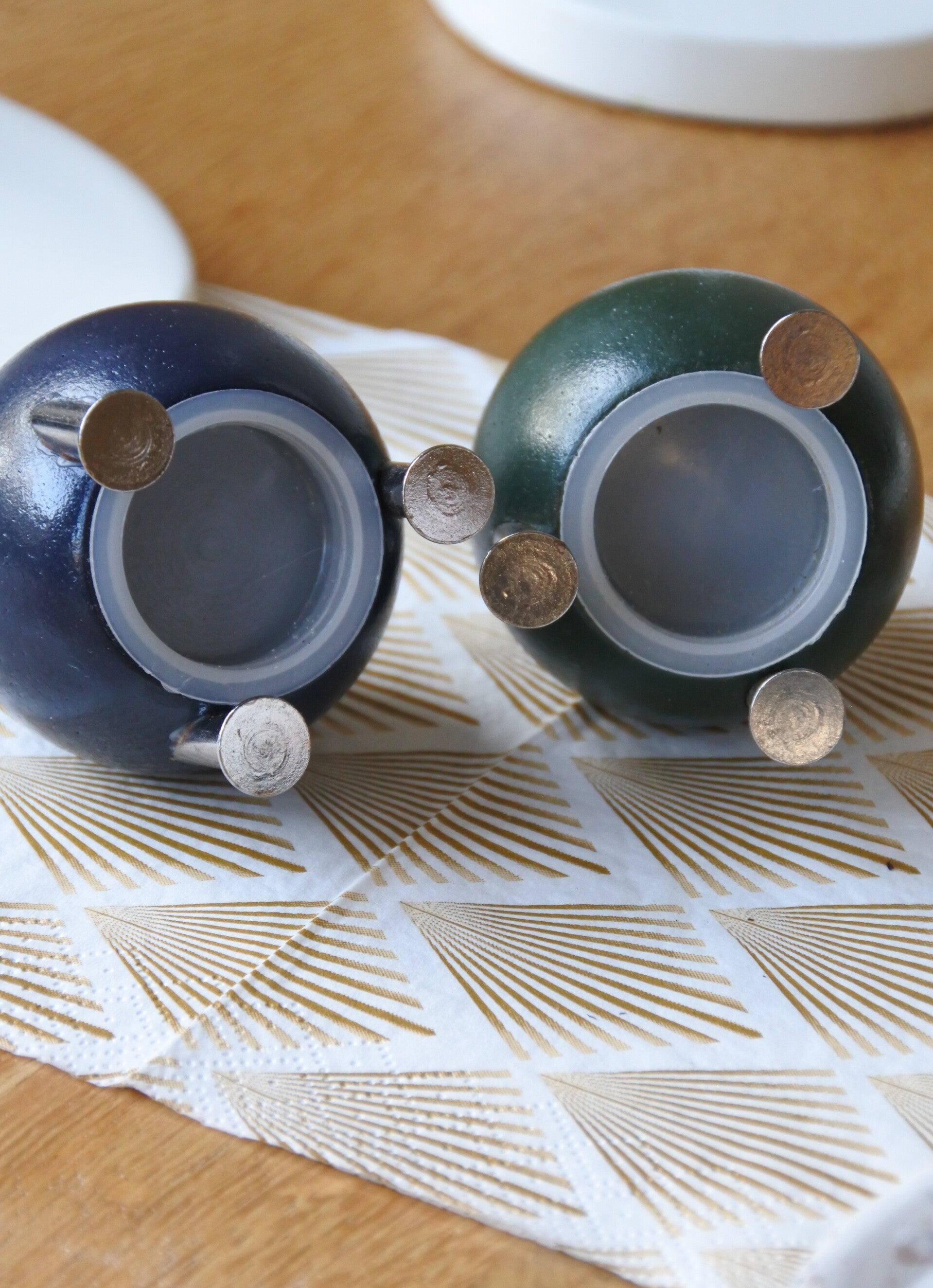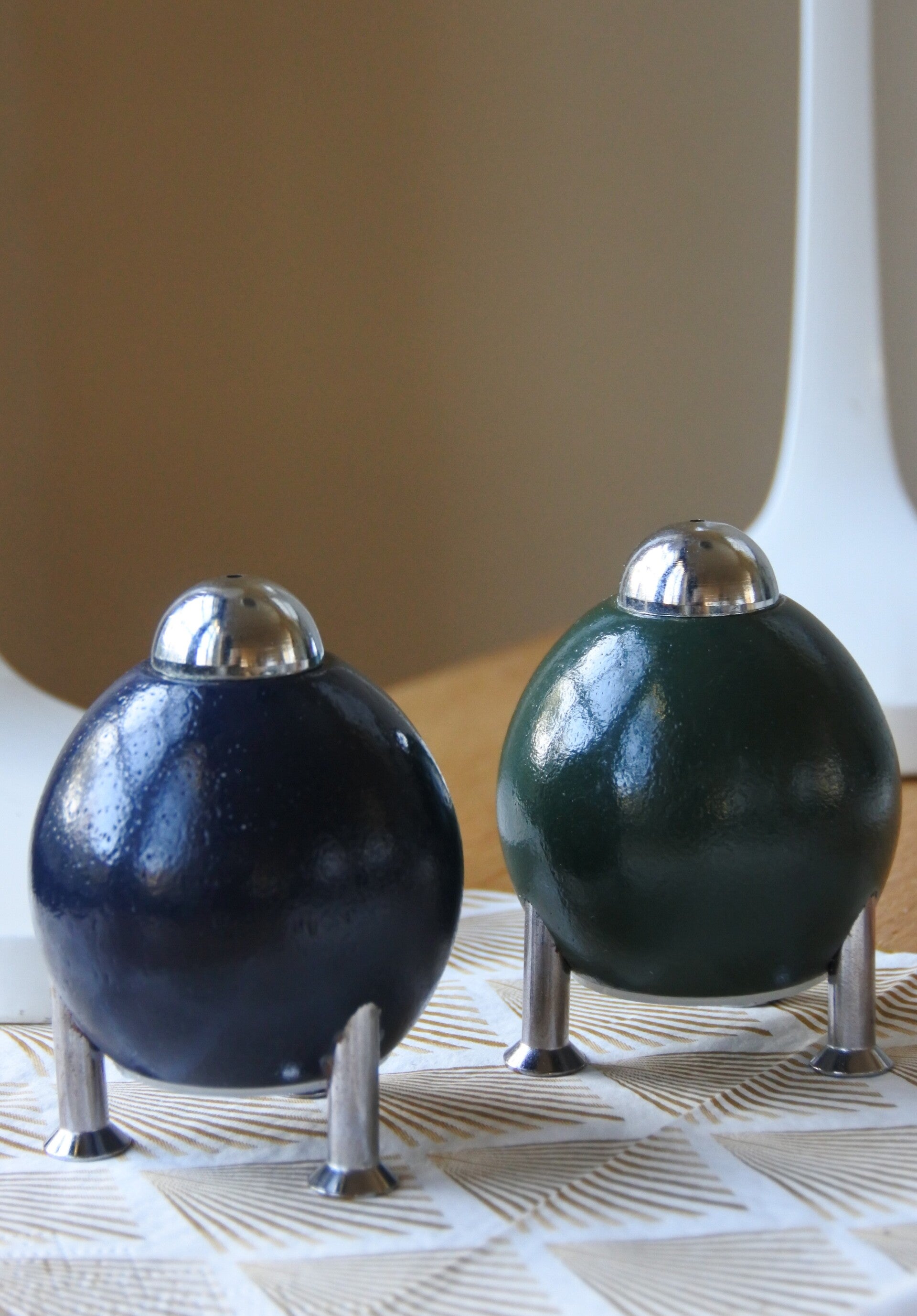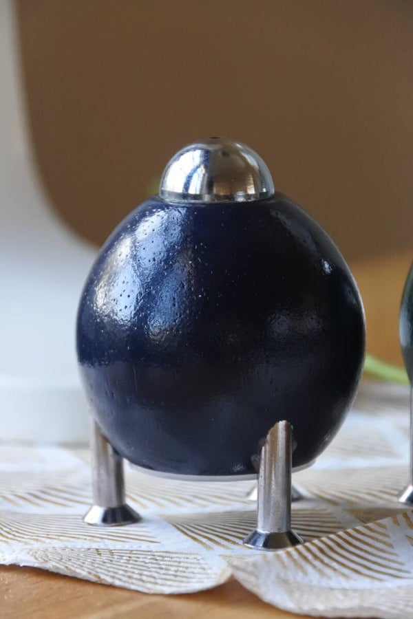 Vintage 6-delige space age eierdoppen & peper en zoutstel set