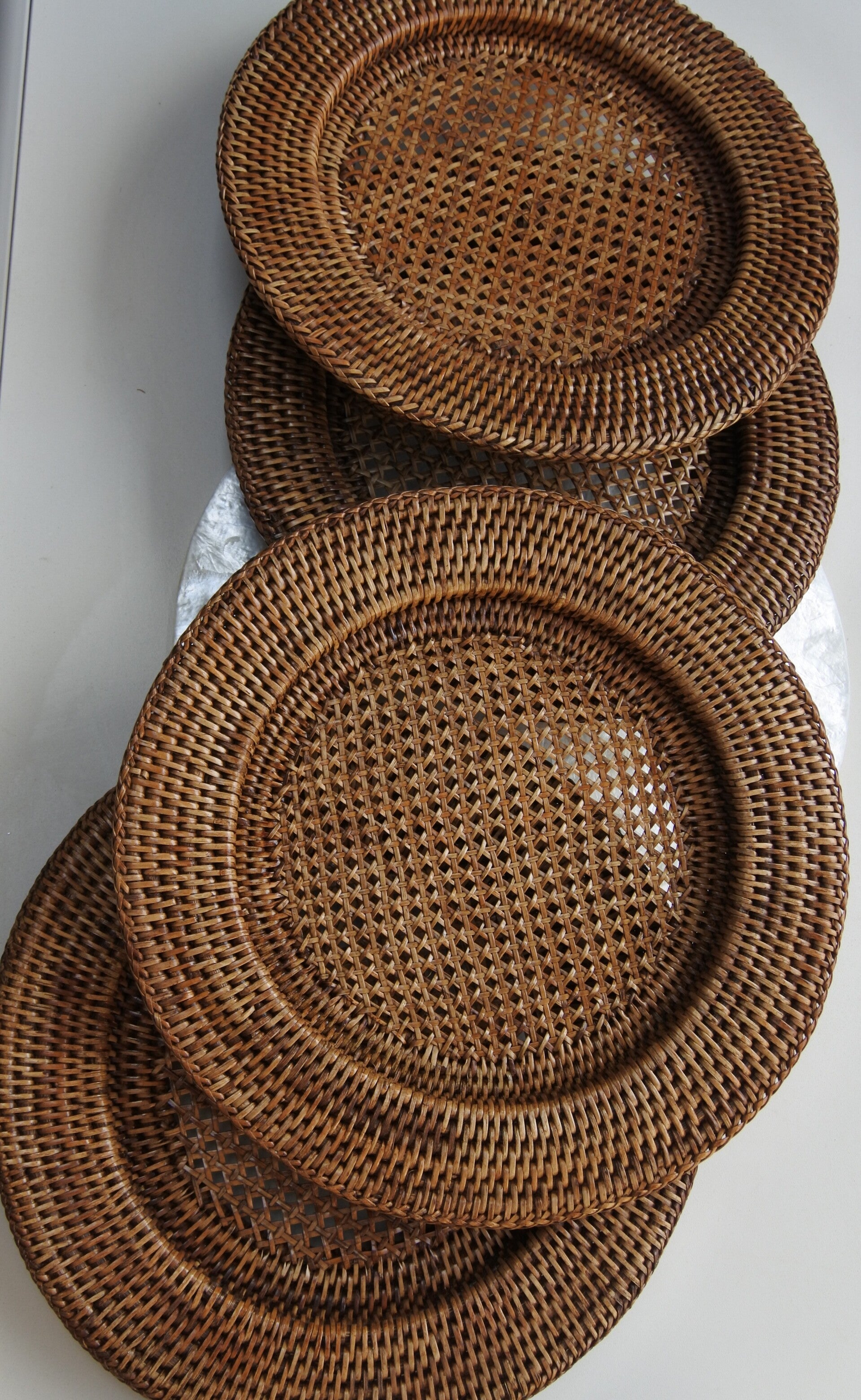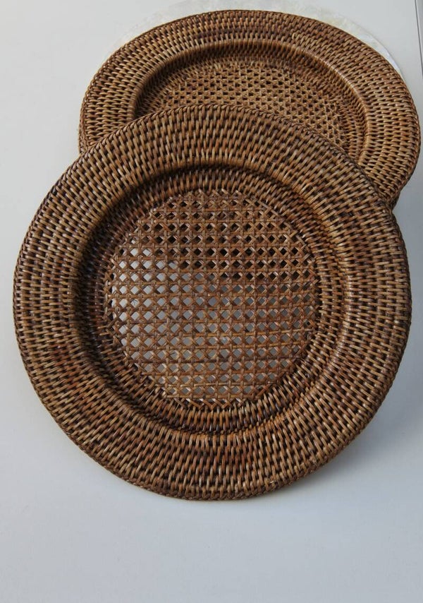 Klassieke vintage rotan placemat - onderborden set in koloniale stijl, geschikt voor zowel alledaagse als feestelijke tafelschikkingen! De onderborden hebben een uitsparing waardoor een decoratieve rand om het bord ontstaat.