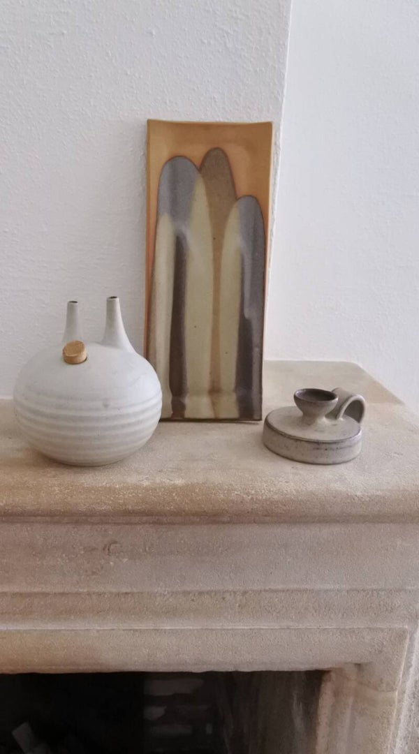 Deze prachtige schaal van steen heeft een mooie terracotta kleur en is handbeschilderd met grijs, beige en bruine tinten. Deze mooierd kan je gebruiken als schaal maar komt eigenlijk beter tot zijn recht als wandplaat vinden wij zelf.