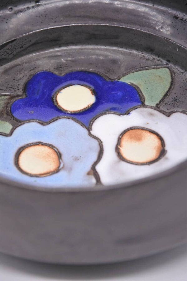 Vintage schaaltje met blauwe en witte bloemen van Potters pottenbakkerij Oisterwijk.