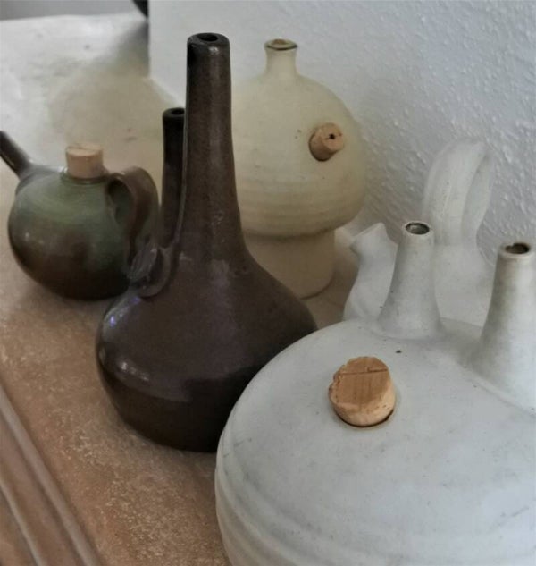 Deze leuke vintage... tsja.. is het een kunstobject, een olielampje of toch een soort botijo? wat we wel zeker weten is dat deze leukerd uit Nederland komt en hartstikke tof staat in vrijwel elke ruimte! dit exemplaar in donkerbruin heeft een tijdloos design en een mooie diepbruine kleur. Het model heeft 2 pijpjes en een klein kurkje ter afsluiting.