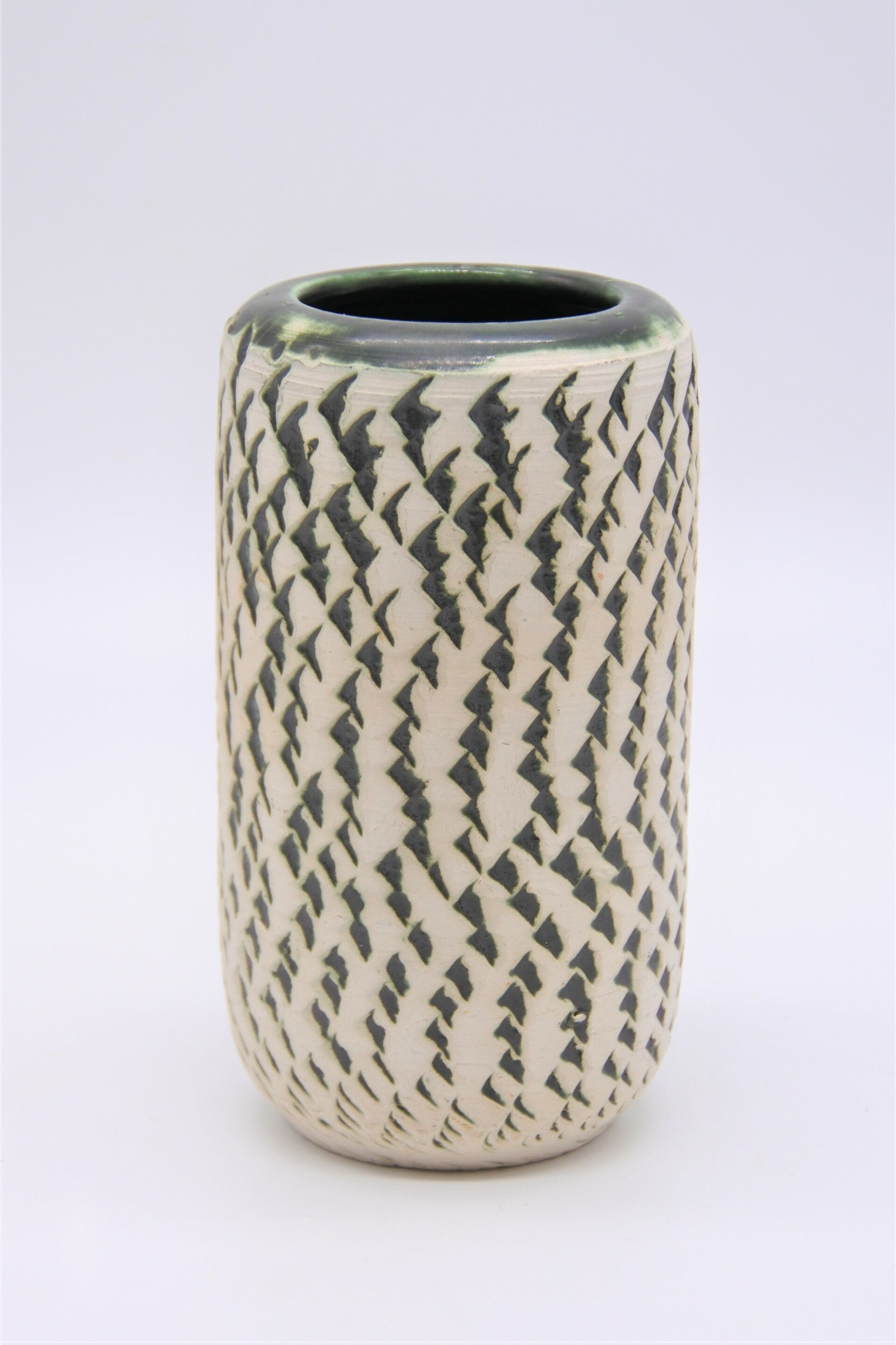 Vintage vaasje wit/groen