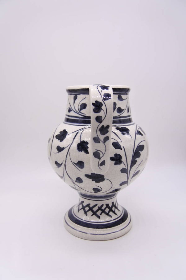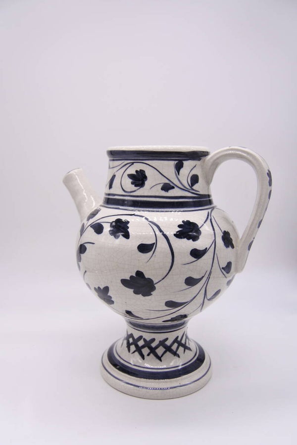Deze prachtige gecraqueleerde water (of wijn, ook lekker!) karaf op voet is van Nove Italy en heeft naast een mooi ontwerp ook een prachtige beschildering. Echt een pronkstuk op je tafel!