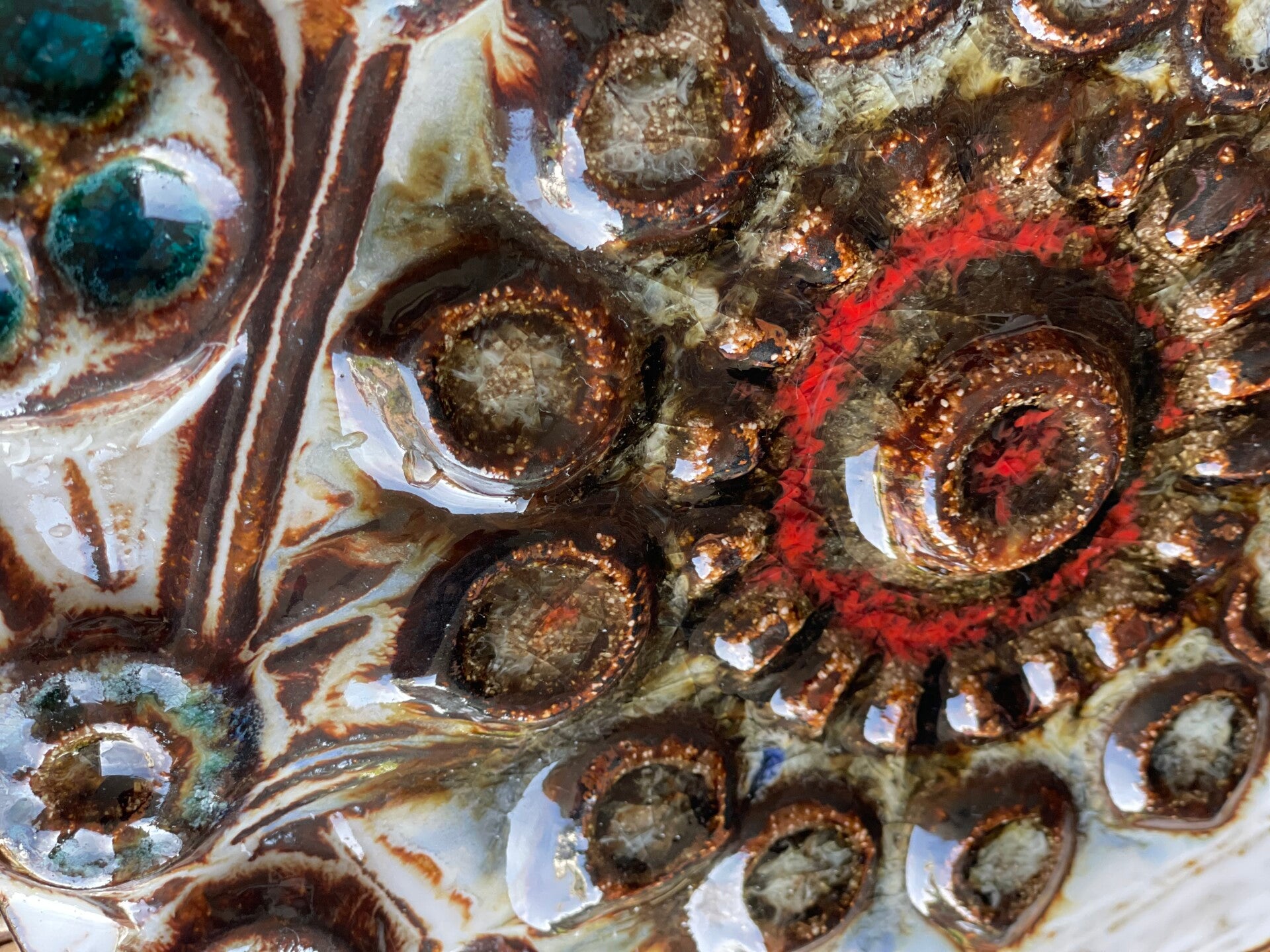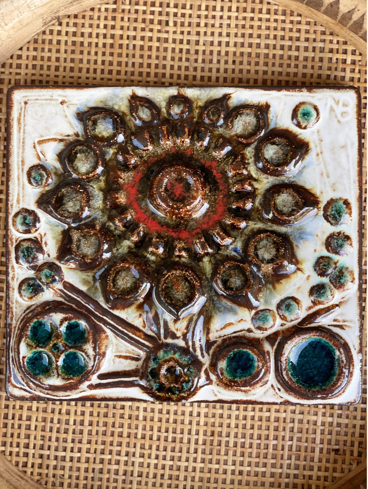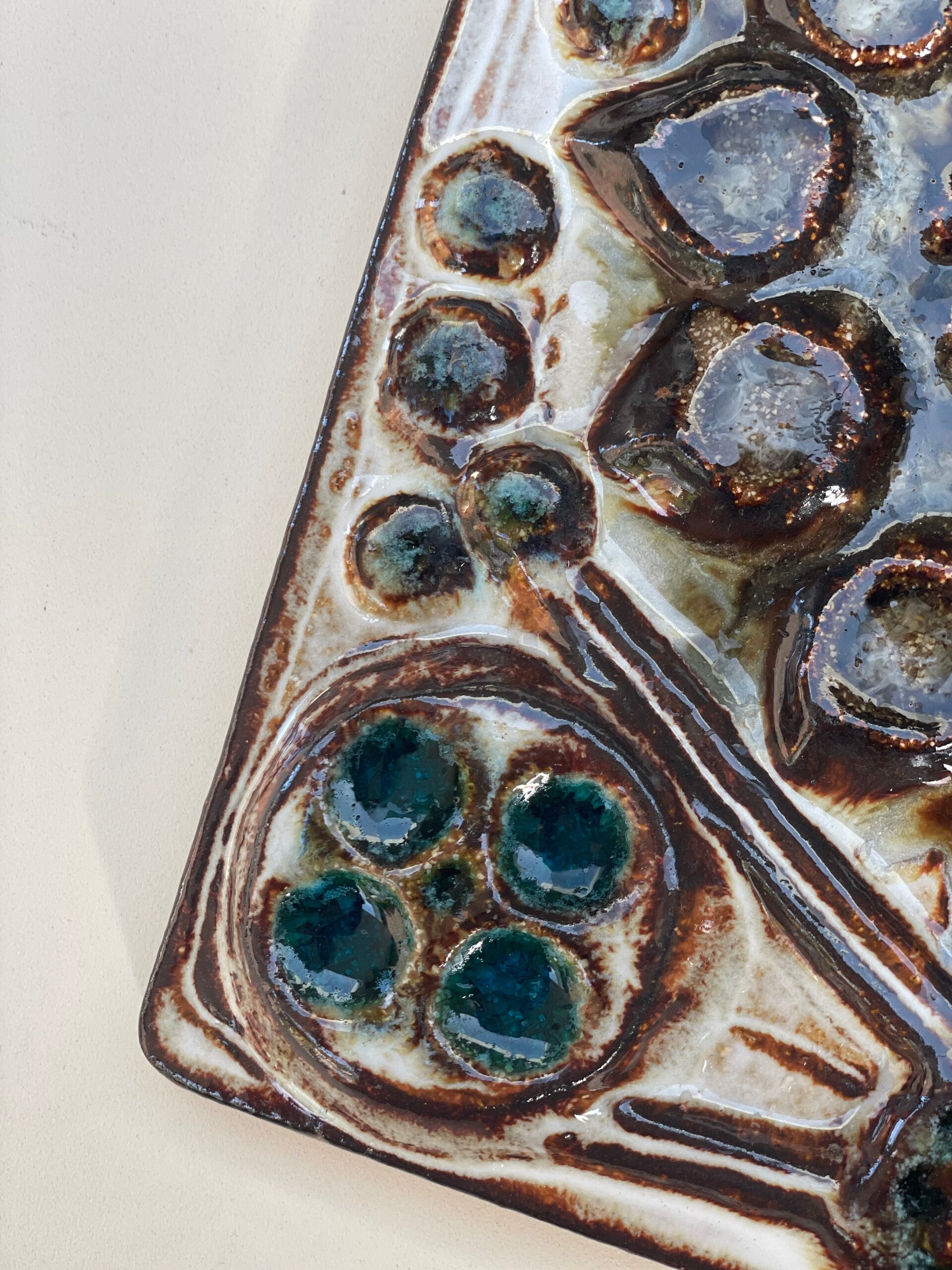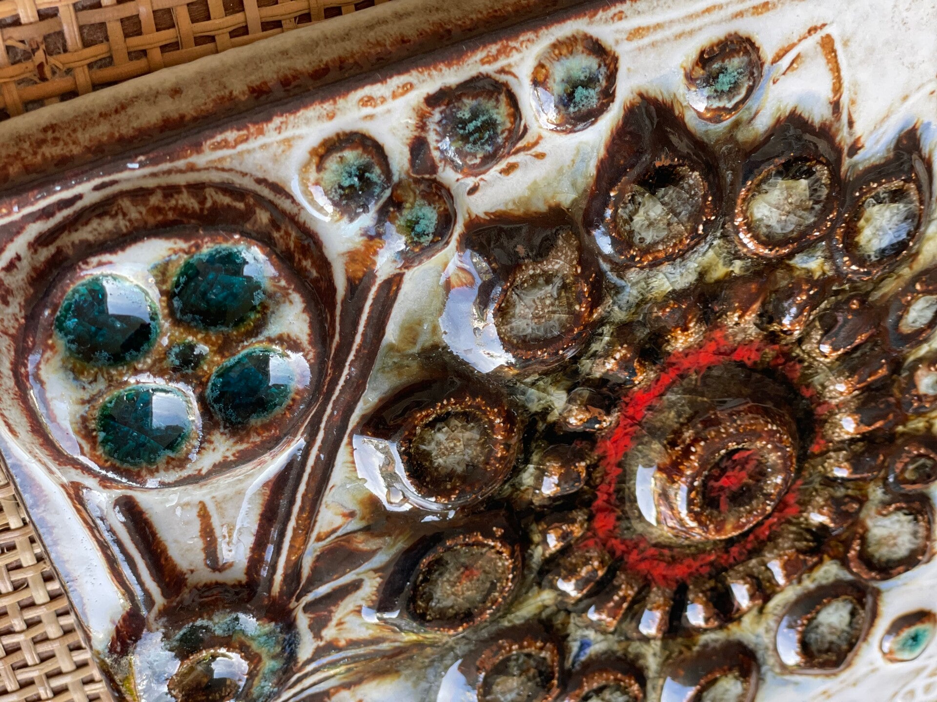 Fantastische reliëf plaquette gemaakt in geglazuurd steengoed door de Deense kunstenaar Noomi Backhausen voor Søholm in de jaren 60, genummerd.