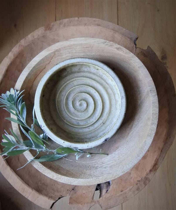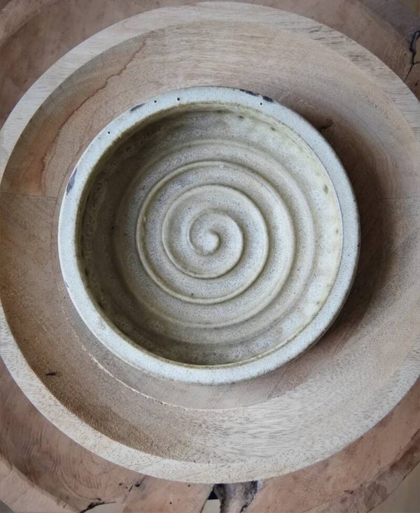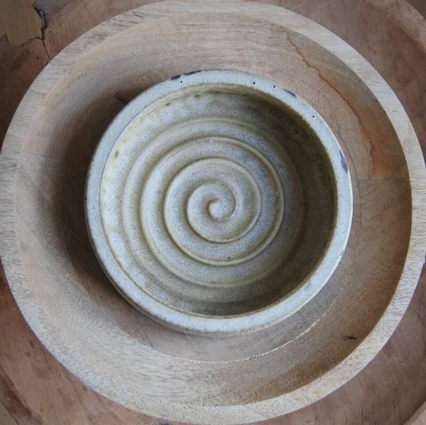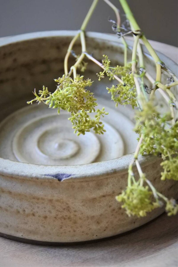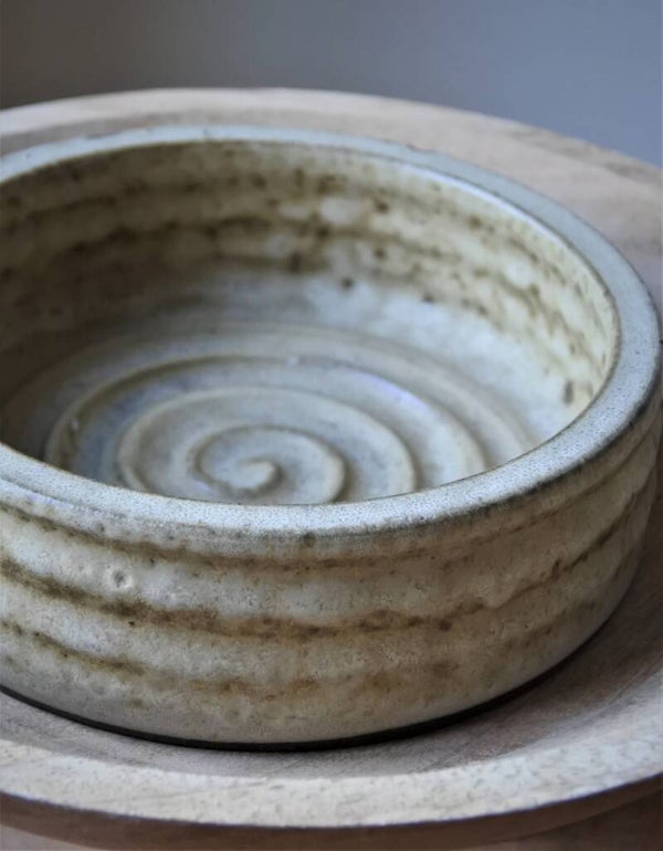 Vintage schaal in prachtige zandkleuren van Nederlands Designer Klaas Fenne uit eigen atelier en gesigneerd. Het model heeft kenmerkend gedraaide details aan zowel de binnen- als buitenzijde en heeft een stoere structuur. Een tijdloze beauty deze prachtige schaal!