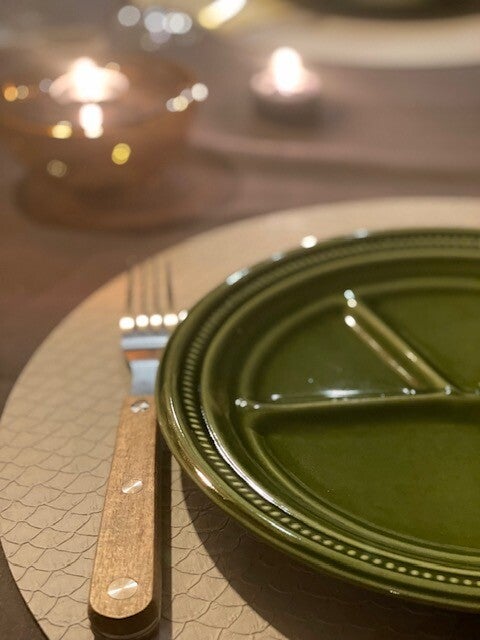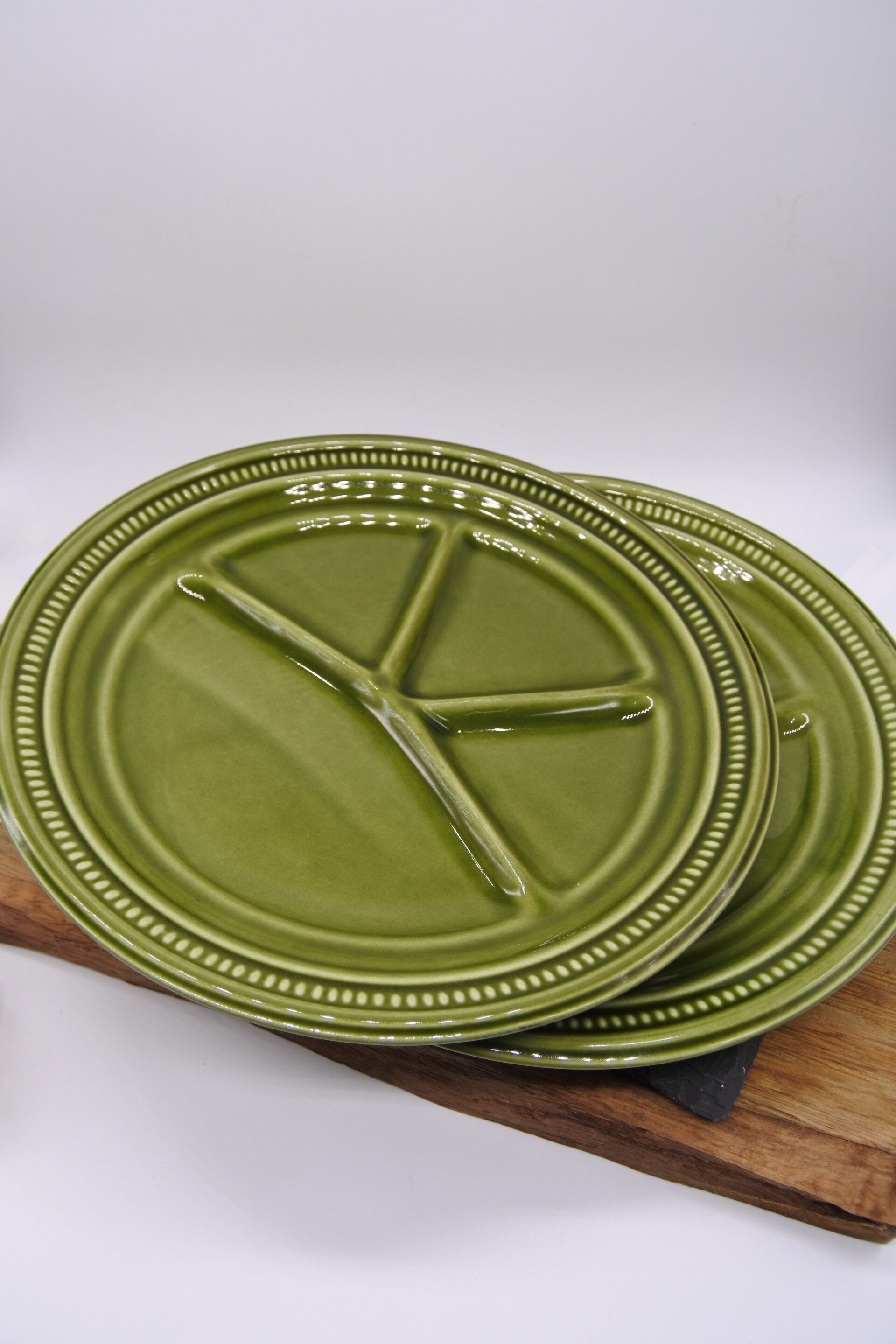 Leuke vintage set gourmet en/of kaasfondue (allebei heeerlijk) bordjes in groen met mooie sierrand. Eigenlijk heeft ieder huishouden zo'n leuk setje gourmet borden nodig! niet alleen voor dit maar denk ook eens out of the box.. wij gebruiken ze ook als antipasti voorgerecht bordje of om in te zetten als een 1 persoons kaasplateau tussen het hoofd en nagerecht in. Opties genoeg dus!