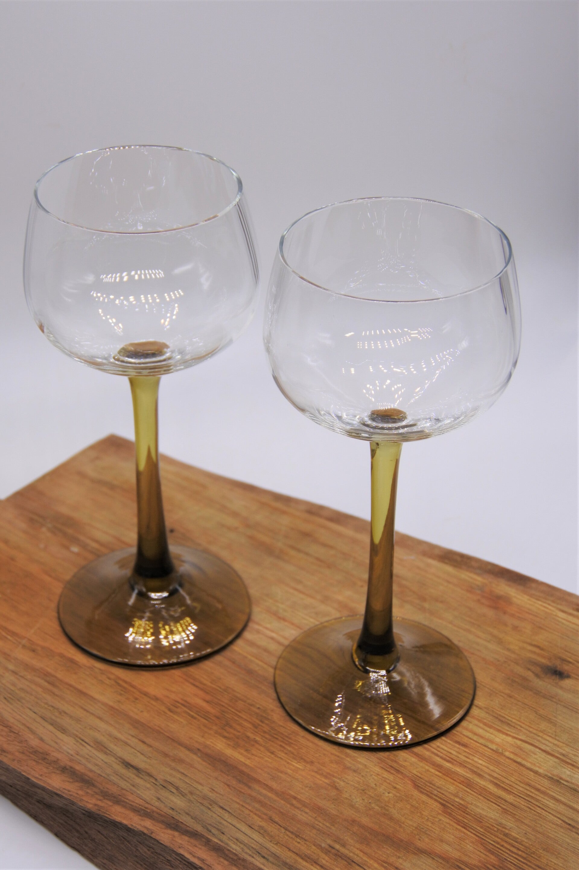 Vintage wijnglazen set op okergeel voetje 2 stuks
