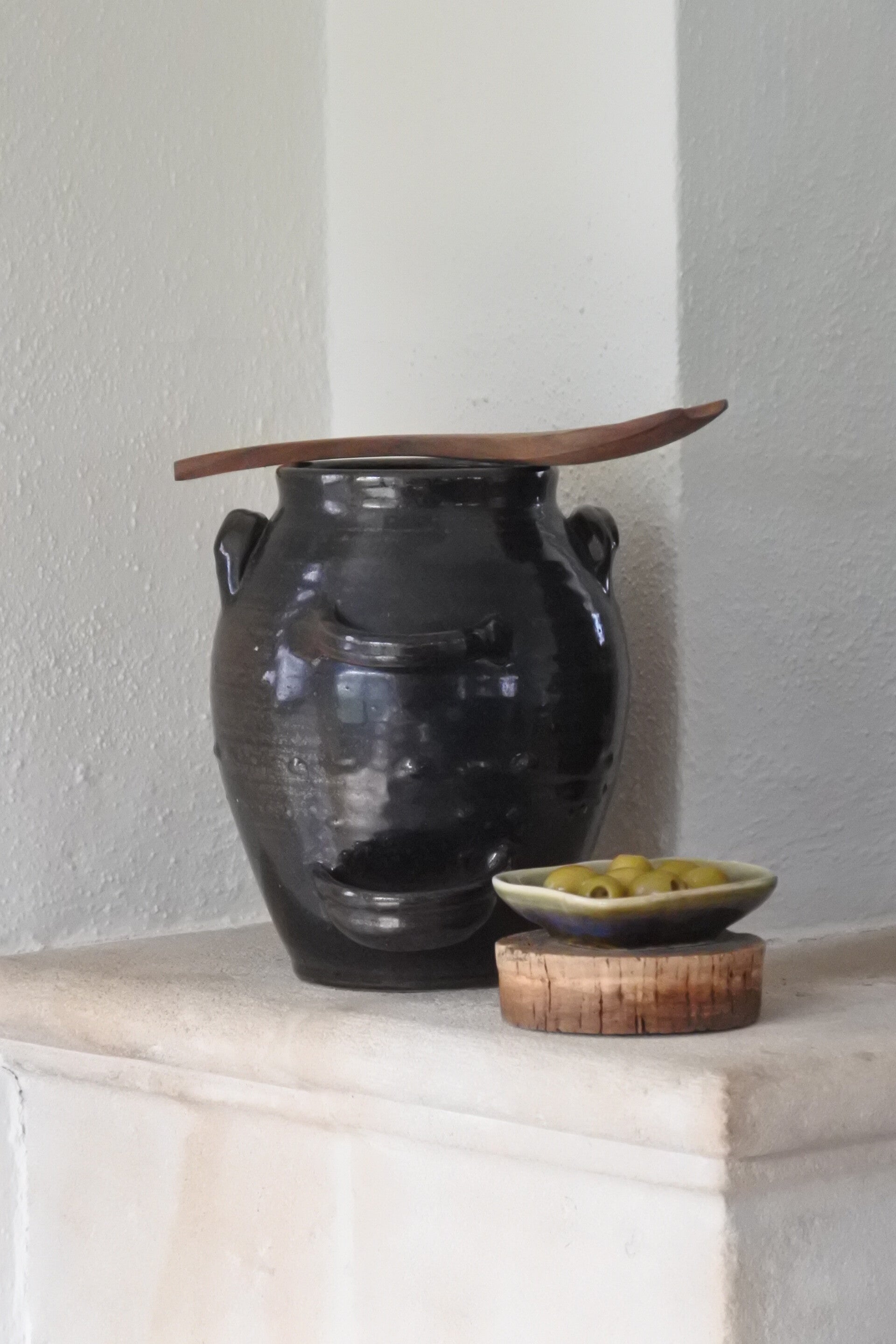 Vintage olijvenpot uit de 60's in mooie donkere kleur