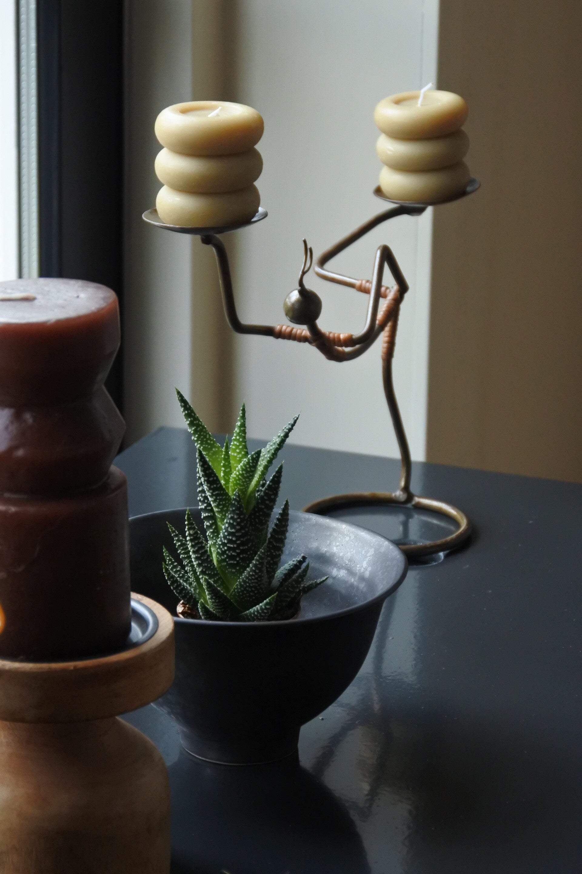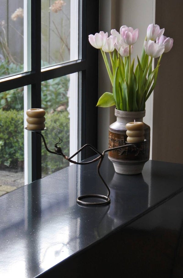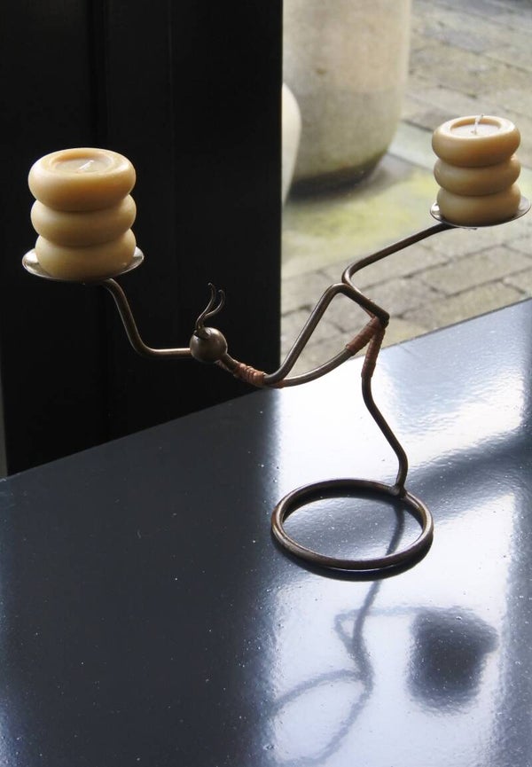 Unieke ijzeren kandelaar van Laurids Lønborg Denemarken. De kandelaar beeld een sierlijke danser(es) uit welke vooral werden ontworpen en uitgegeven in de 60's.