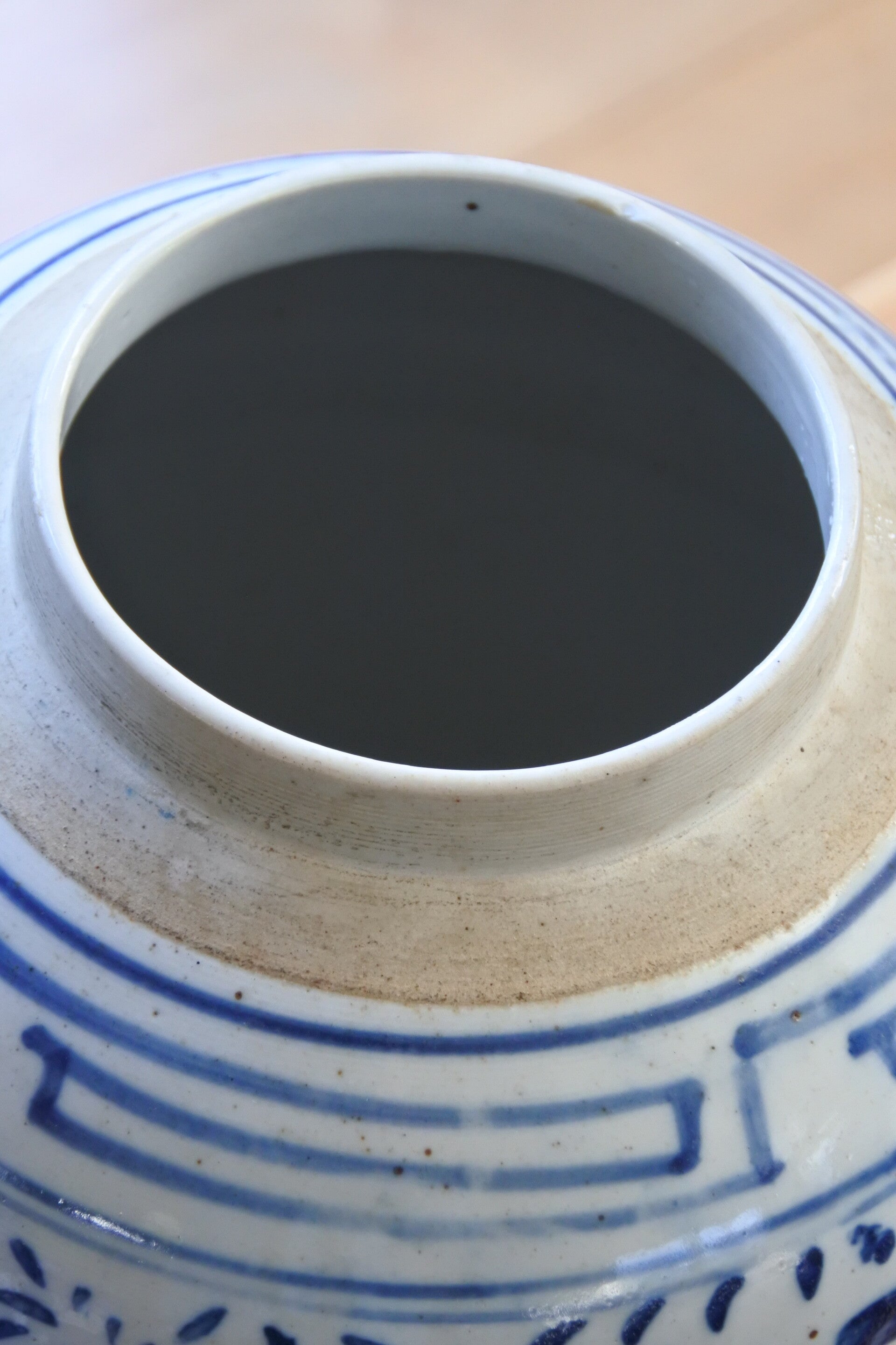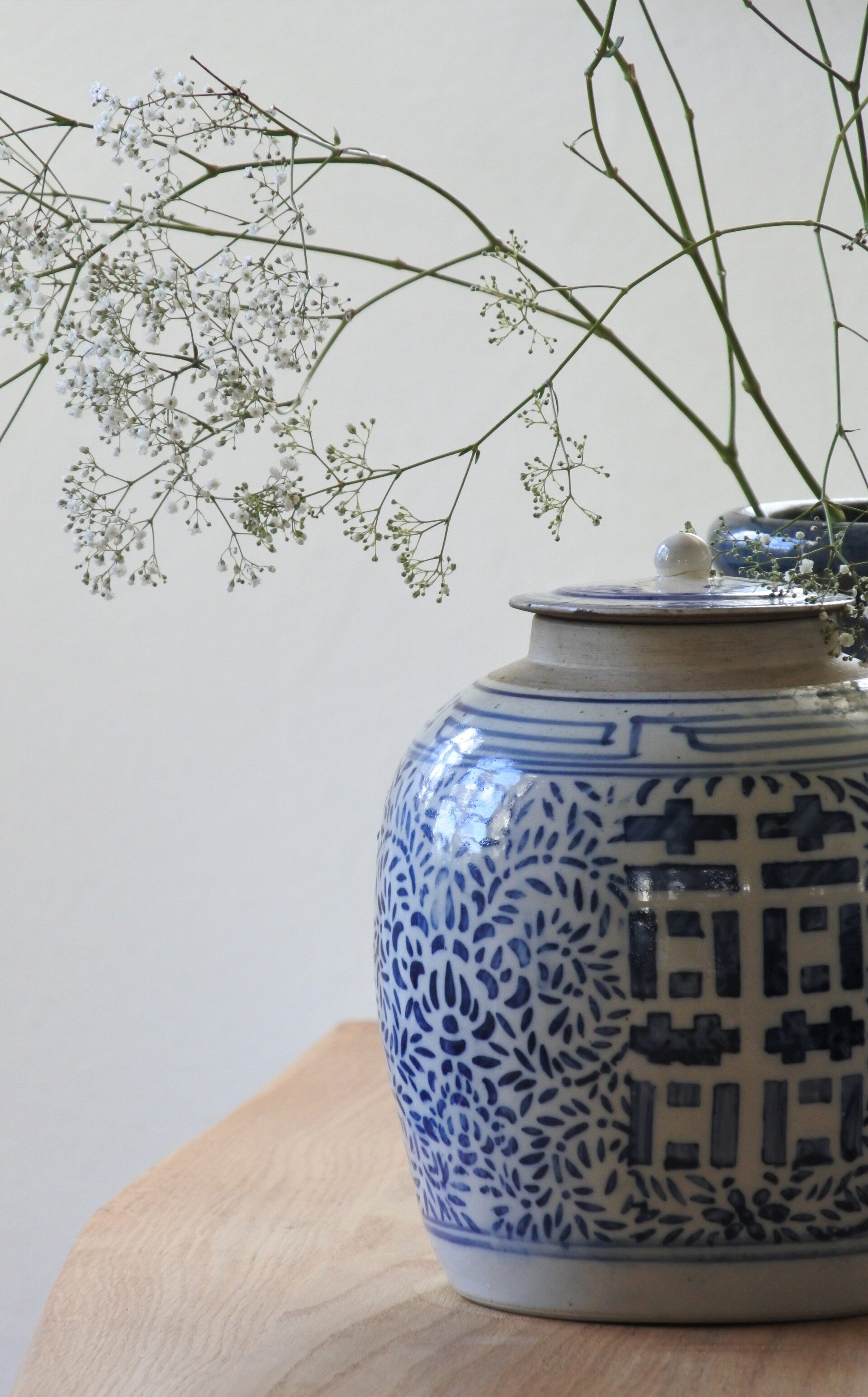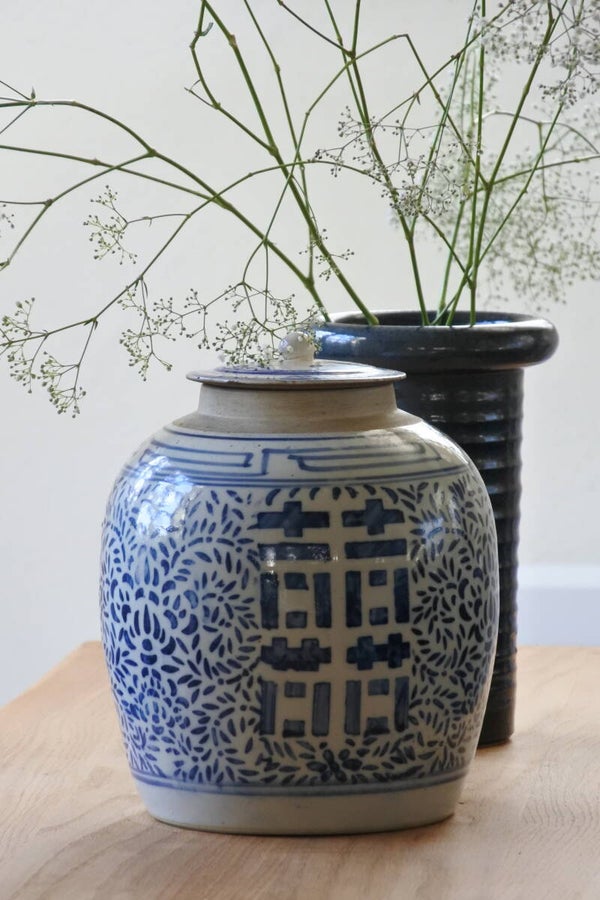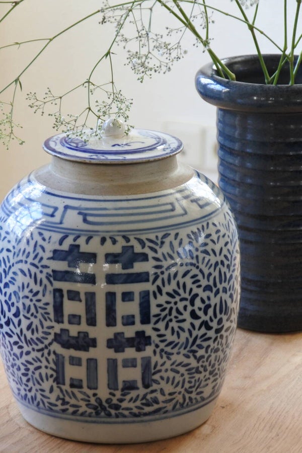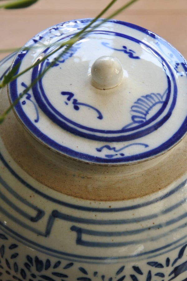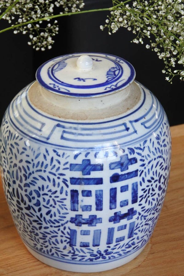 Vintage Chinese gemberpot met deksel en prachtige blauwe opdruk